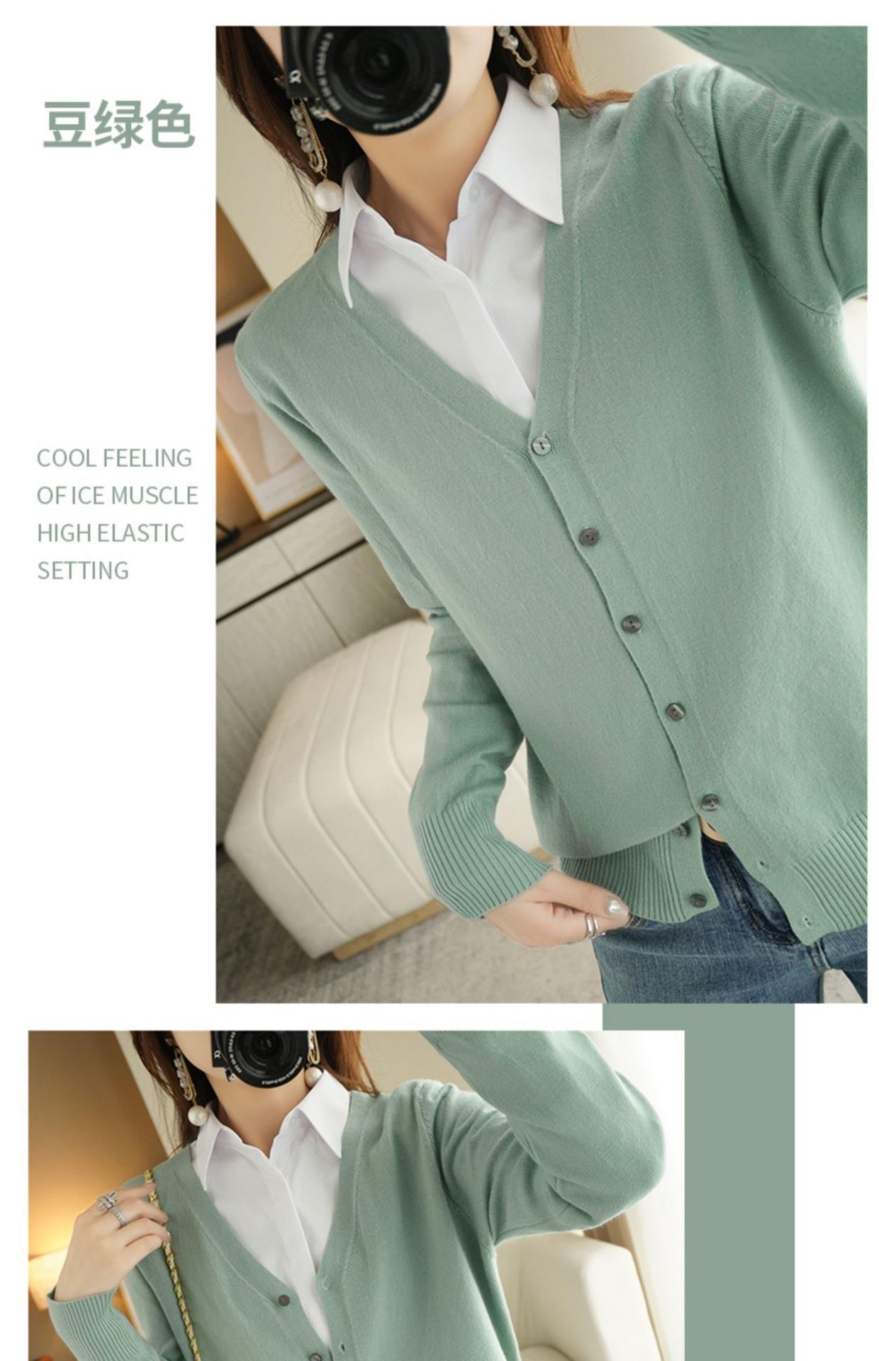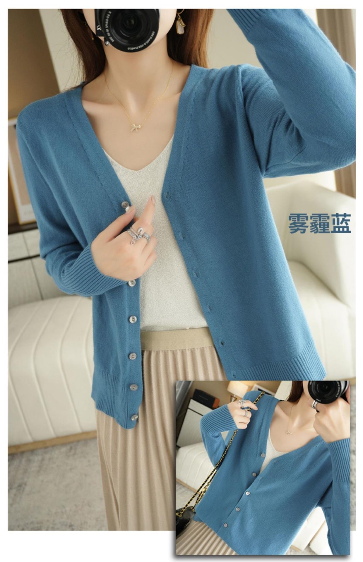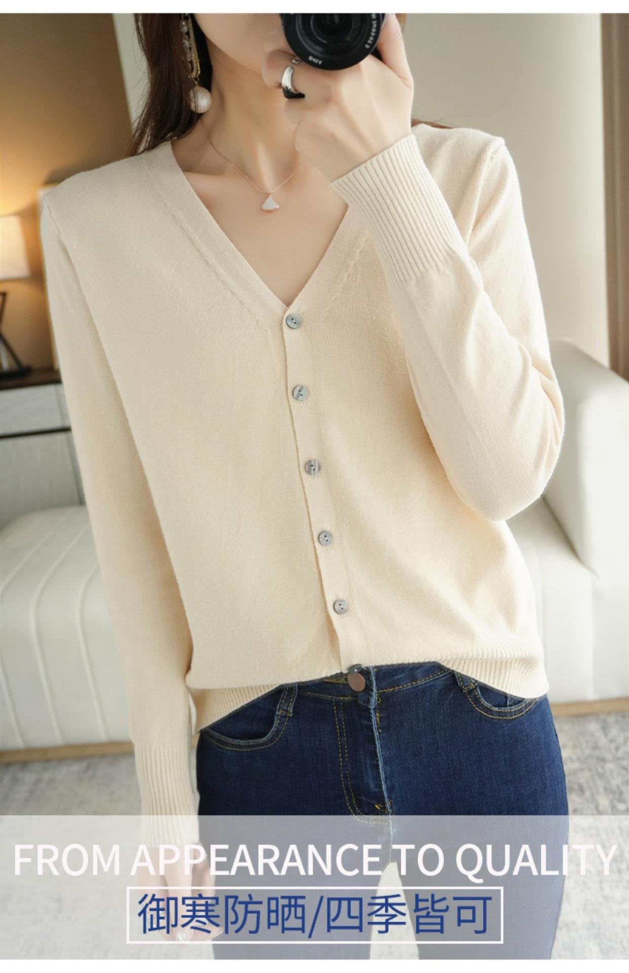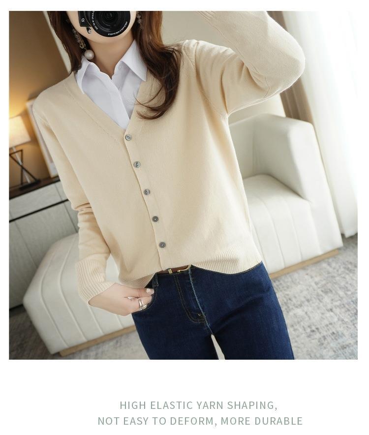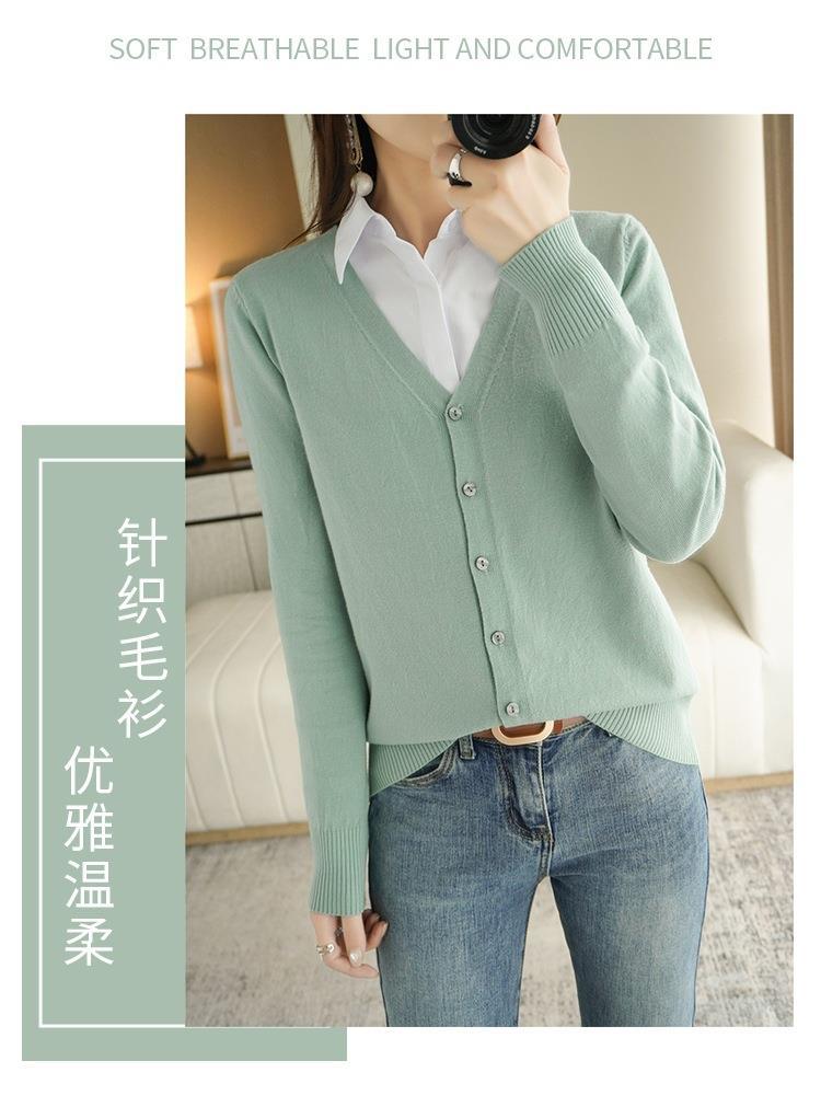 【两件装】春秋款针织衫V领开衫外套,纯色宽松短款毛衣外搭QH