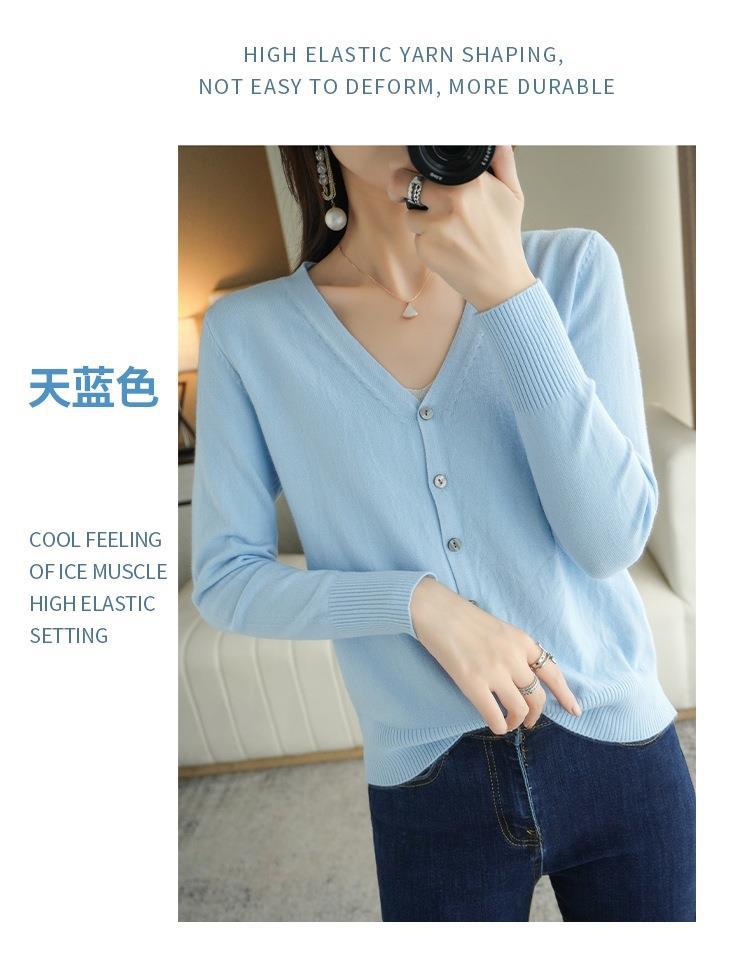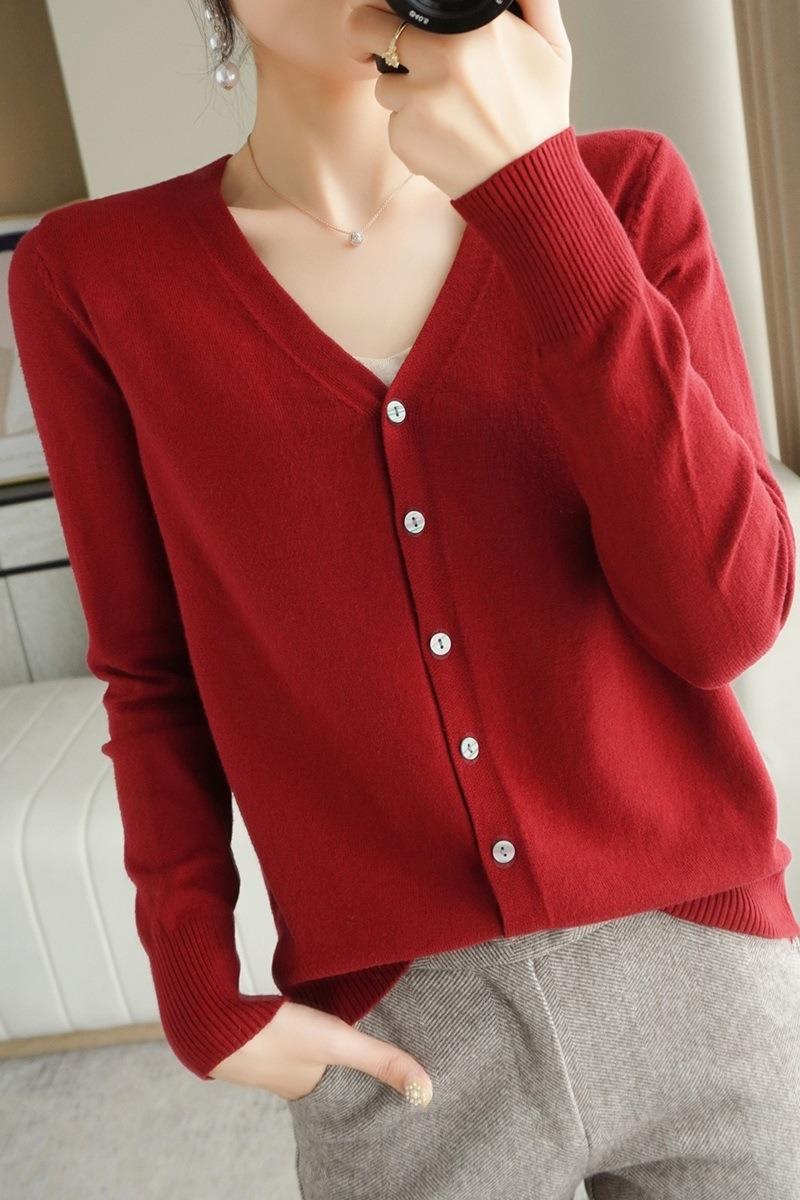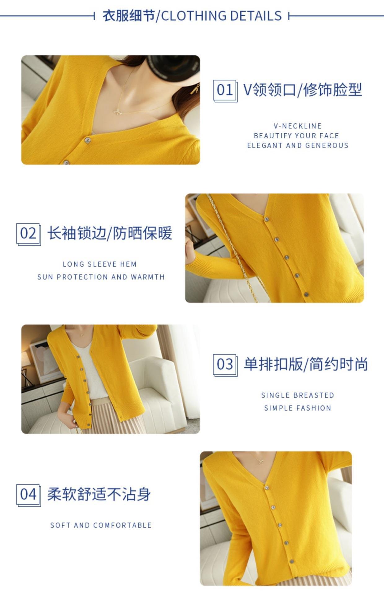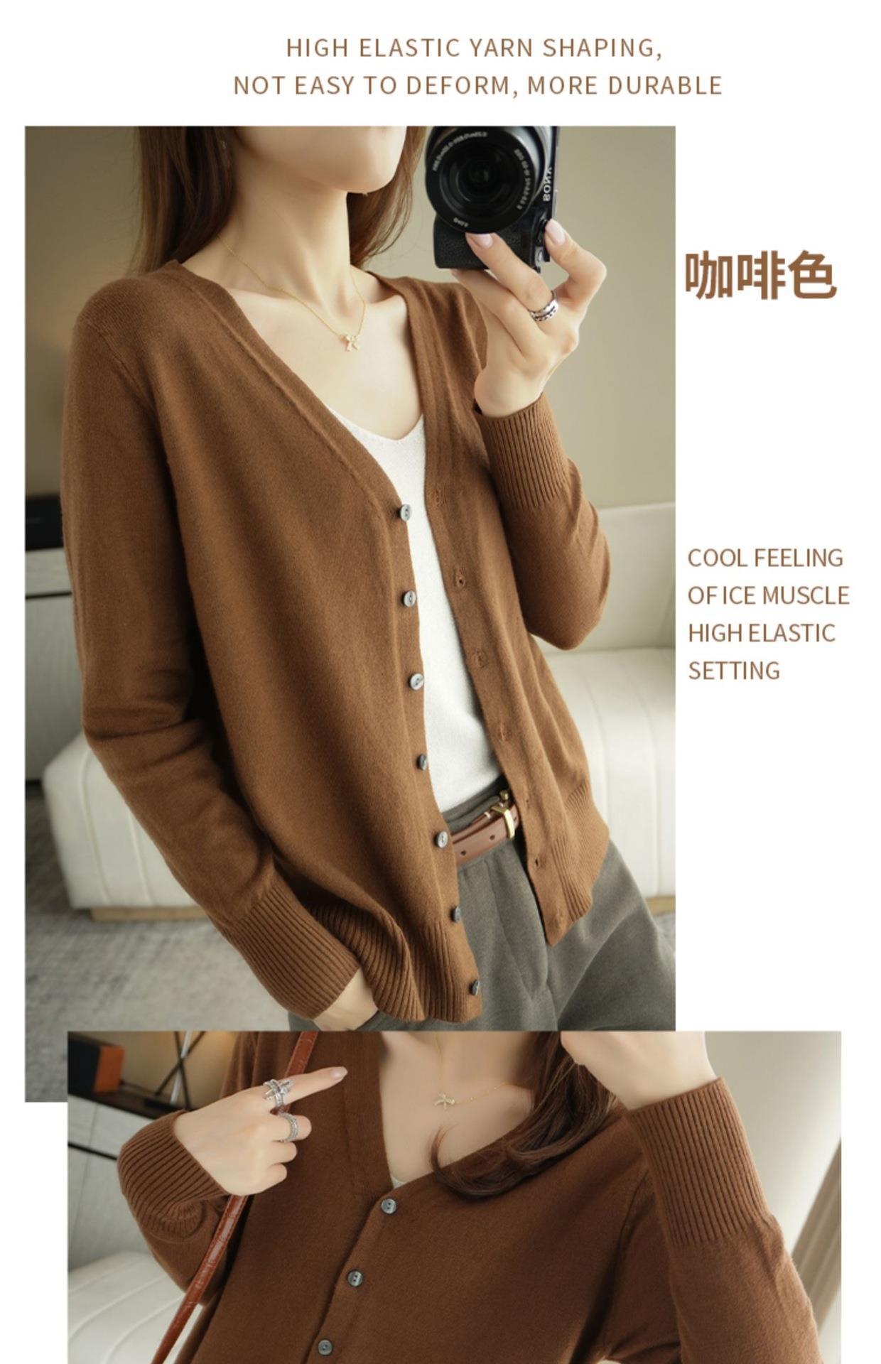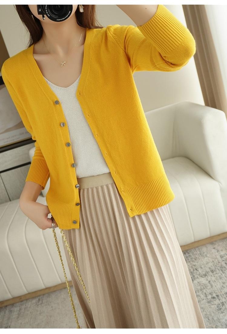 【两件装】春秋款针织衫V领开衫外套,纯色宽松短款毛衣外搭QH