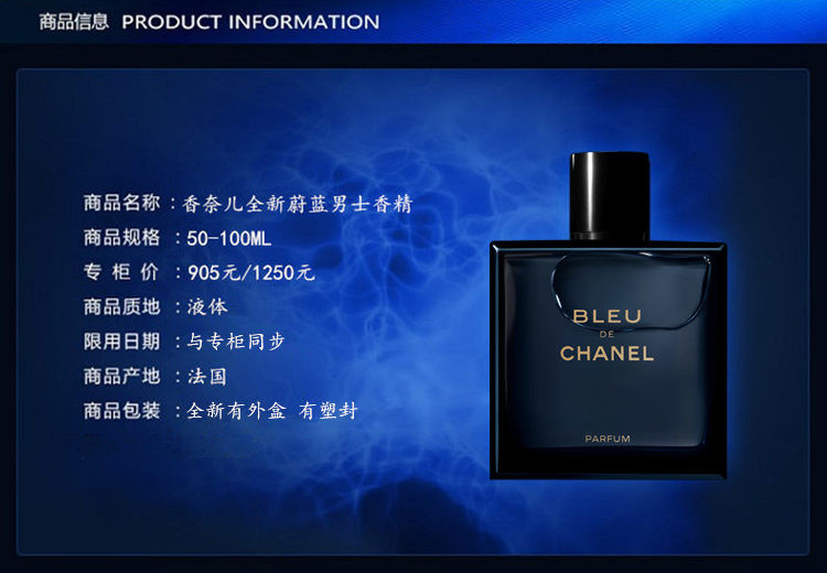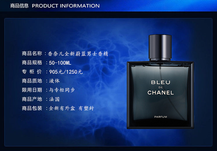 【热卖】=CHANEL/香奈儿 全新蔚蓝男士香精50-100ML 20