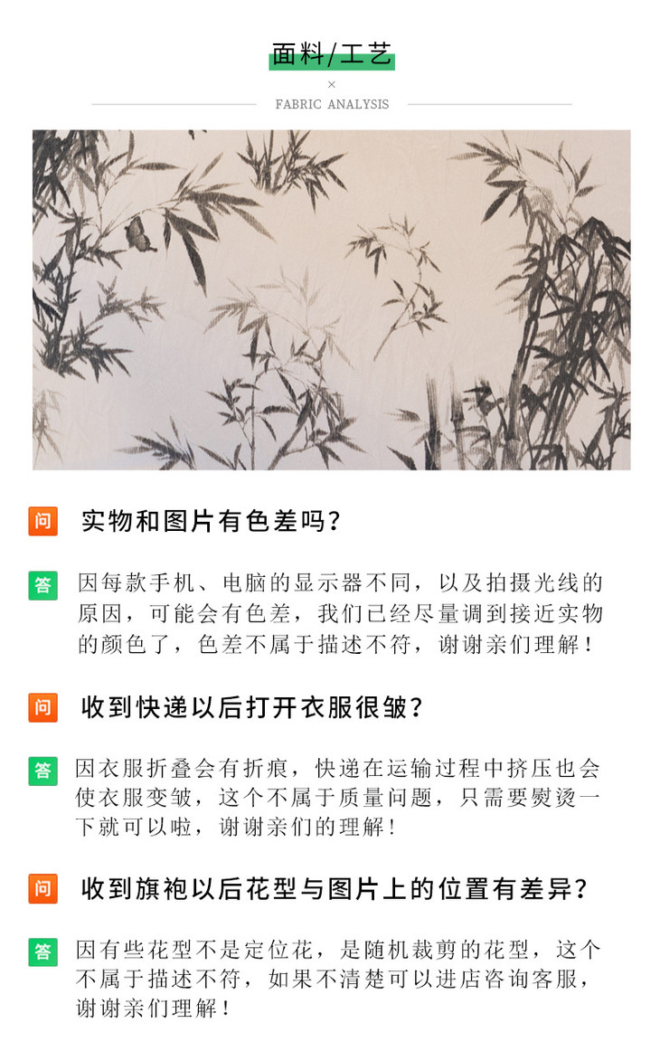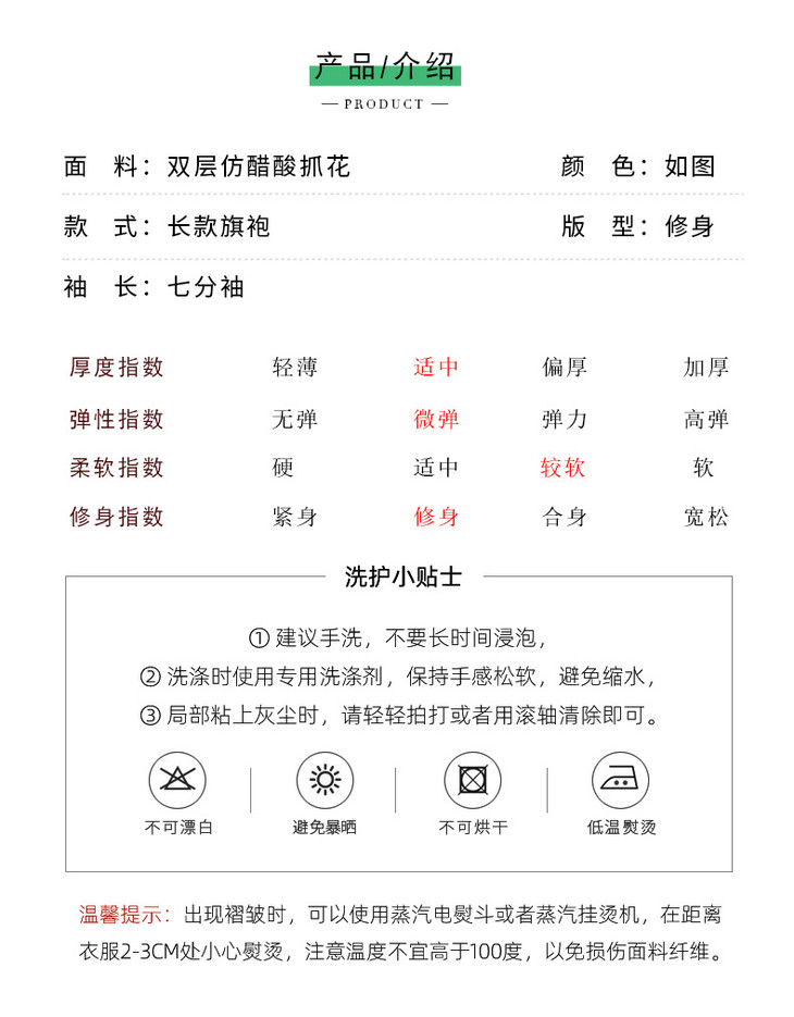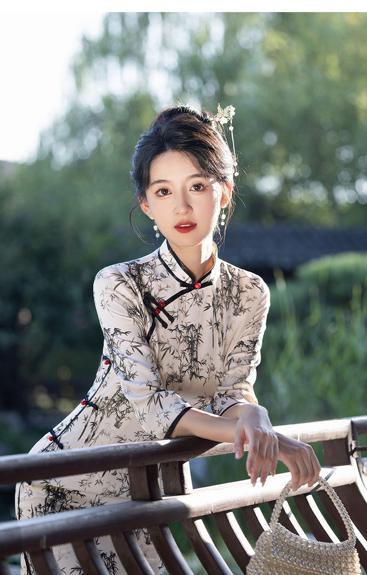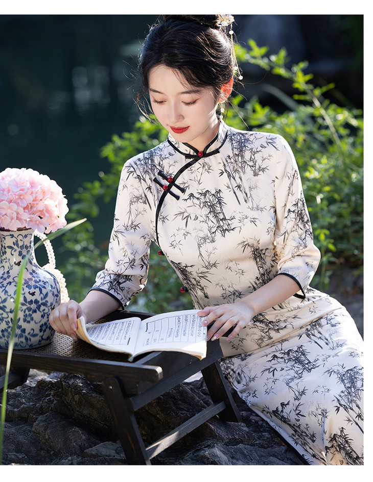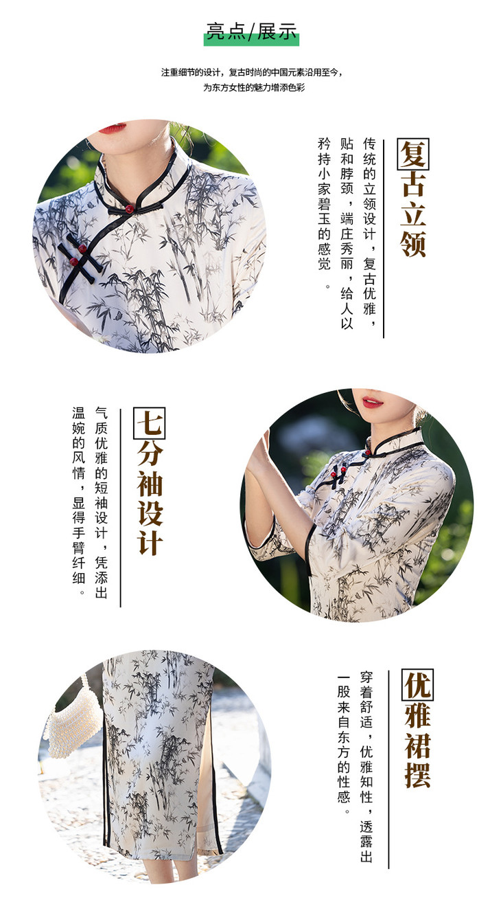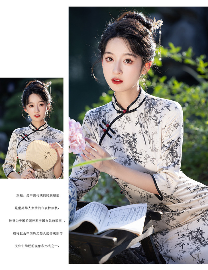 改良新款秋冬年轻款日常水墨仿醋酸抓花设计感优雅七分袖旗袍MLS6986