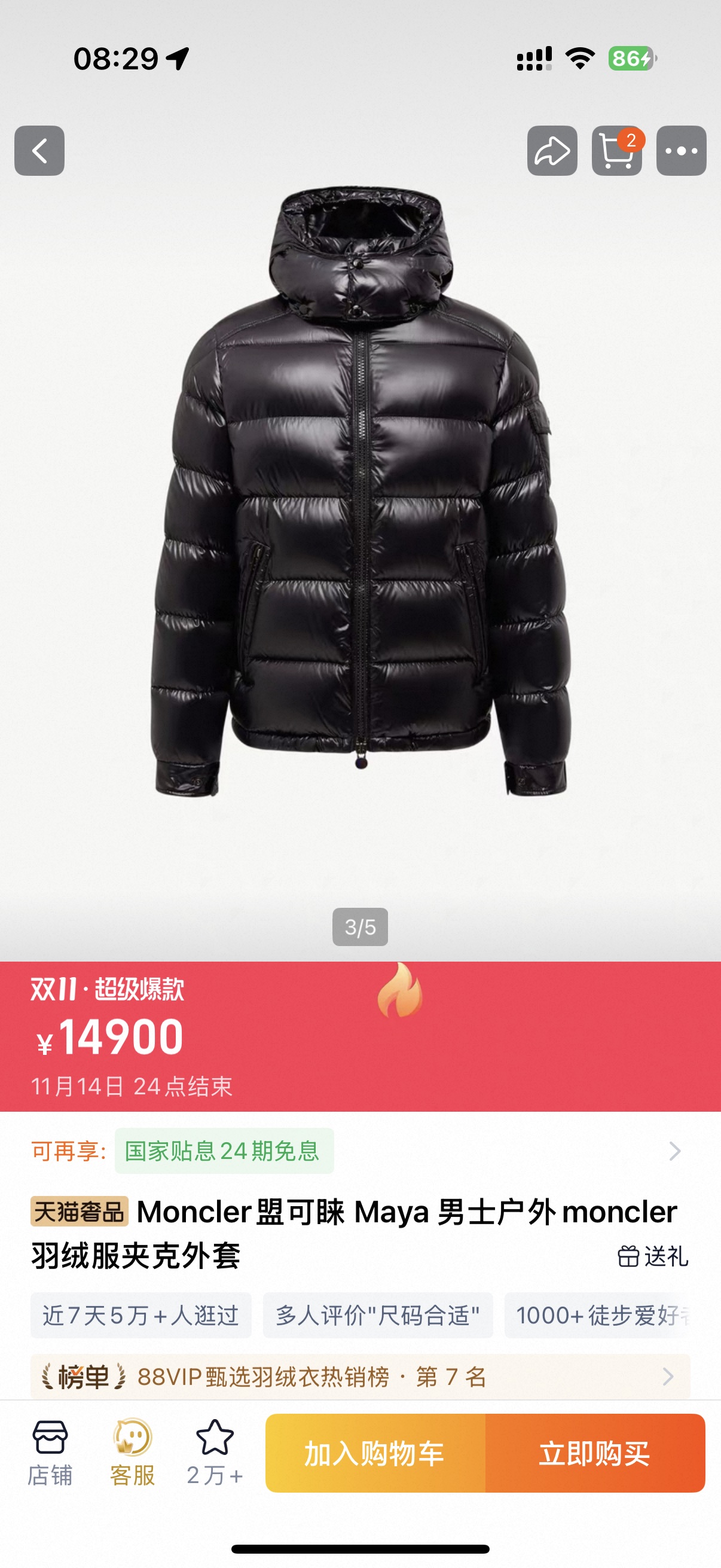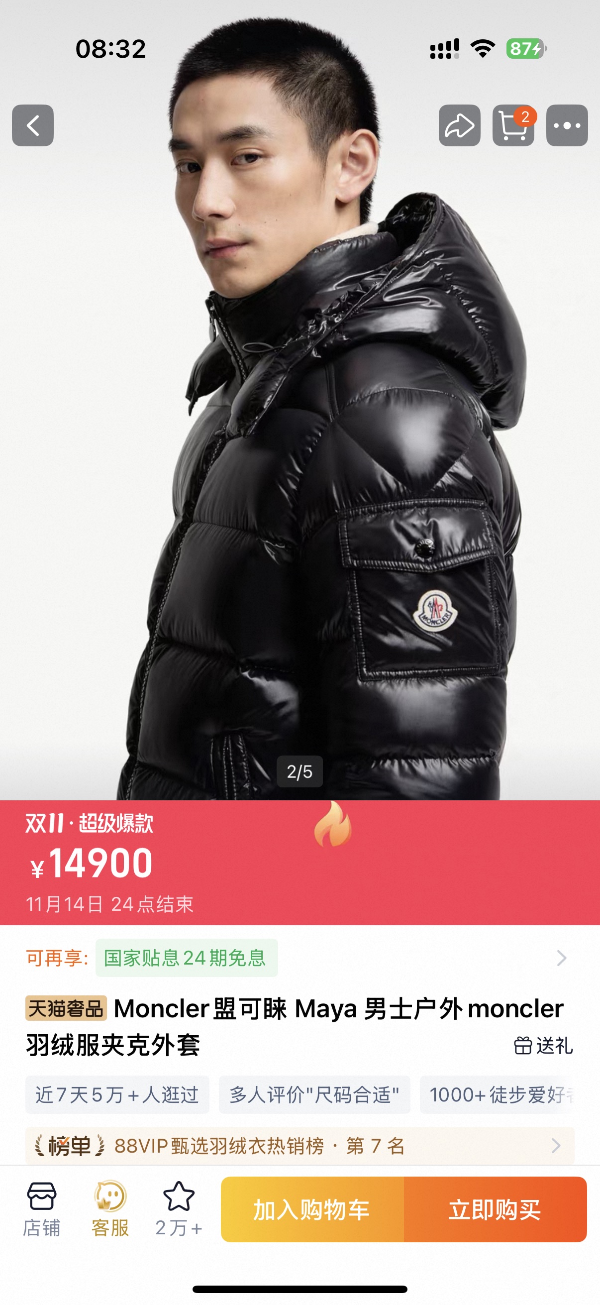 Moncler 盟可睐Maya男士户外羽绒服夹克外套,充绒量218克白鹅绒