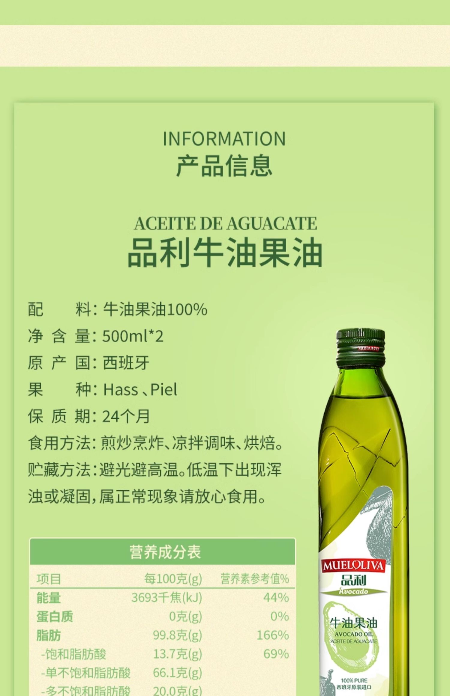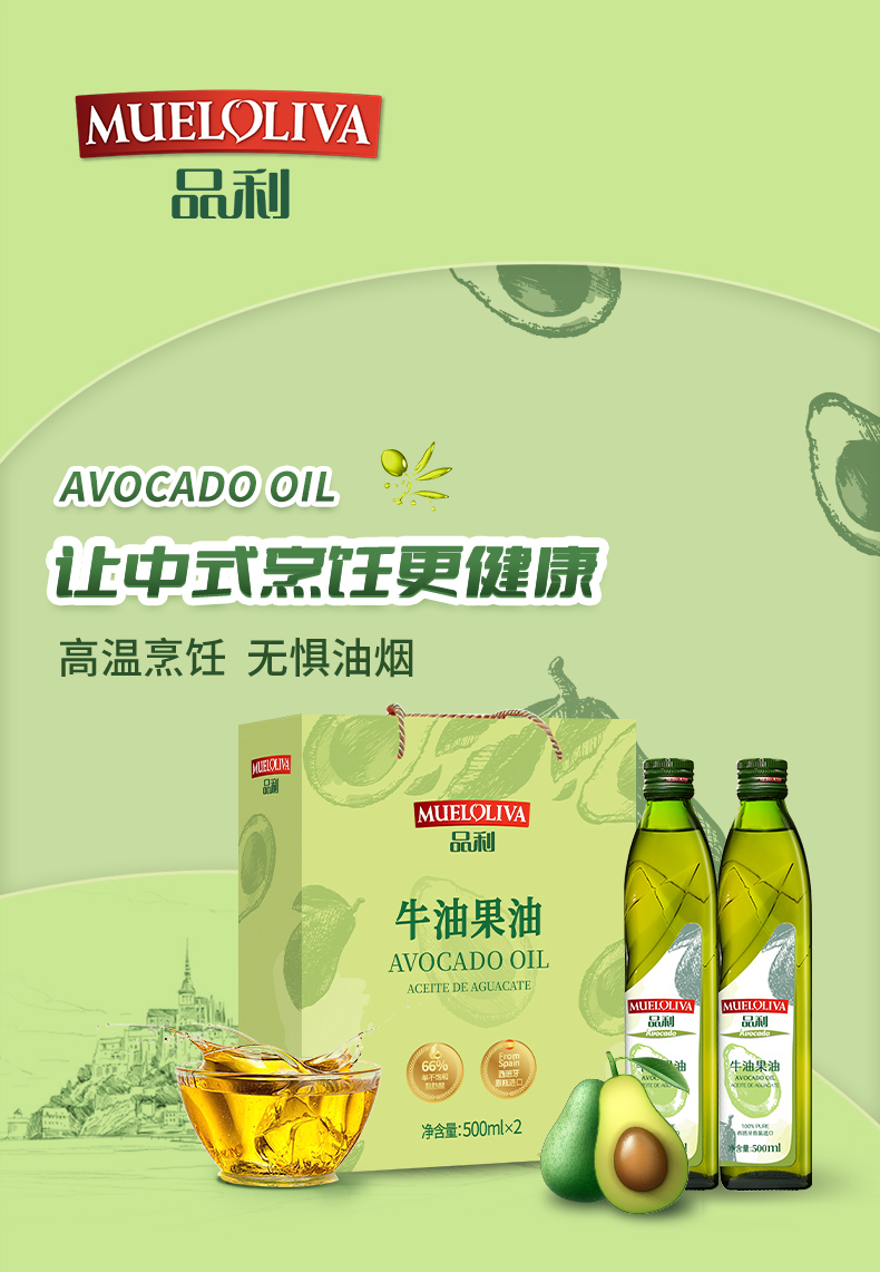品利牛油果油500ml*2瓶礼盒/033697 自然清香无异味无惧油烟