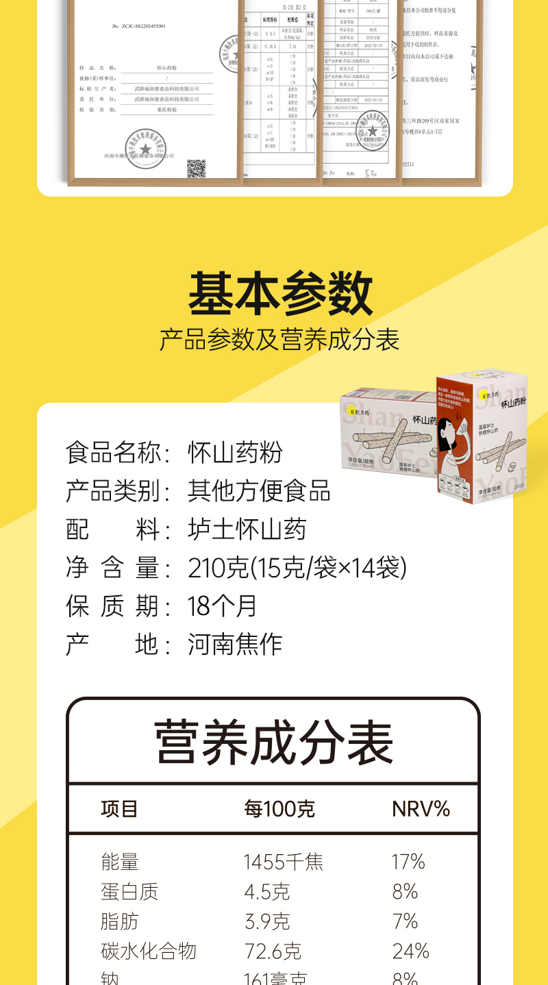 日就月将 垆土山药 怀山药粉 210克(15克/袋*14袋)