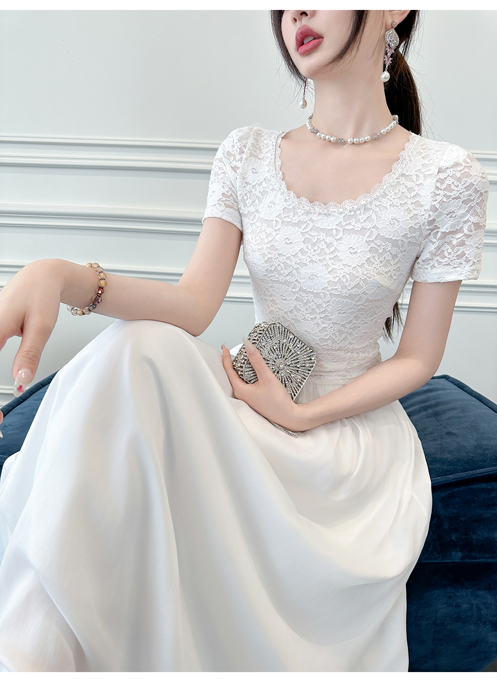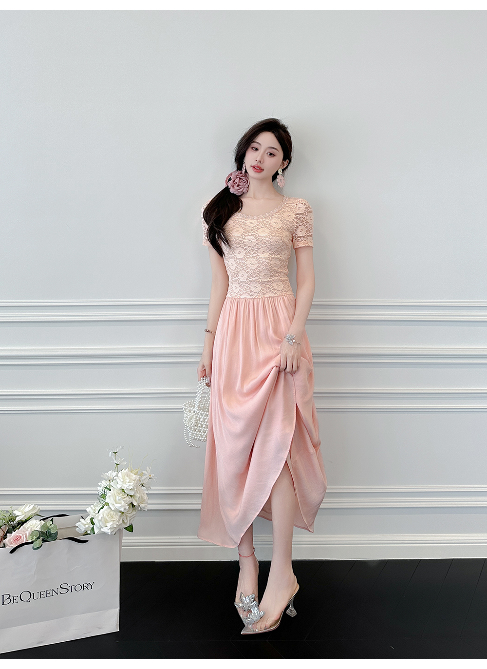 【孤品样衣,不退不换】【灿若夏花】夏季透气弹力蕾丝A字短袖伞裙连衣裙