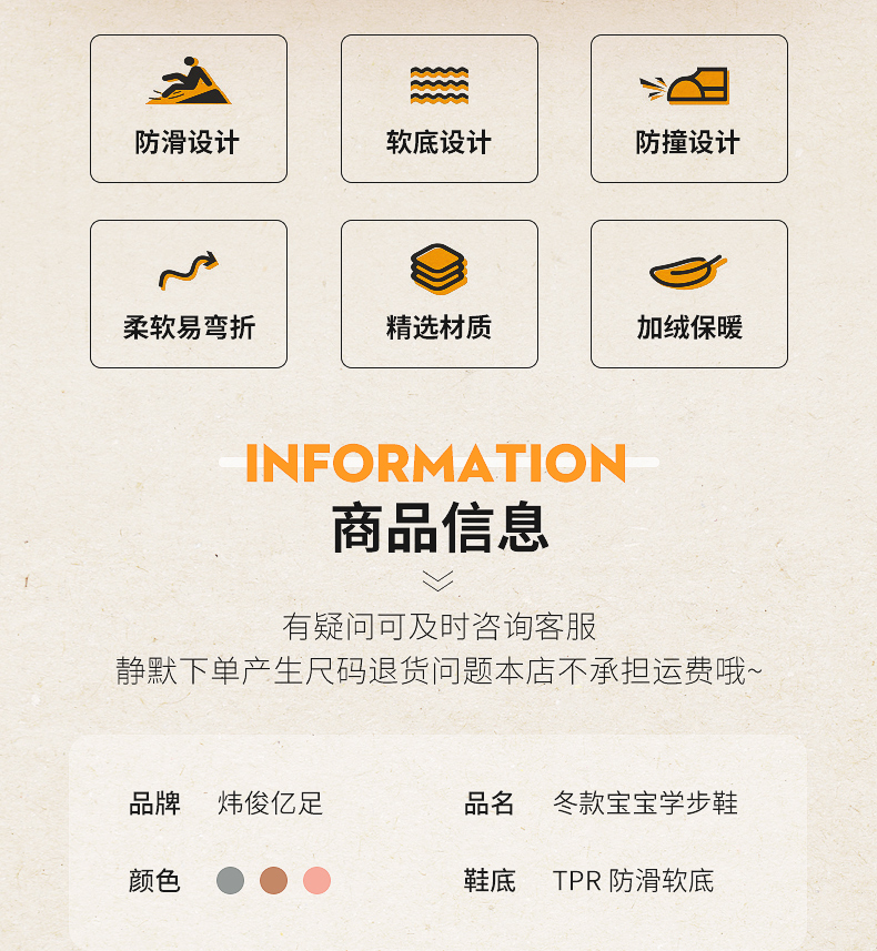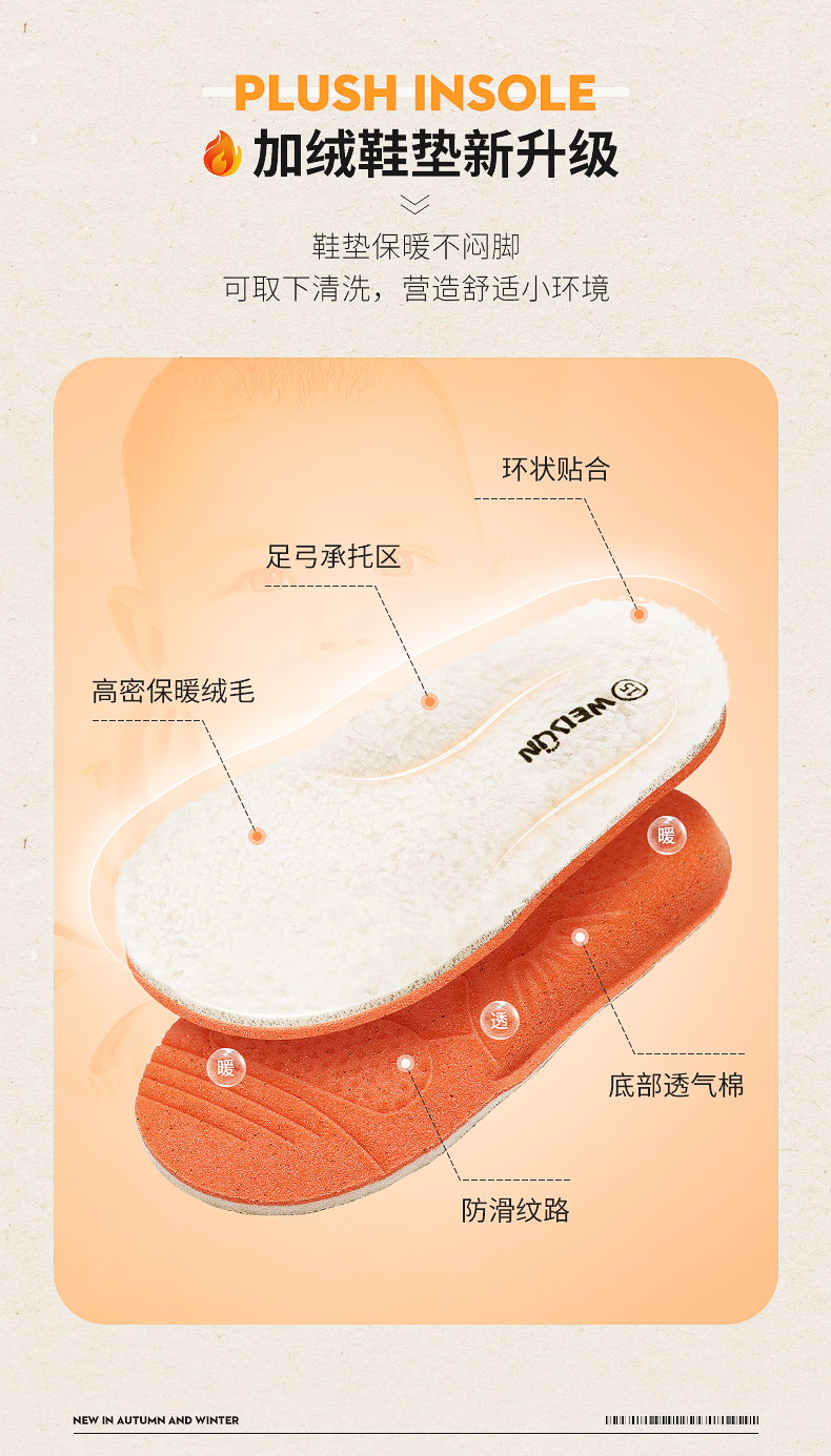 炜俊亿足学步鞋男女宝宝棉鞋秋冬款婴儿鞋子软底加绒1一2-3岁男童鞋14-21
