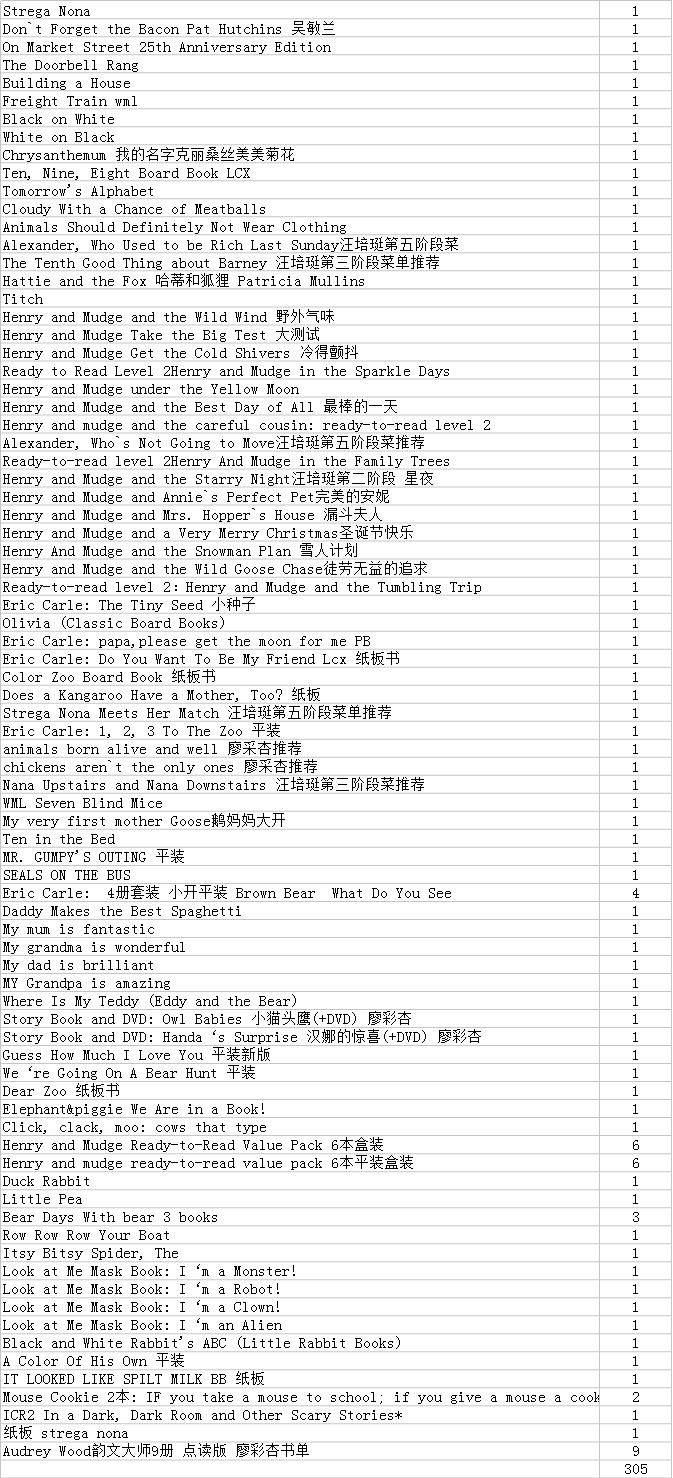 2. 每本唸熟了,再加下一本。(我觉得重点不是你「买了」多少书给你的孩子,而是你「唸了」多少书给你的孩子听。)