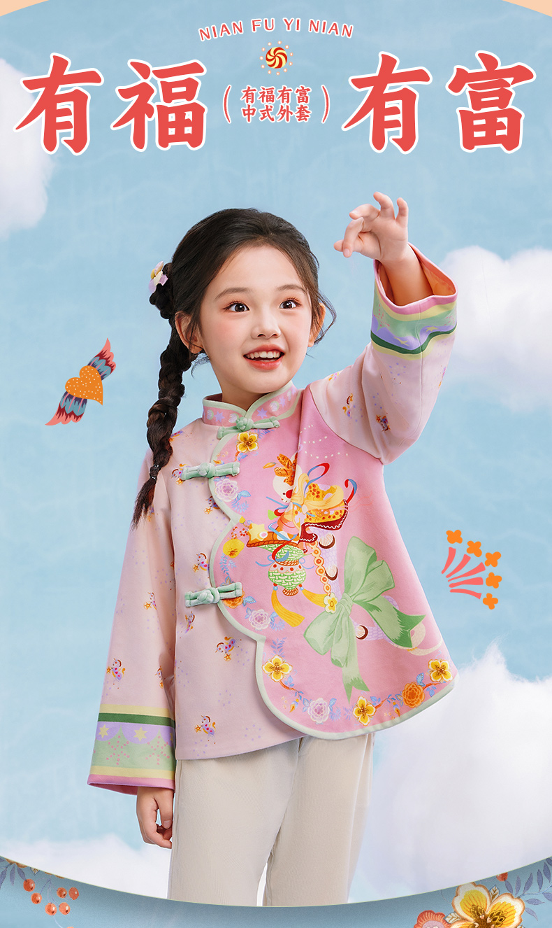 年衣童装女童新中式唐装外套2025年春新款女孩国风汉服上衣有福有富中式外套