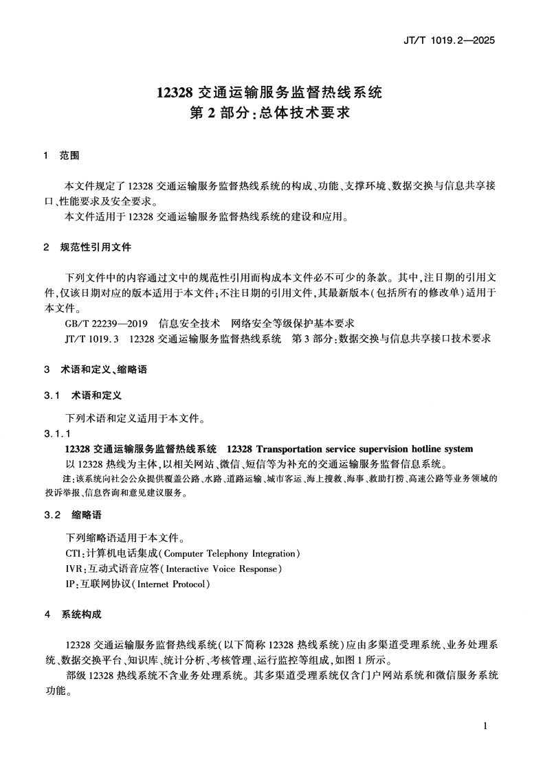12328交通运输服务监督热线系统 第2部分:总体技术要求(JT/T 1019.2—2025)