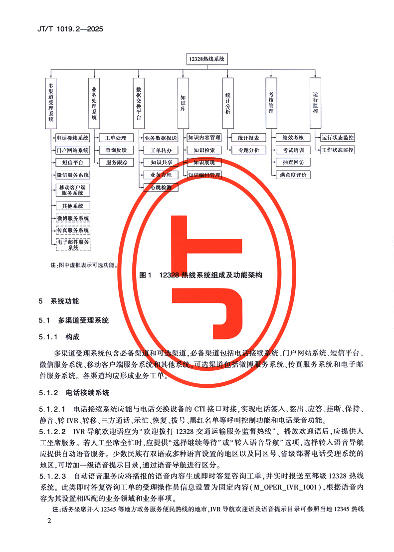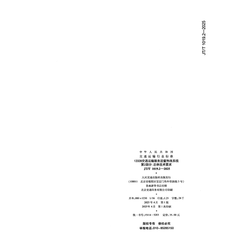 书名:12328交通运输服务监督热线系统 第2部分:总体技术要求(JT/T 1019.2—2025)