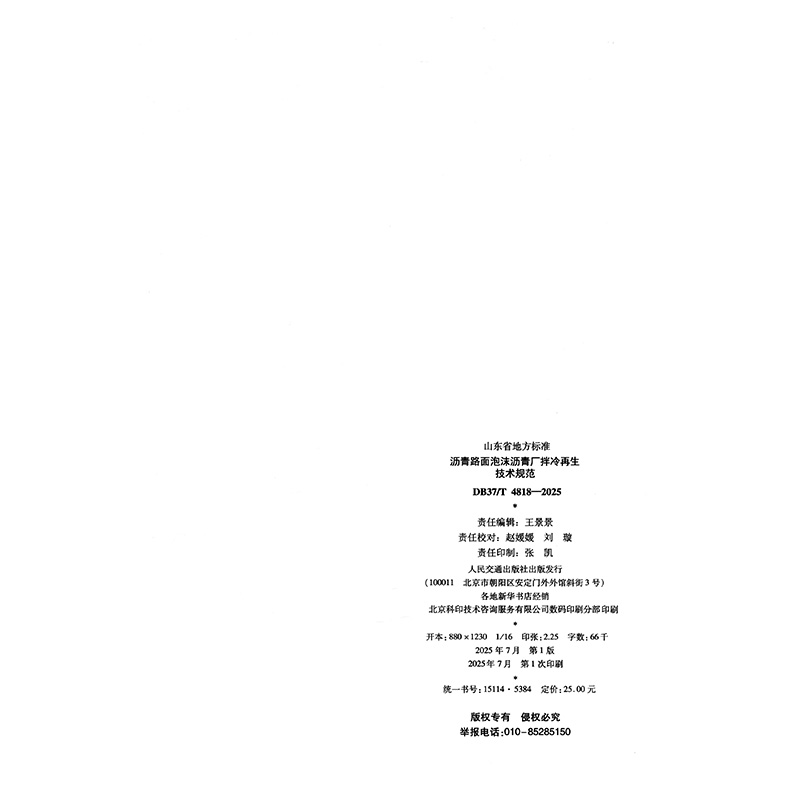 书名:沥青路面泡沫沥青厂拌冷再生技术规范