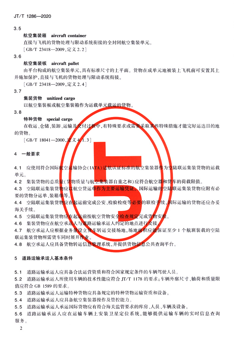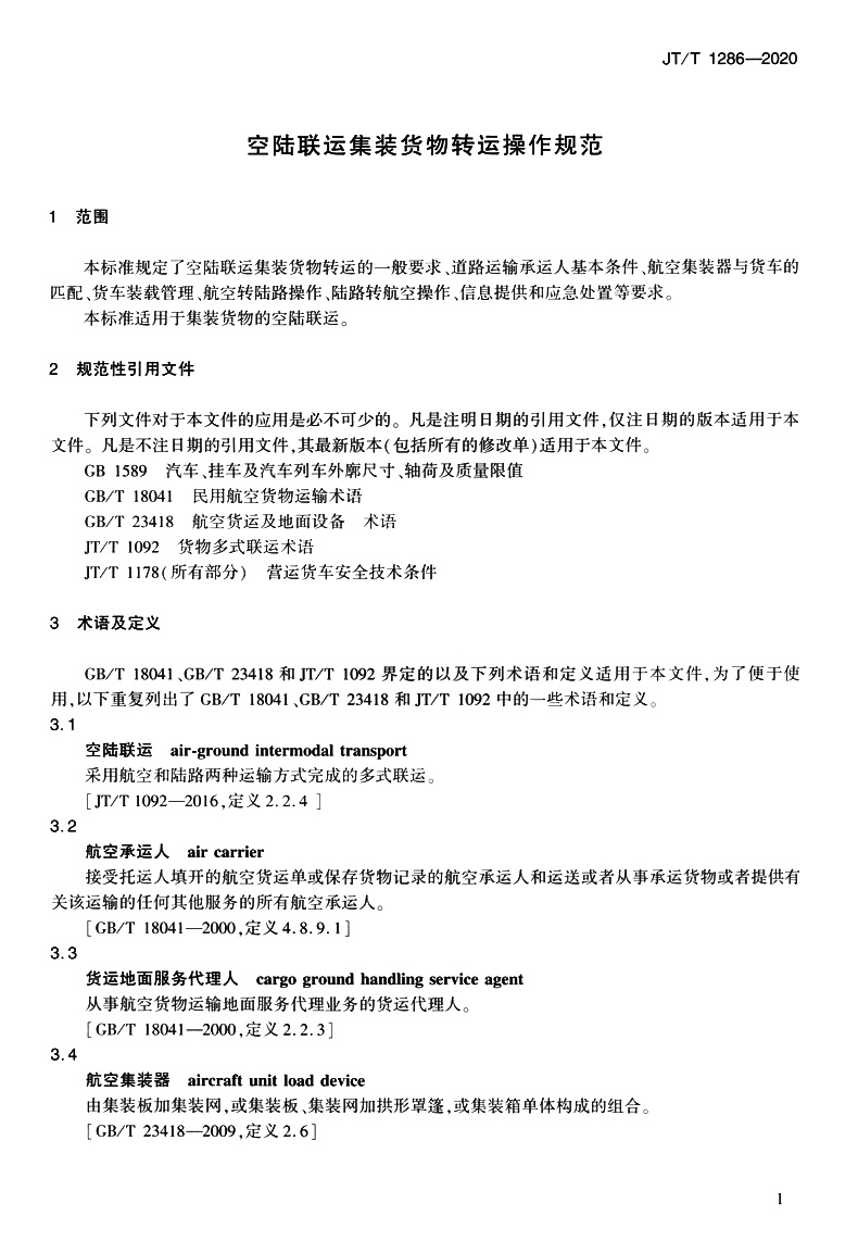 空陆联运集装货物转运操作规范(JT/T 1286—2020)
