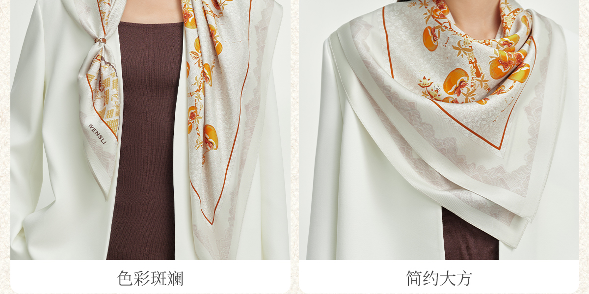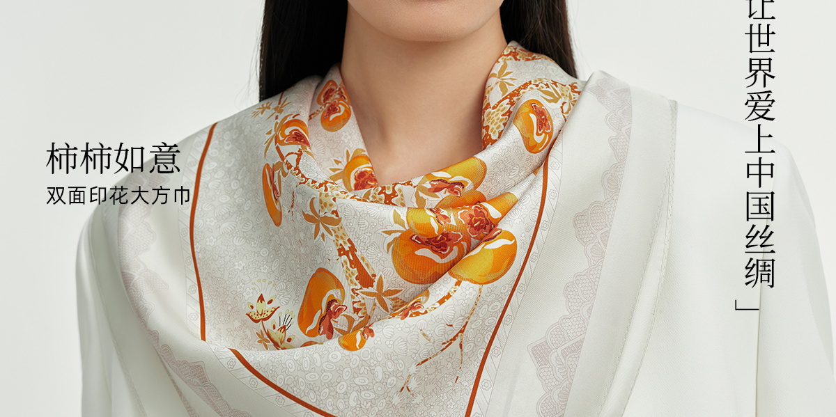 万事利双面印花大方巾-柿柿如意