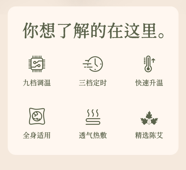 九档调温,三档定时,自由掌控,坐着就能艾灸养生~