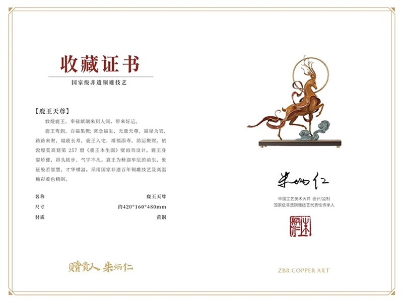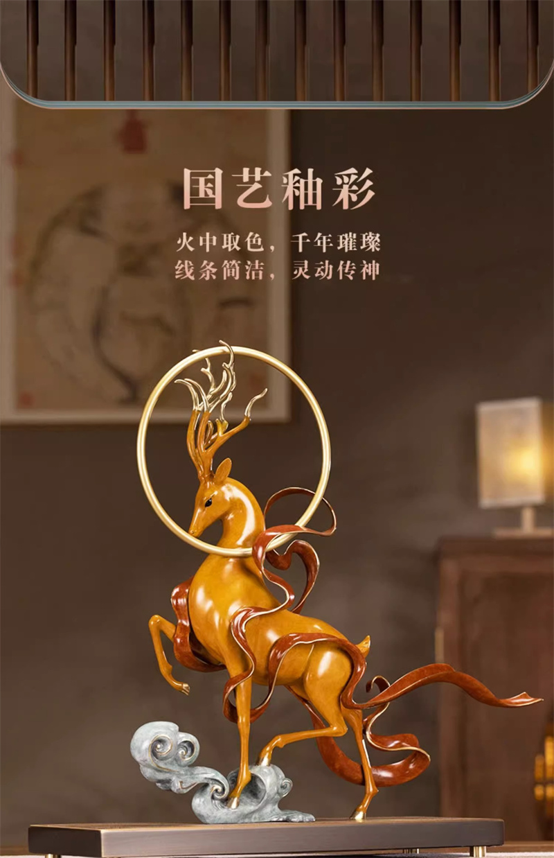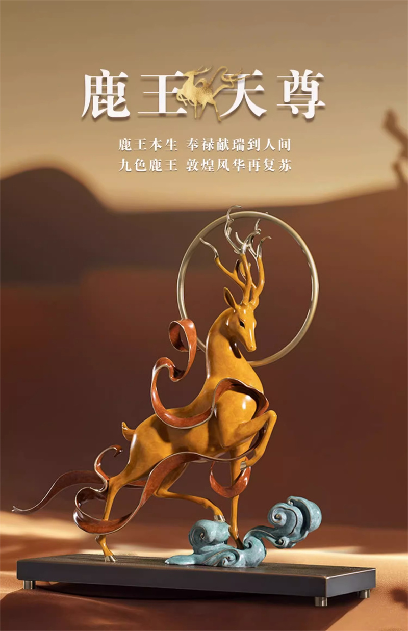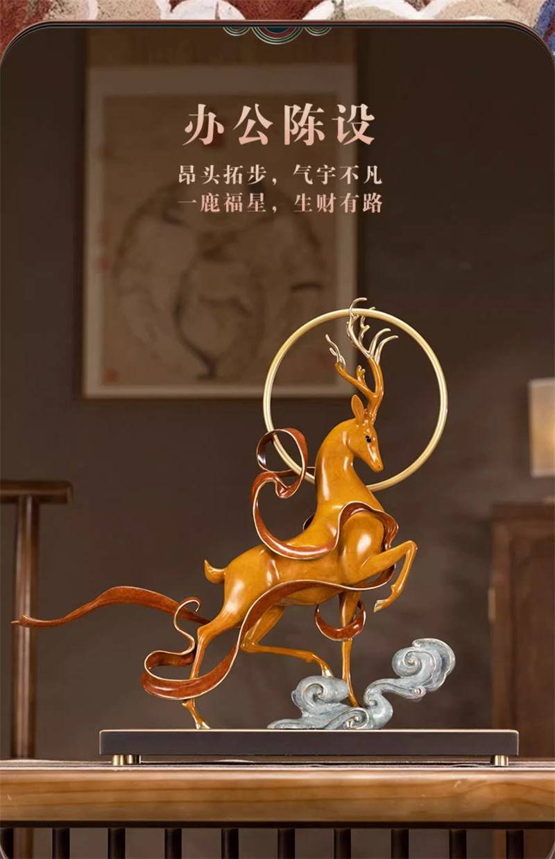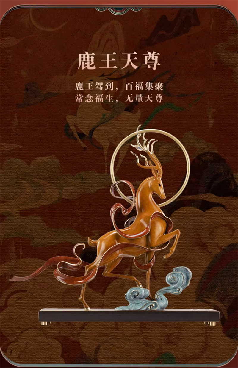 朱炳仁铜 鹿王天尊铜雕鹿摆件客厅中式艺术品玄关装饰摆件礼品