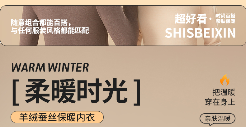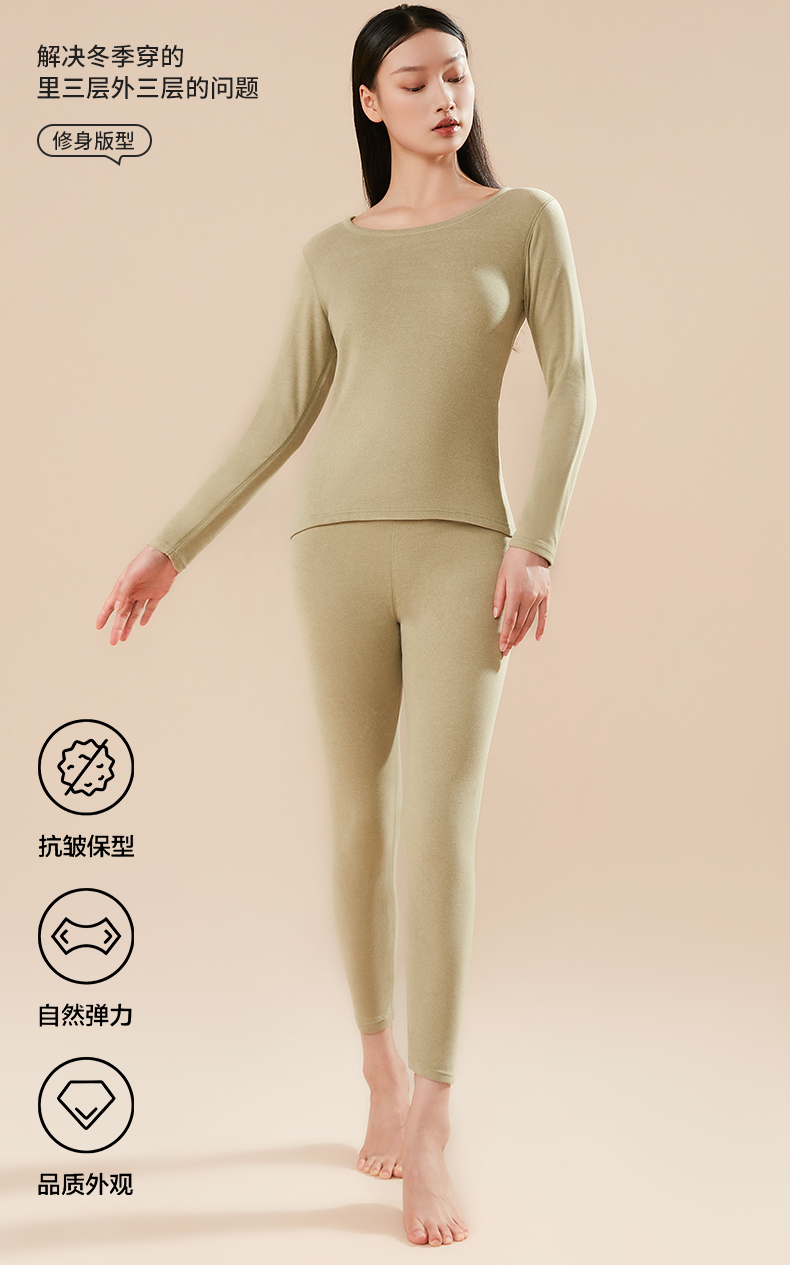 【保暖新趋势】花姿彤 羊绒蚕丝保暖内衣套装 速暖发热 双面磨毛双倍保暖 高弹无束缚修身版型