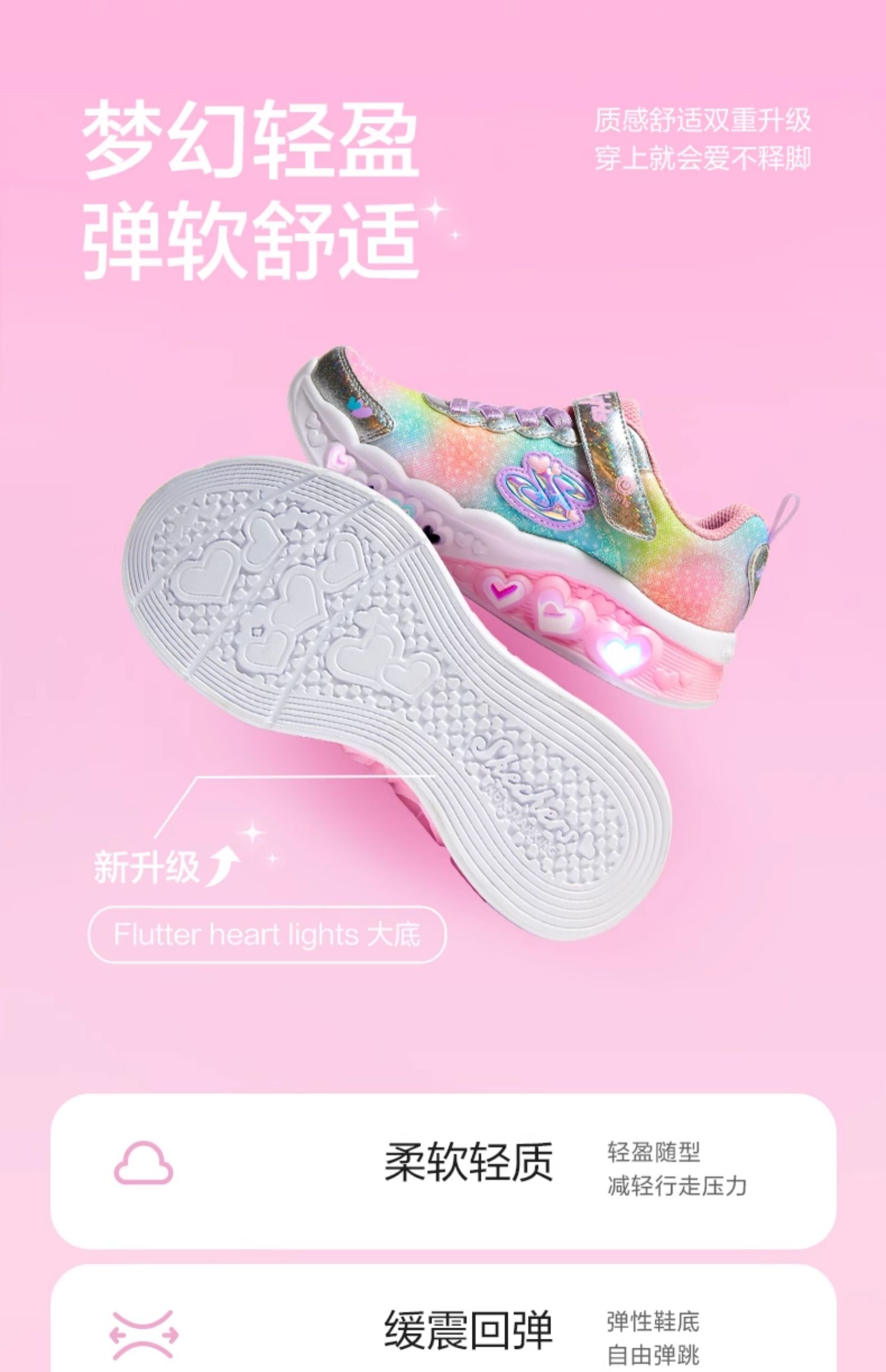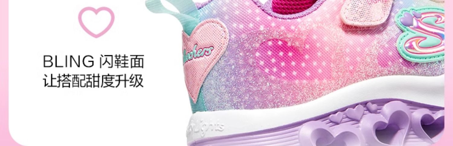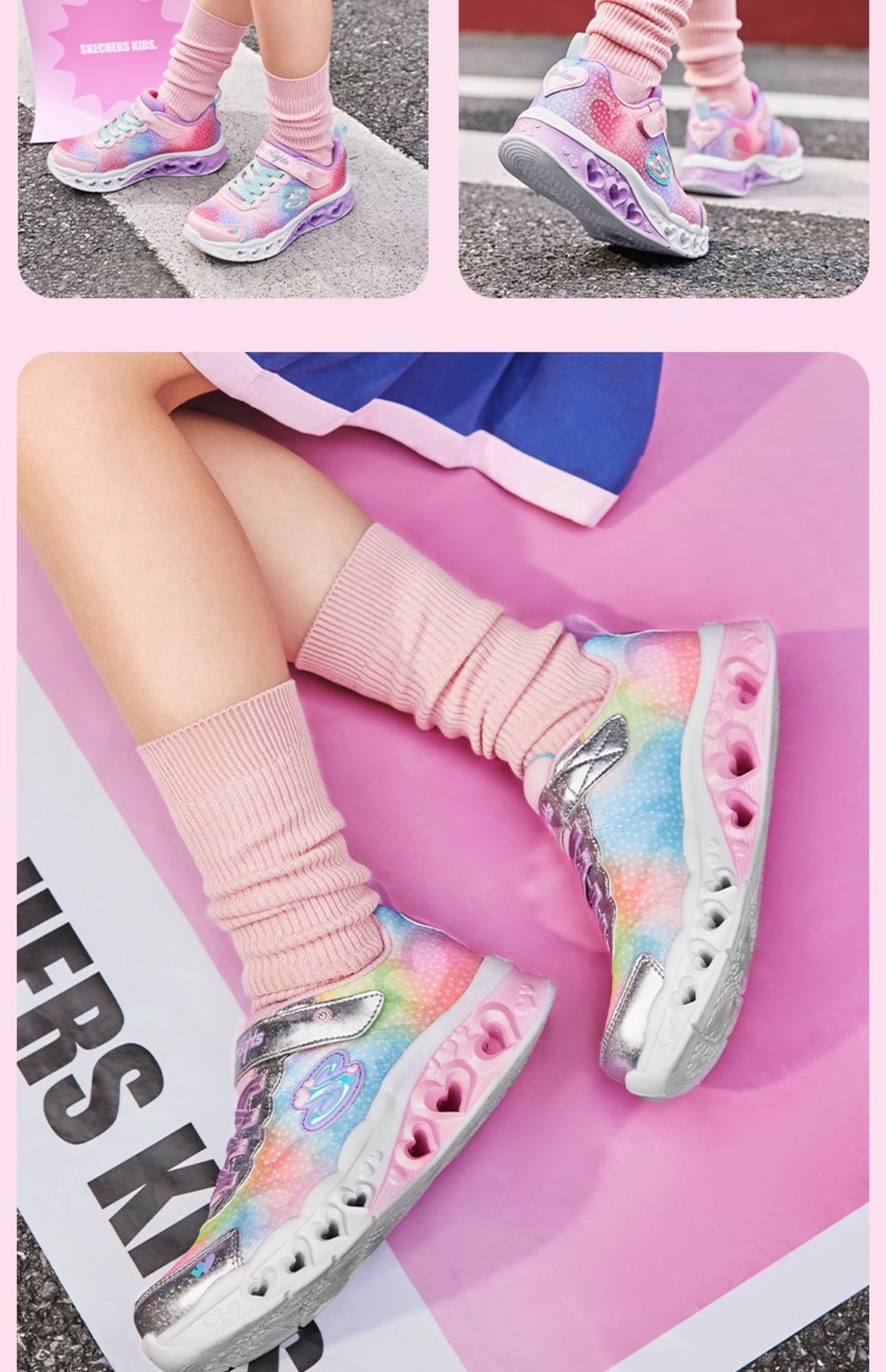 Skechers斯凯奇儿童闪灯鞋中大童亮灯休闲鞋女童公主发光运动鞋子