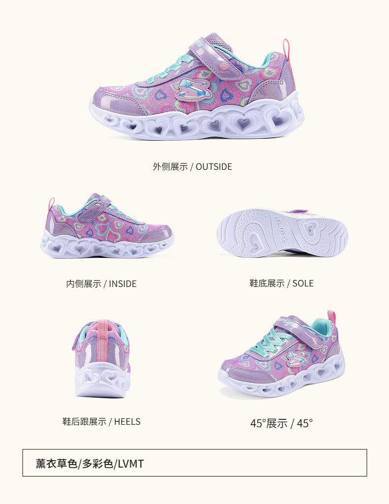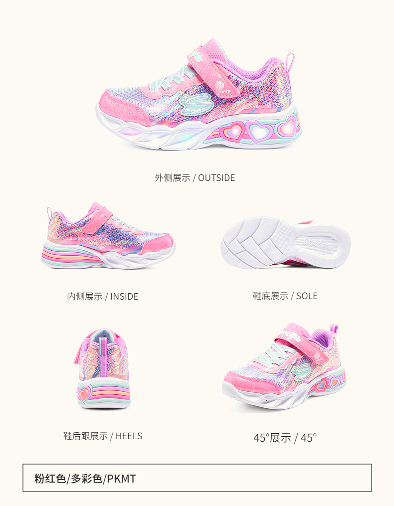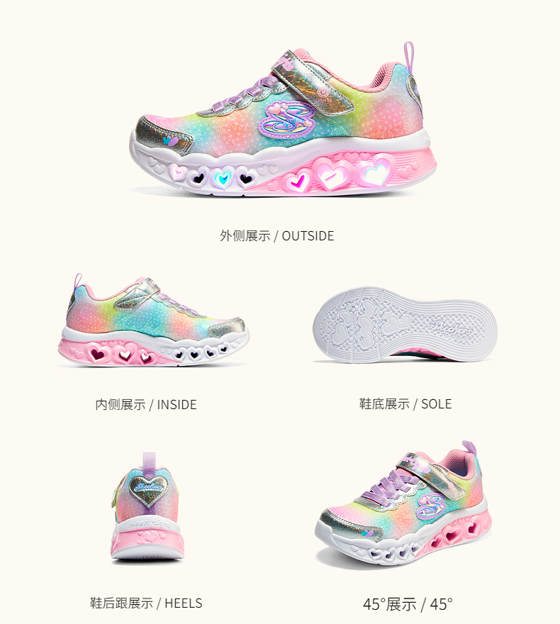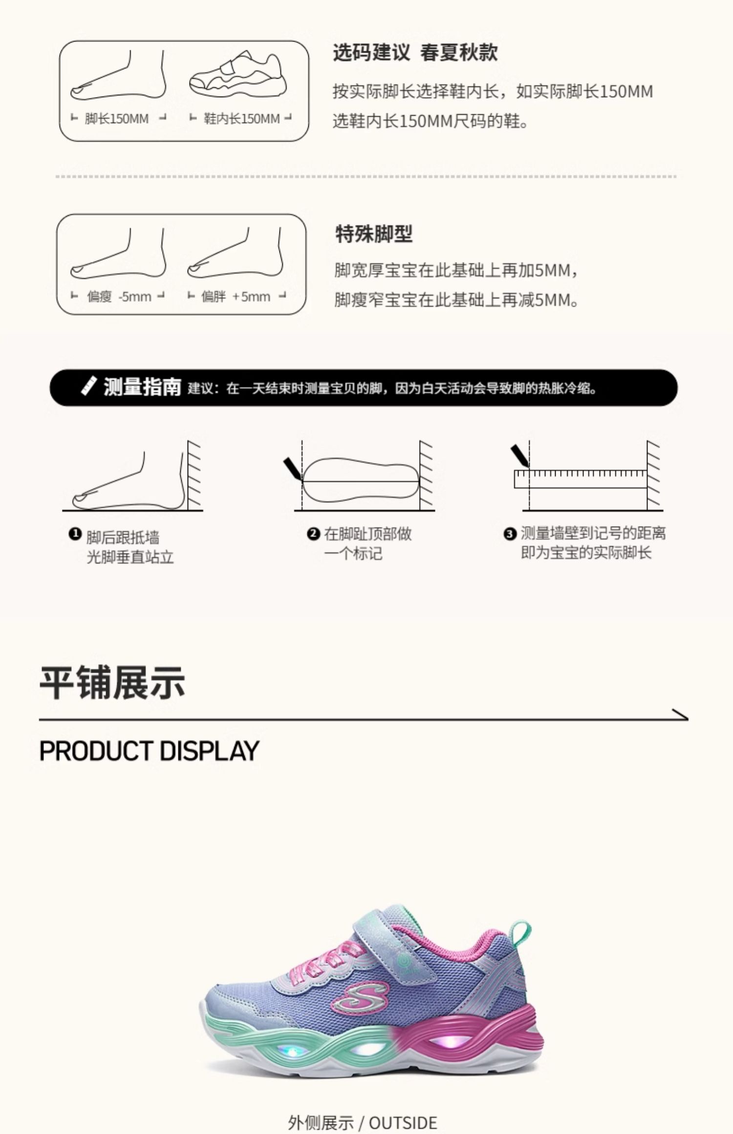 Skechers斯凯奇儿童闪灯鞋中大童亮灯休闲鞋女童公主发光运动鞋子