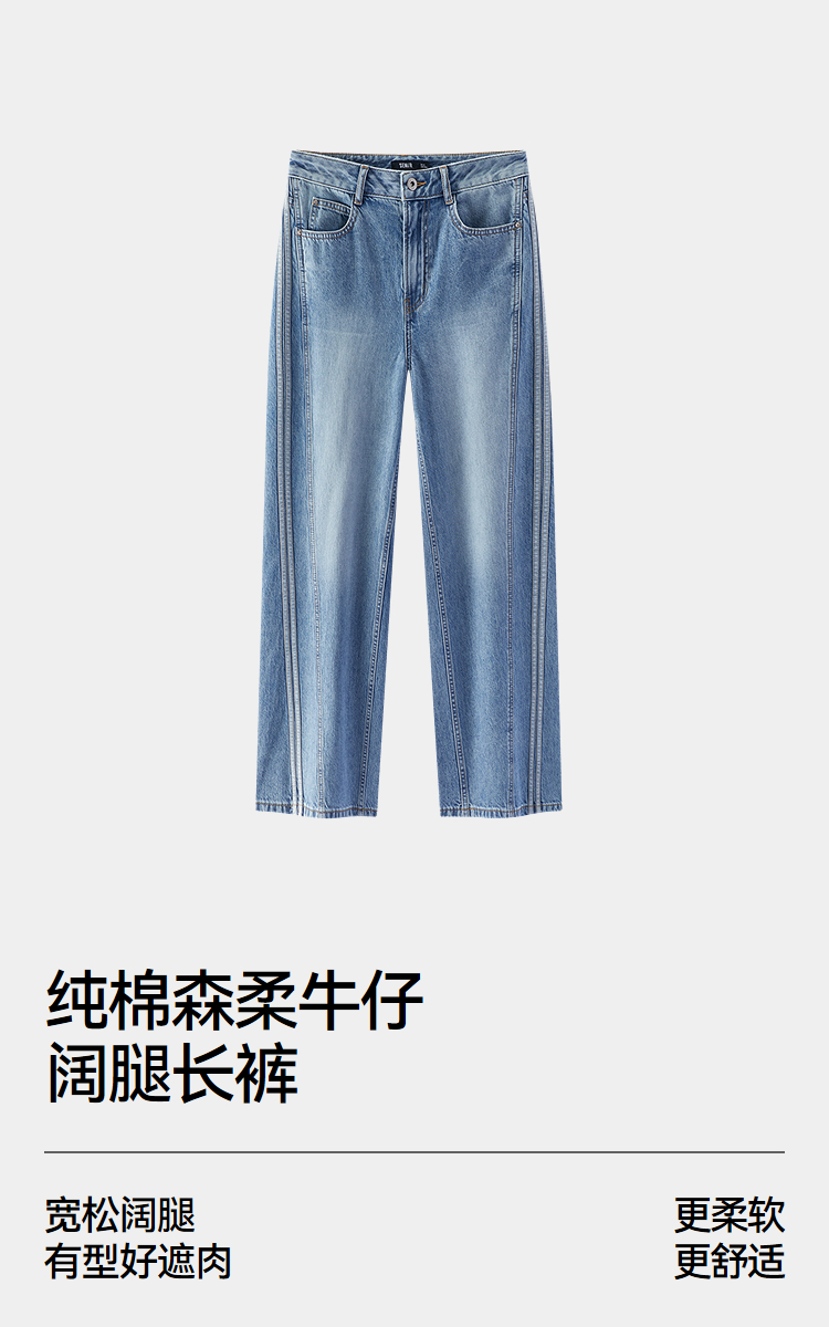 森柔|商场同款森马牛仔裤女夏季纯棉阔腿裤2026新款潮酷显瘦长裤