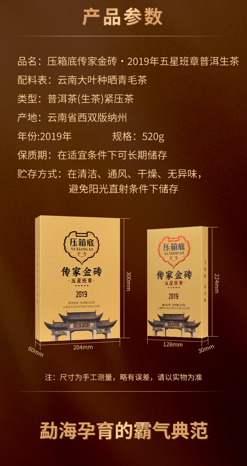 压箱底 传家金砖 2019五星班章普洱生茶 茶砖 520克/盒