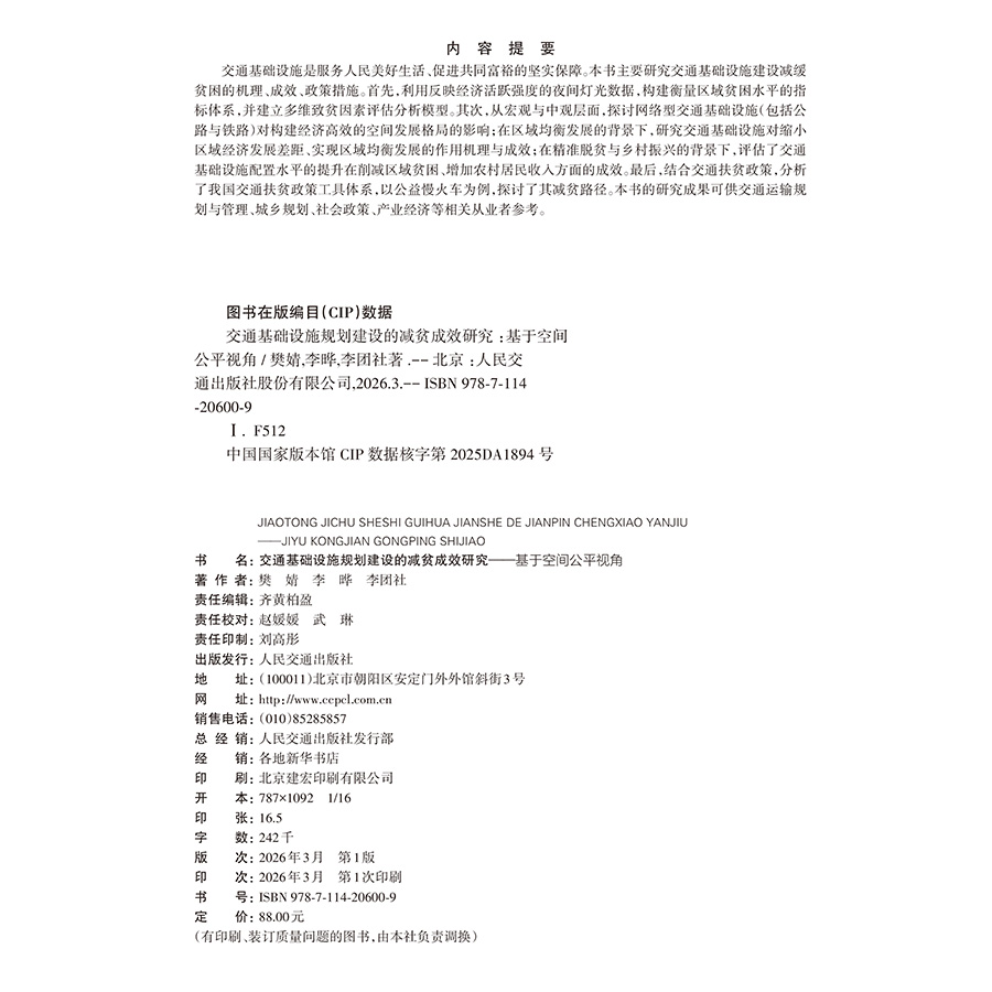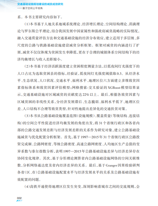 书名:交通基础设施规划建设的减贫成效研究——基于空间公平视角
