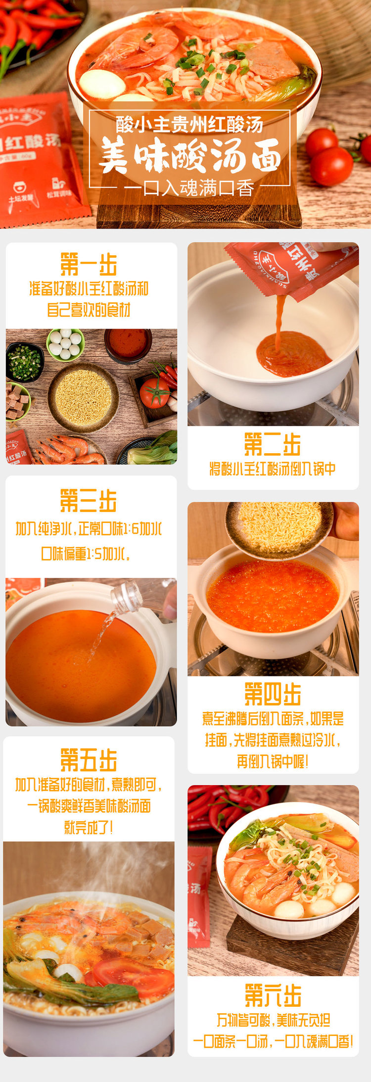 取一袋酸小主红酸汤入水化开,一锅喷香的酸汤锅底轻松呈现,万物皆可酸汤煮,煮啥啥都超级香!厨房小白也能秒变五星大厨!