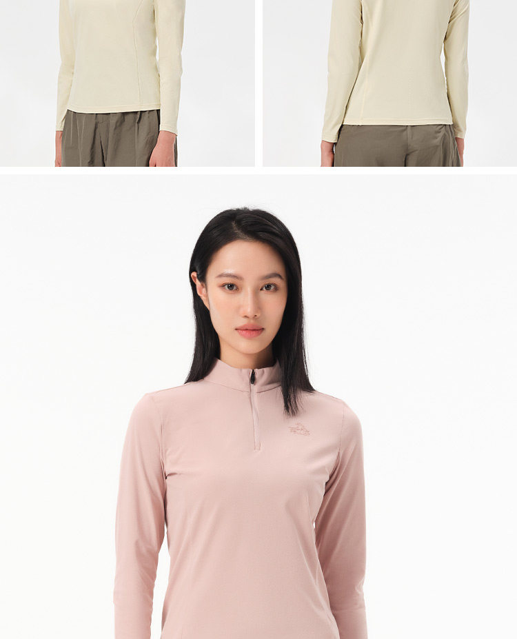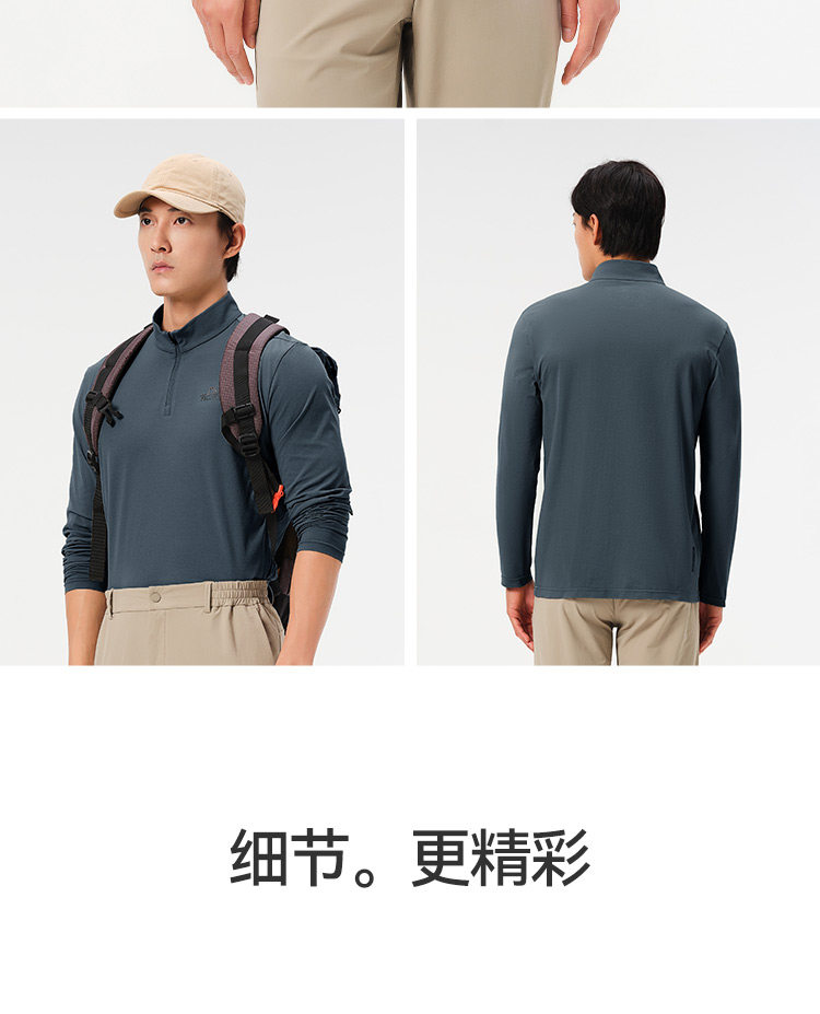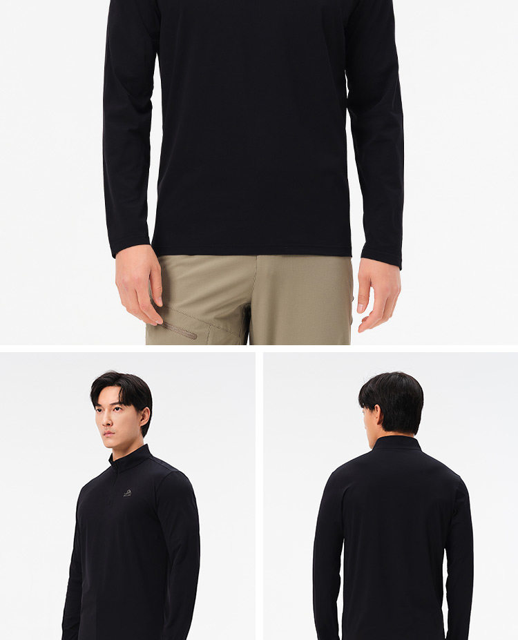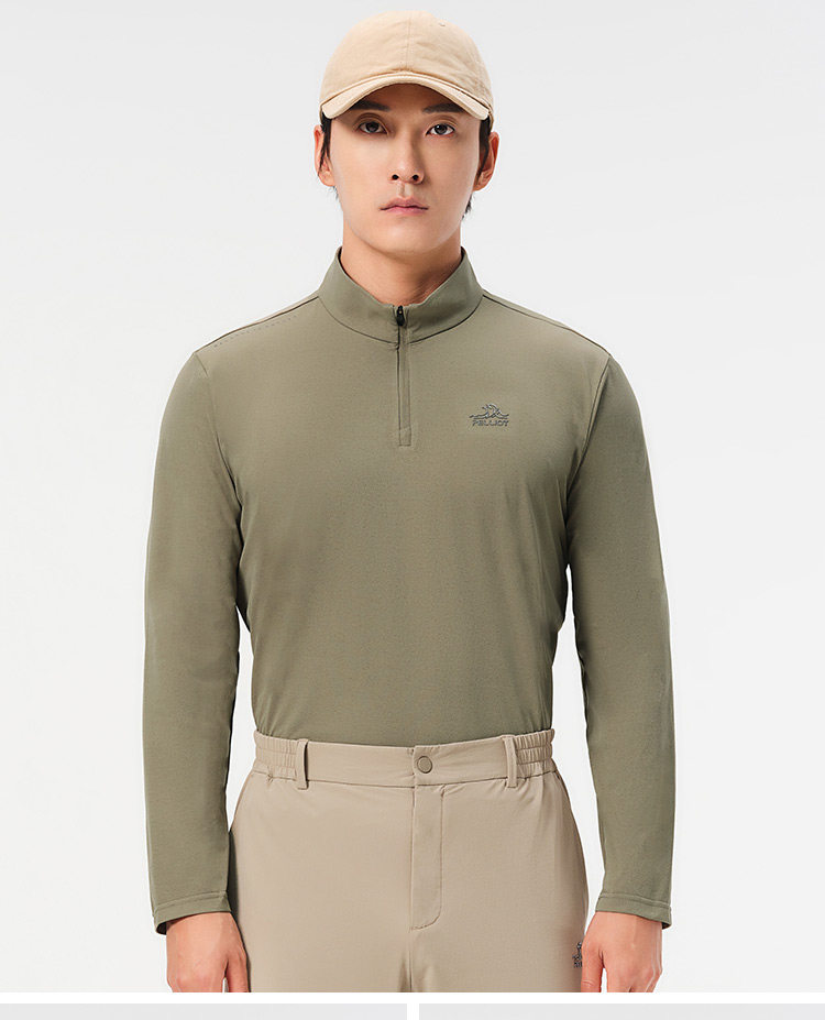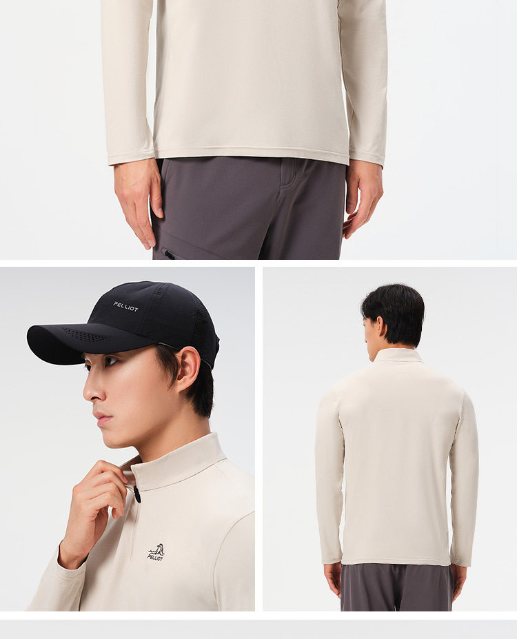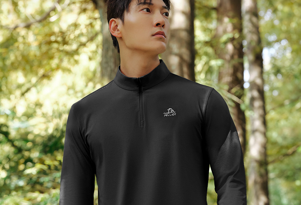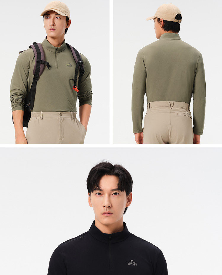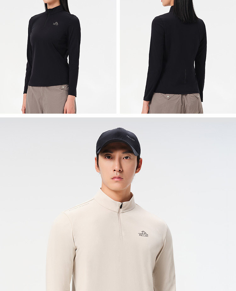 伯希和户外速干T恤秋冬男立领跑步运动长袖打底衫徒步登山上衣女