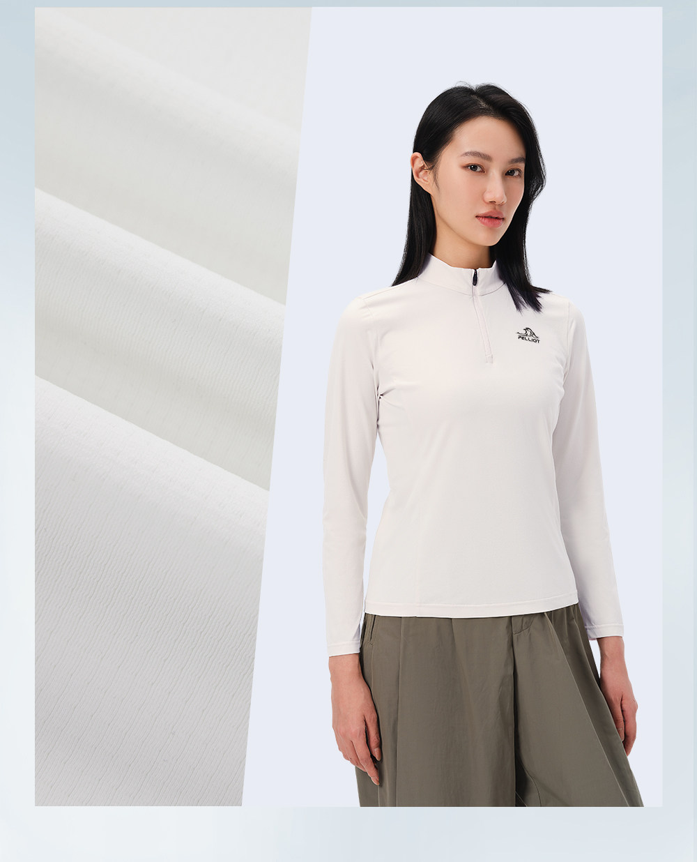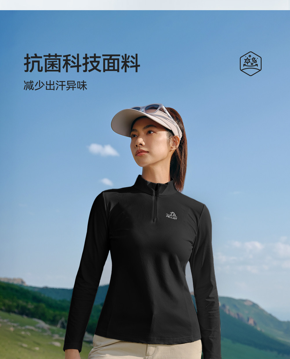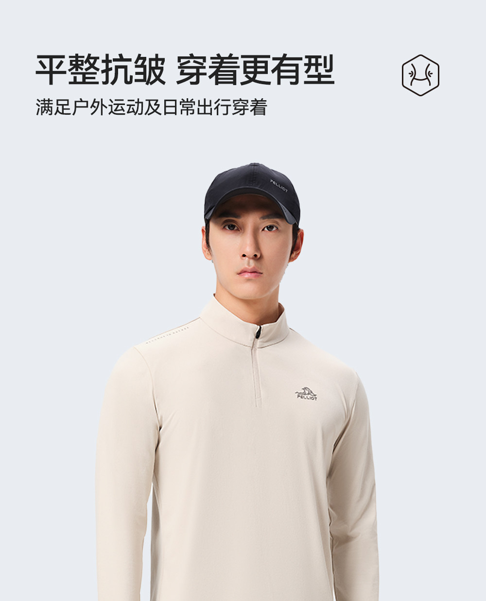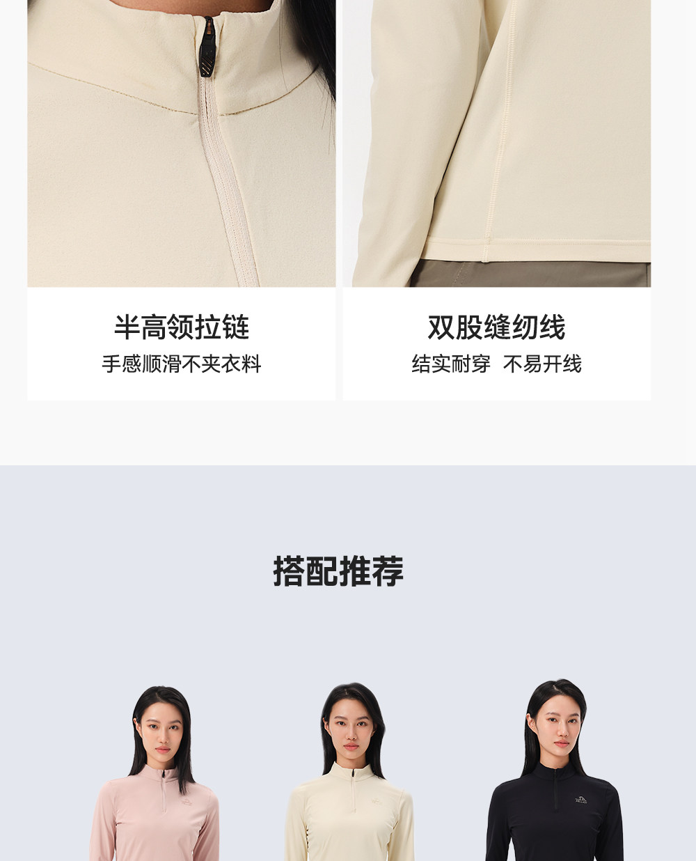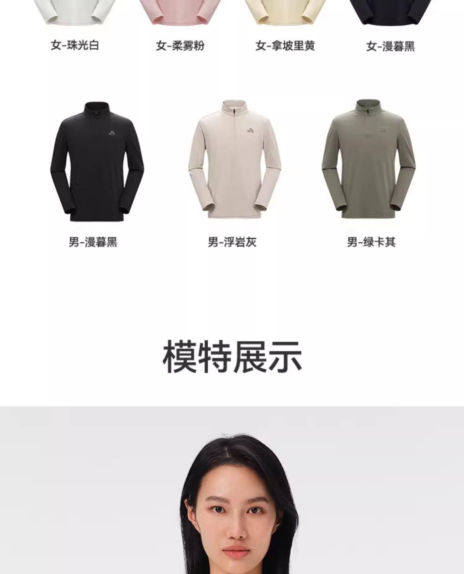 伯希和户外速干T恤秋冬男立领跑步运动长袖打底衫徒步登山上衣女