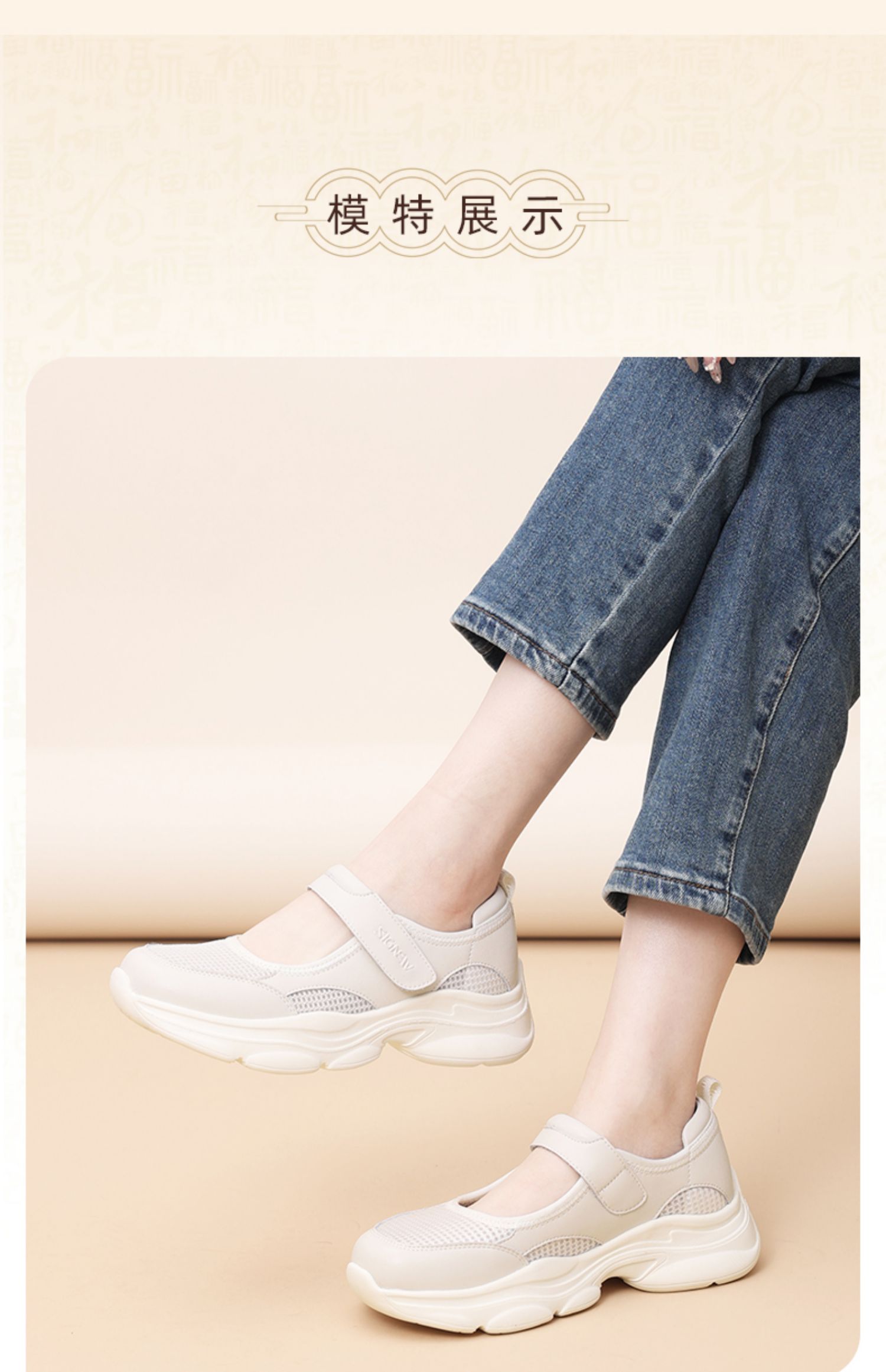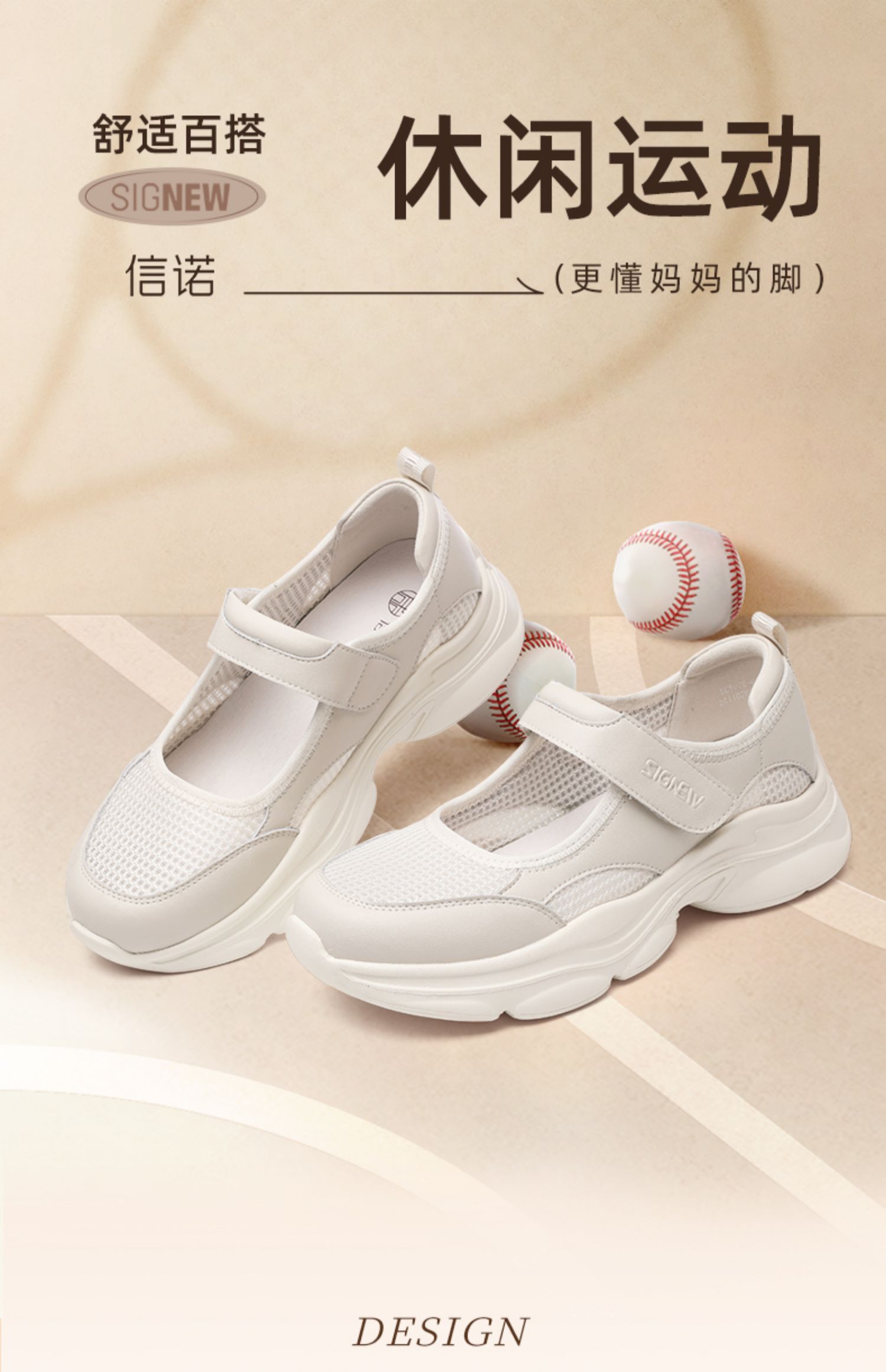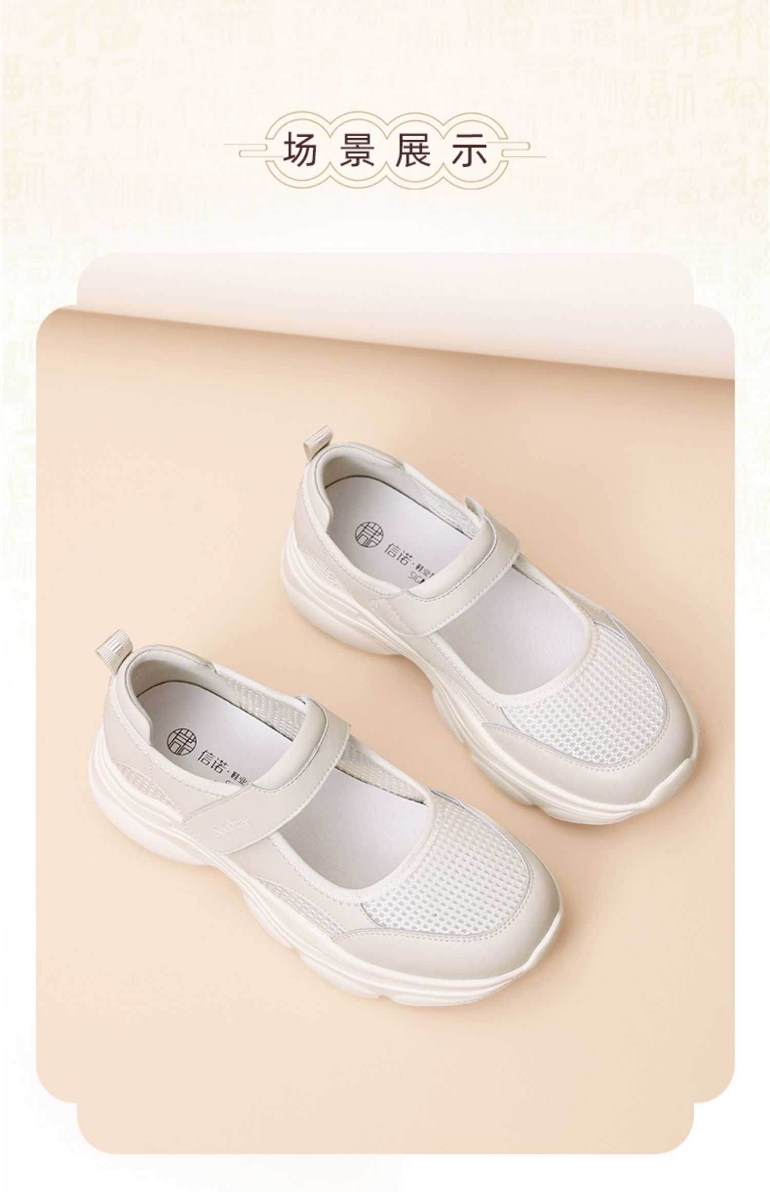 信诺舒适软底运动休闲鞋女2025春季新款网面透气单鞋厚底妈妈鞋子5C5020-6