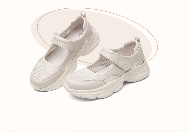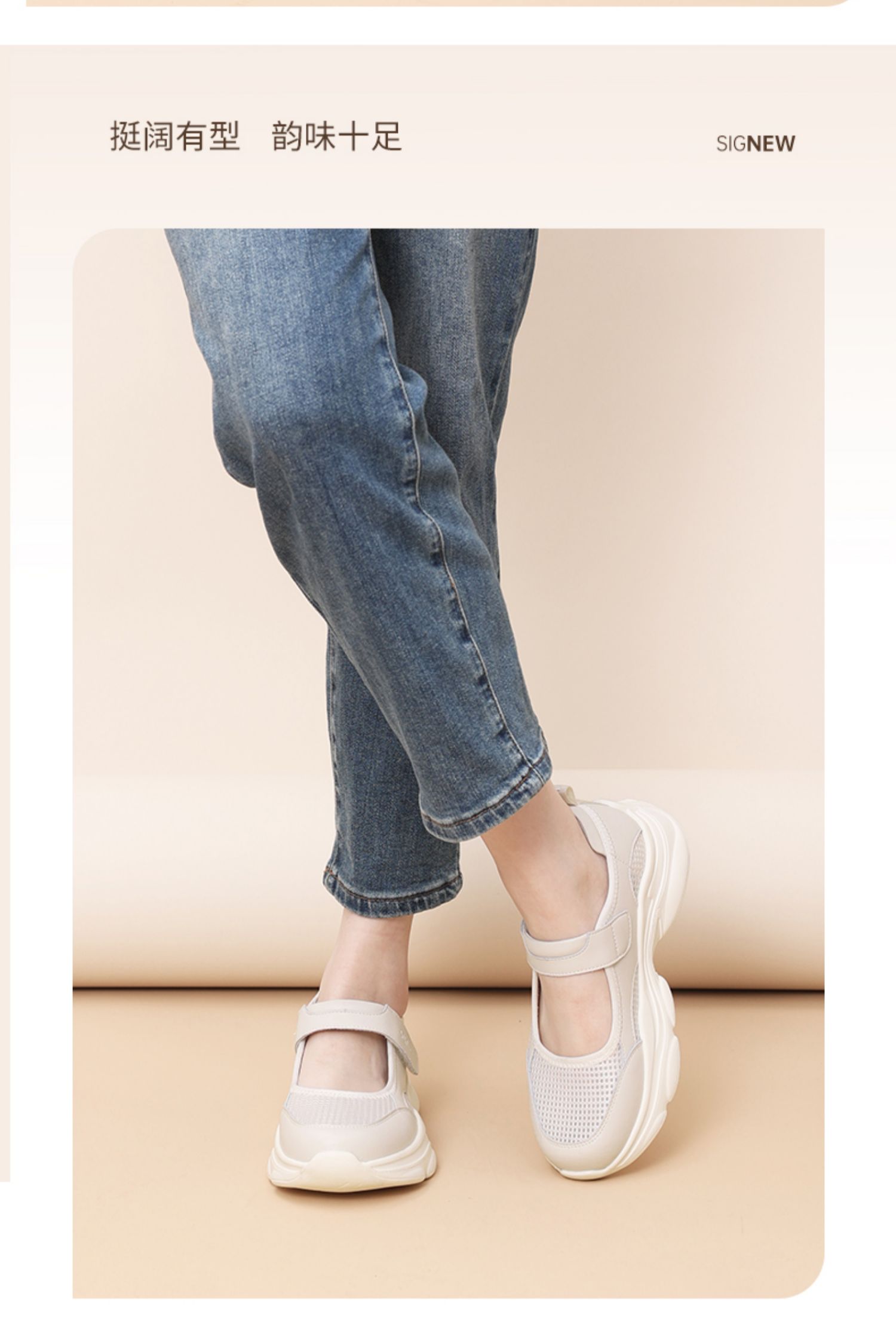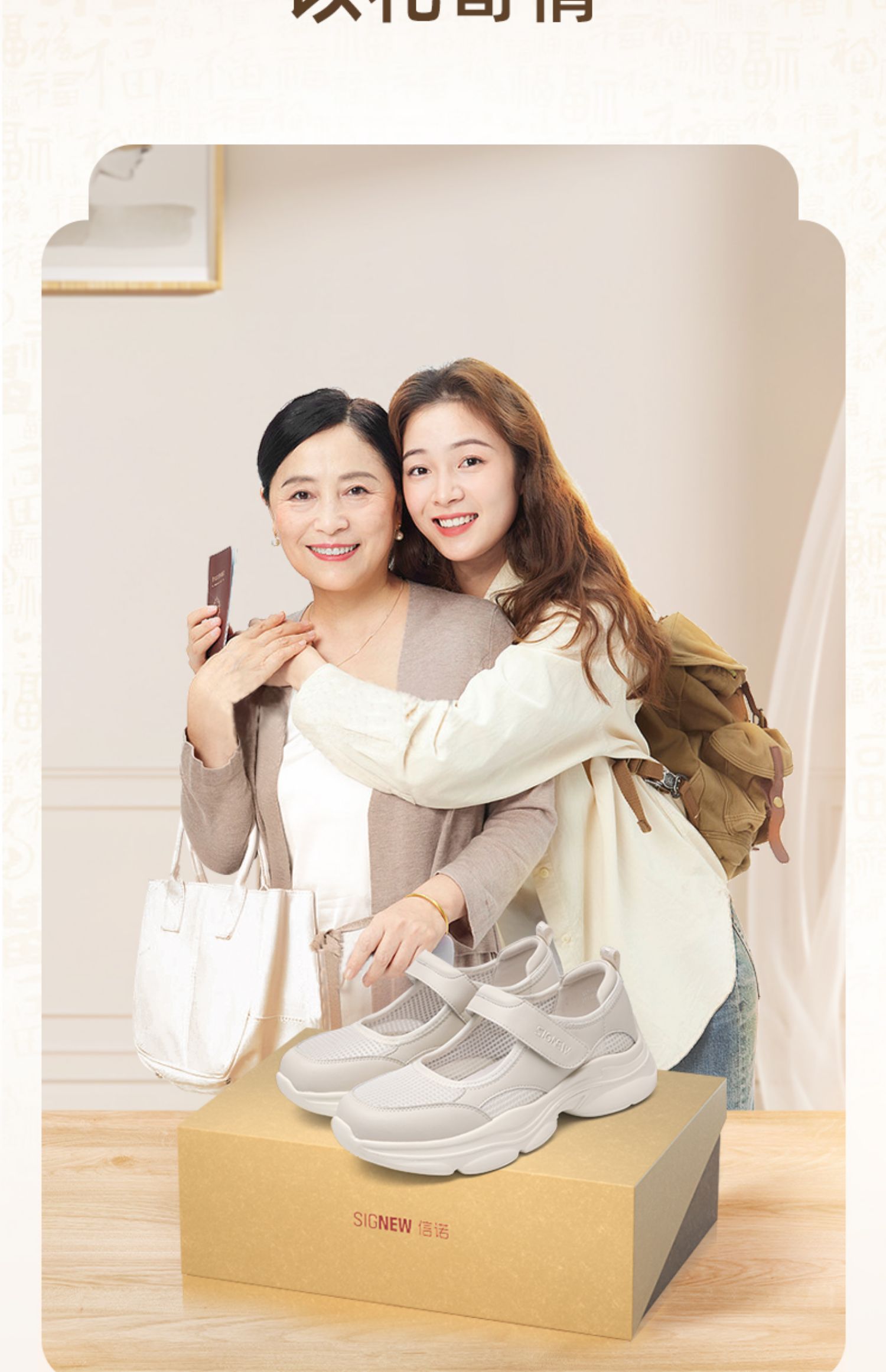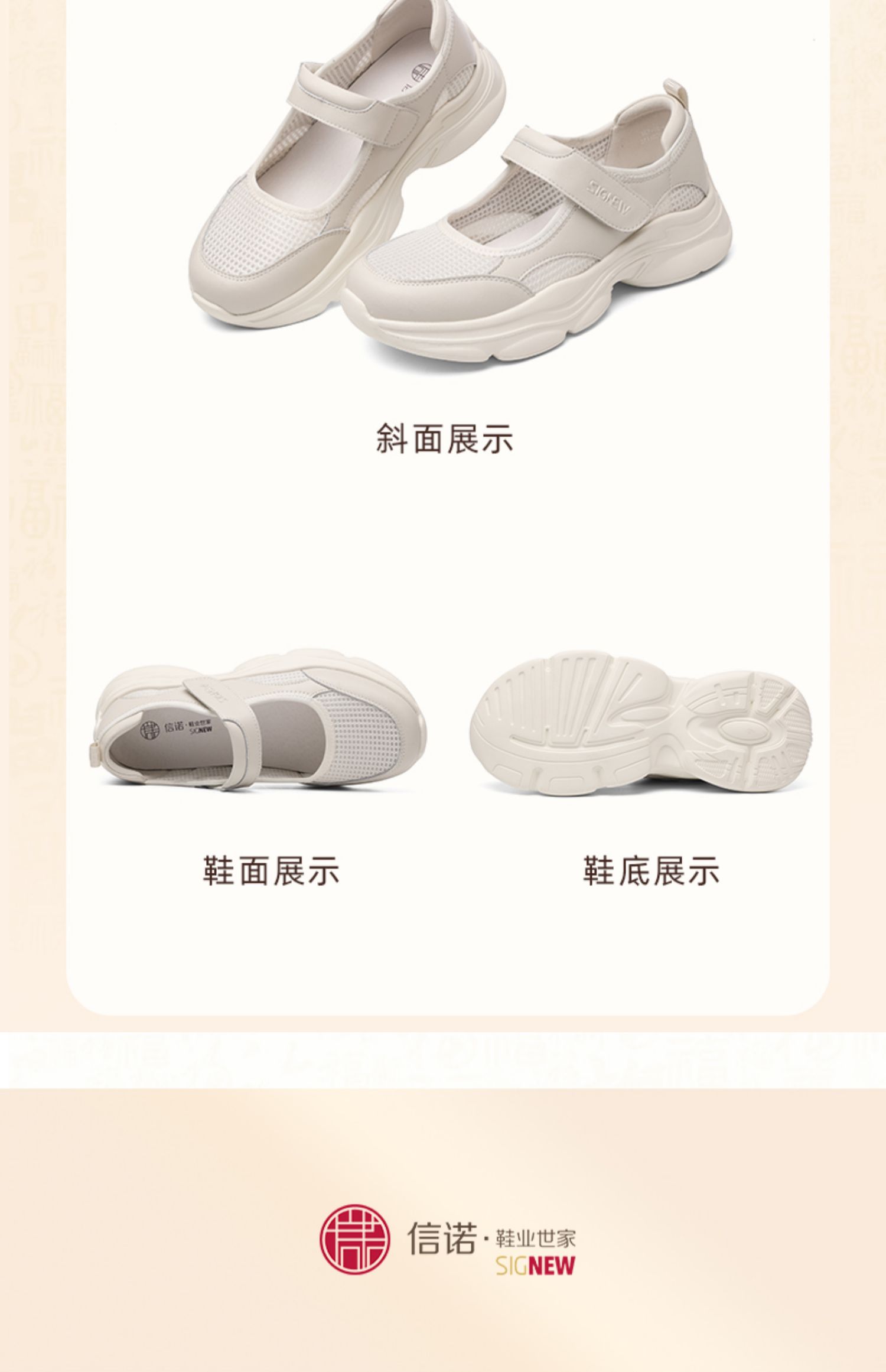 信诺舒适软底运动休闲鞋女2025春季新款网面透气单鞋厚底妈妈鞋子5C5020-6