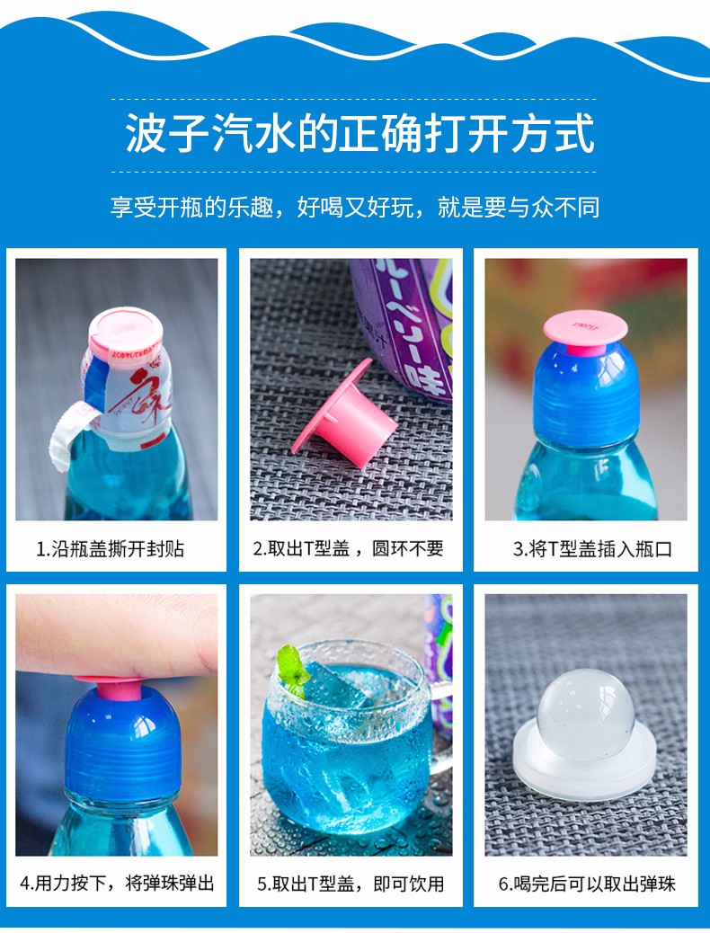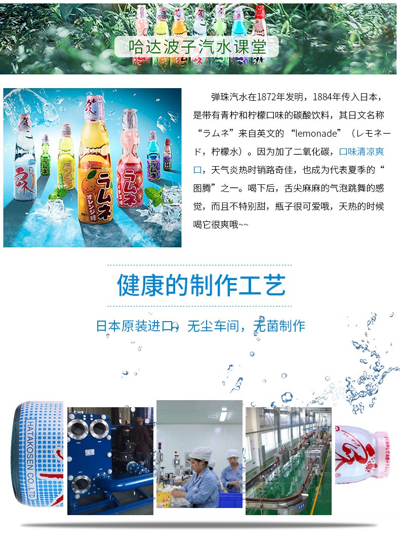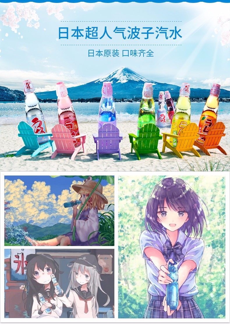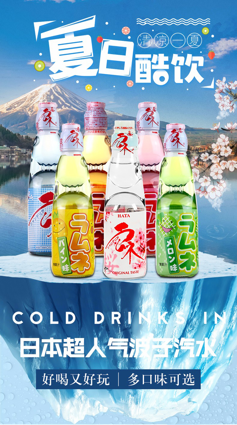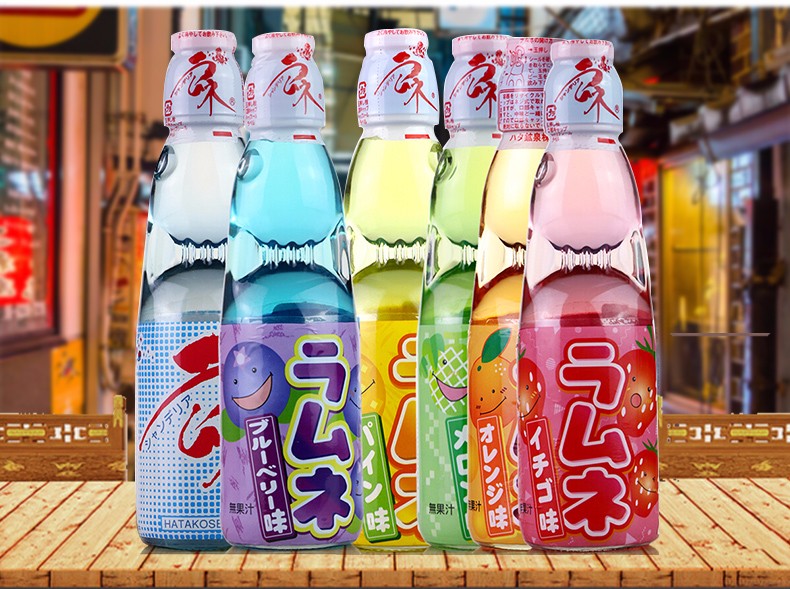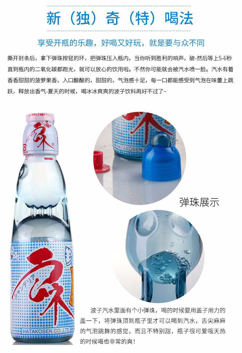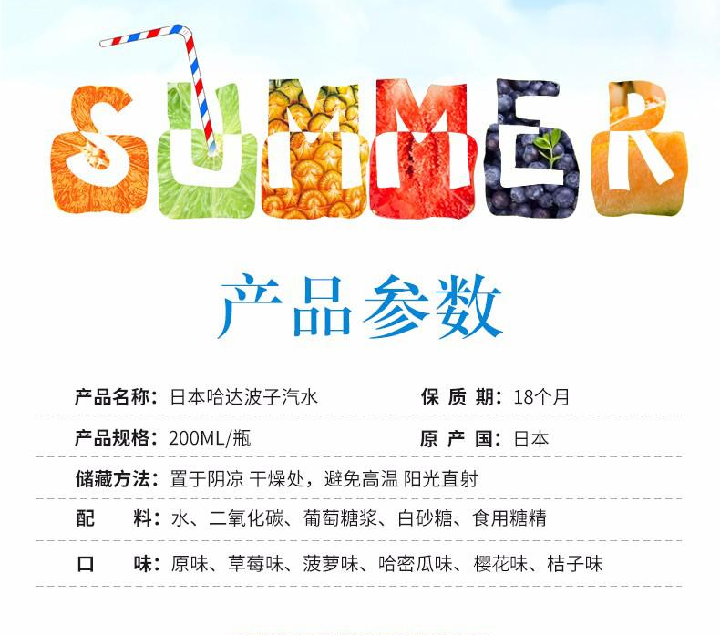 【中欧班列直供】日本进口汽水哈达波子爆弹珠汽水菠萝味草莓味樱花桔味哈密瓜原味菠萝味碳酸饮料200ml/瓶装