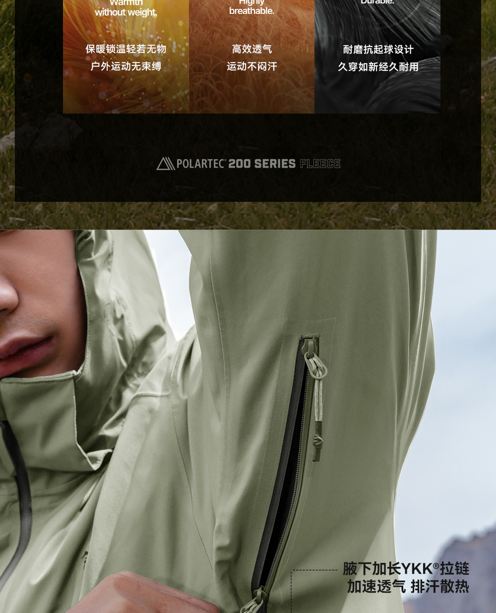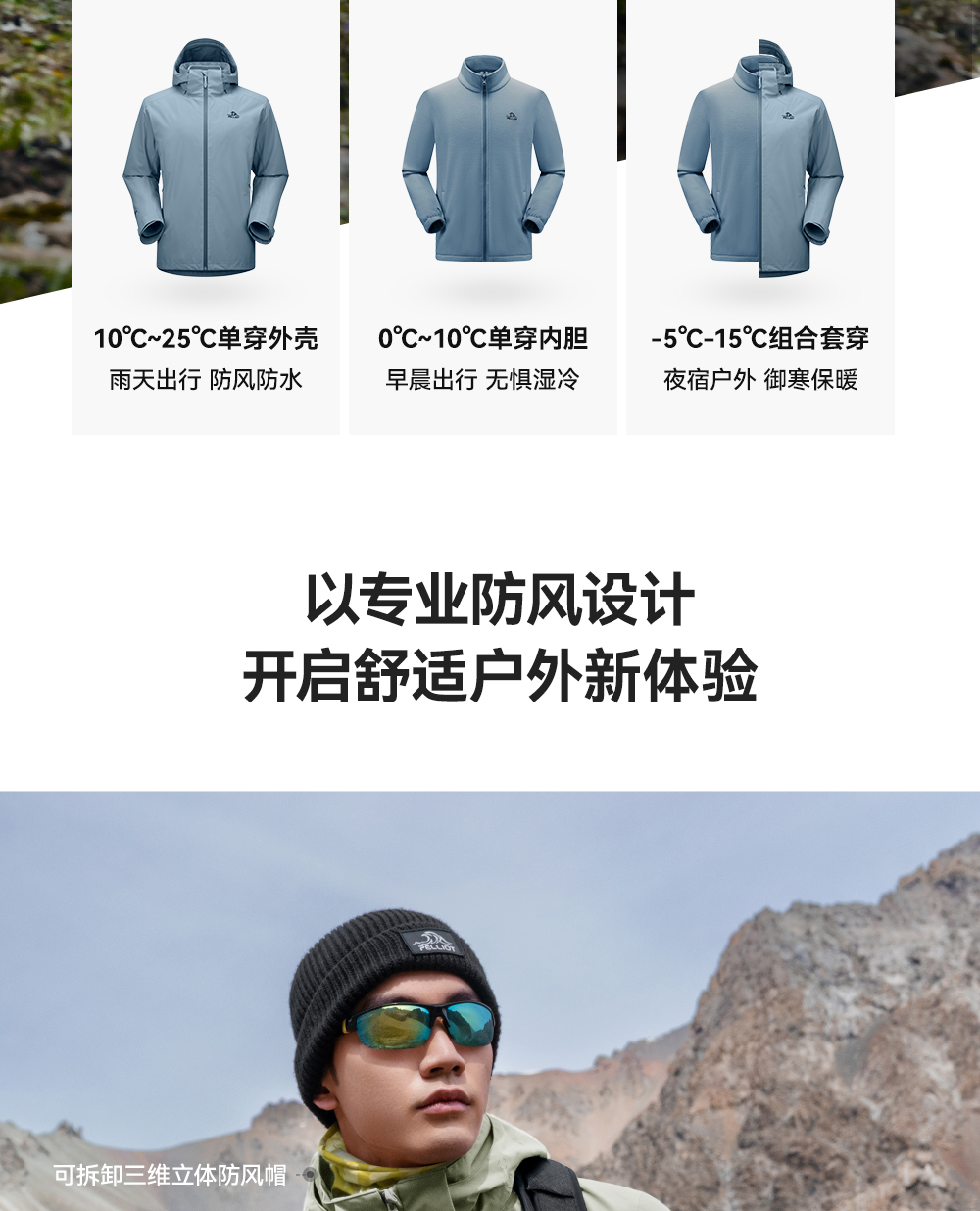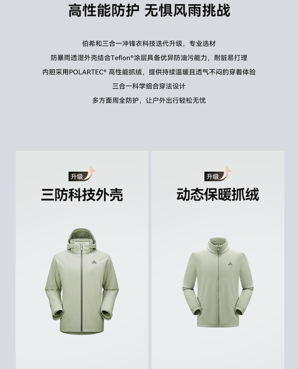 【成毅同款】伯希和山岩冲锋衣男款Polartec200户外三合一登山服