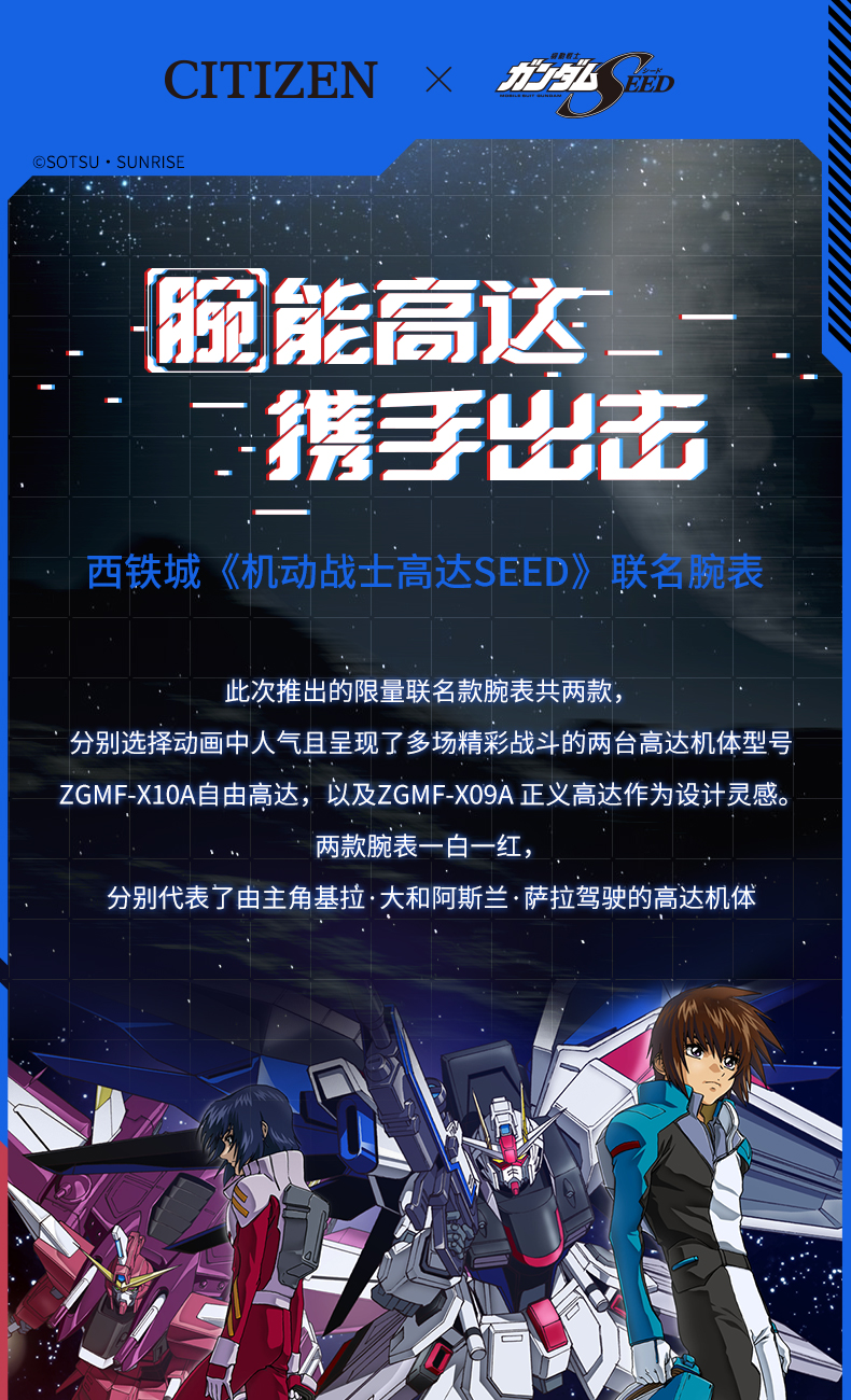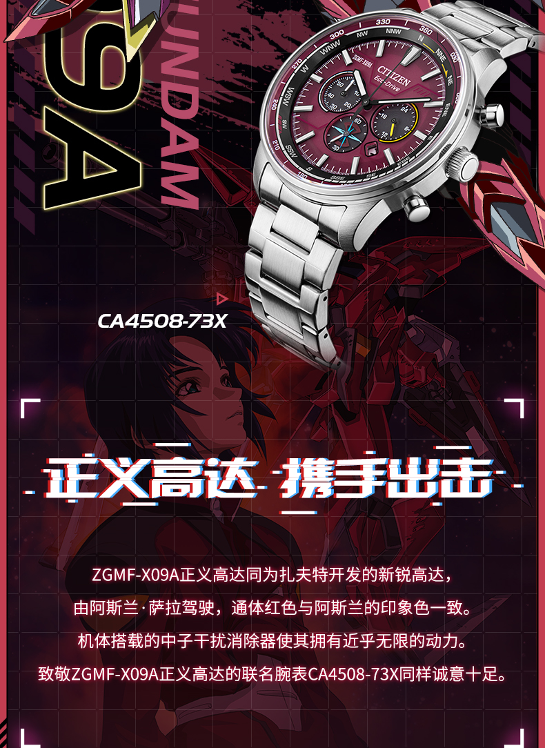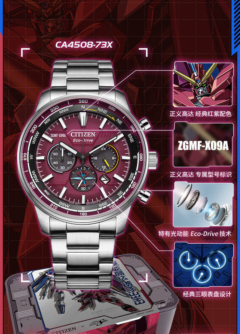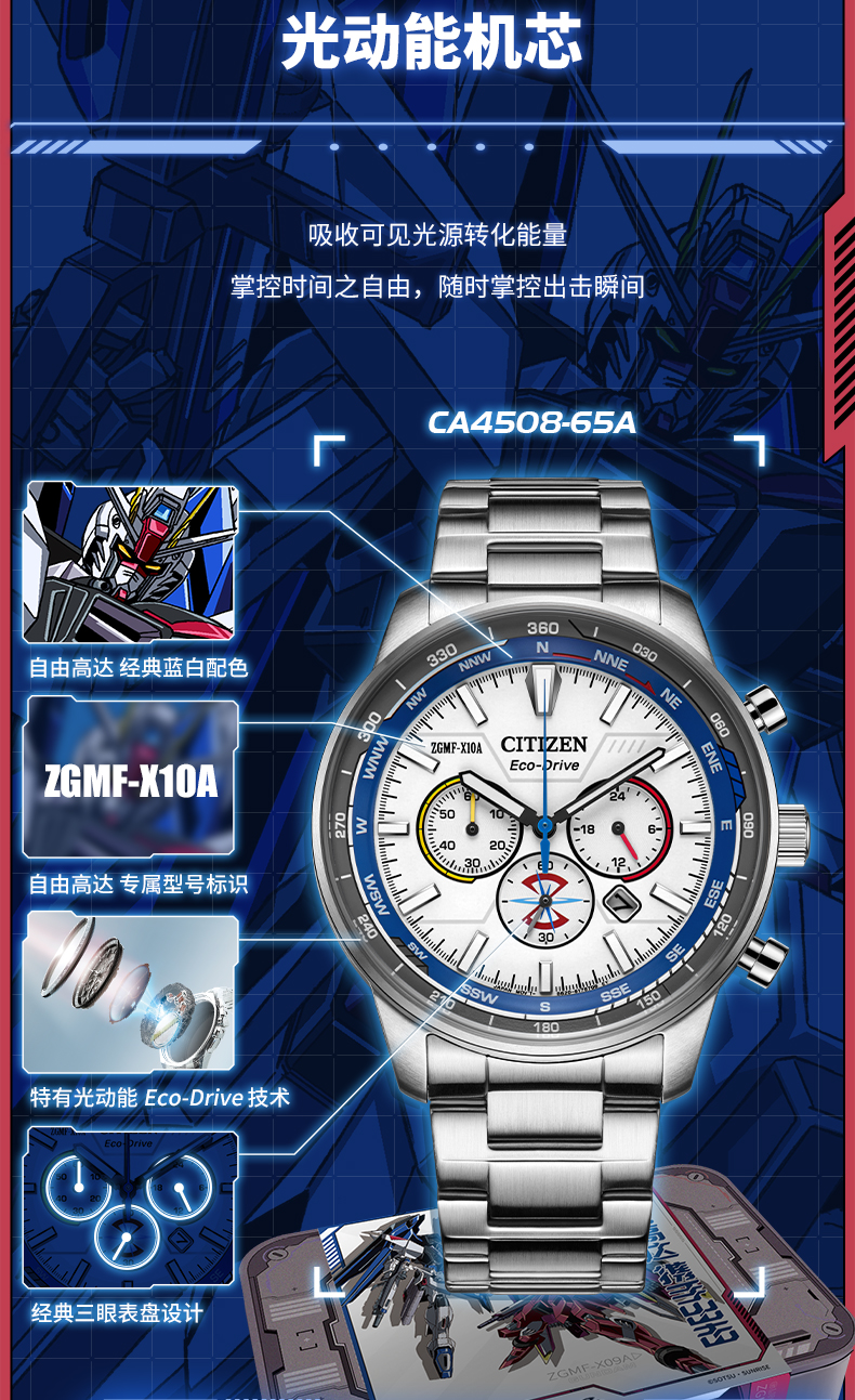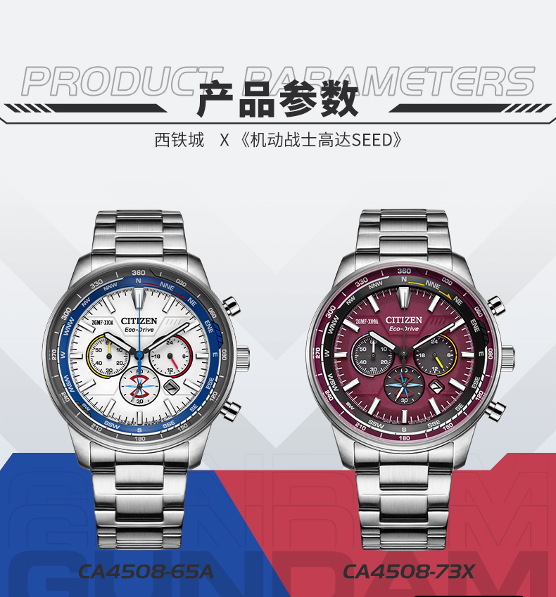 西铁城日本官方机动战士高达动漫联名款光动能手表男女CA4508-73X