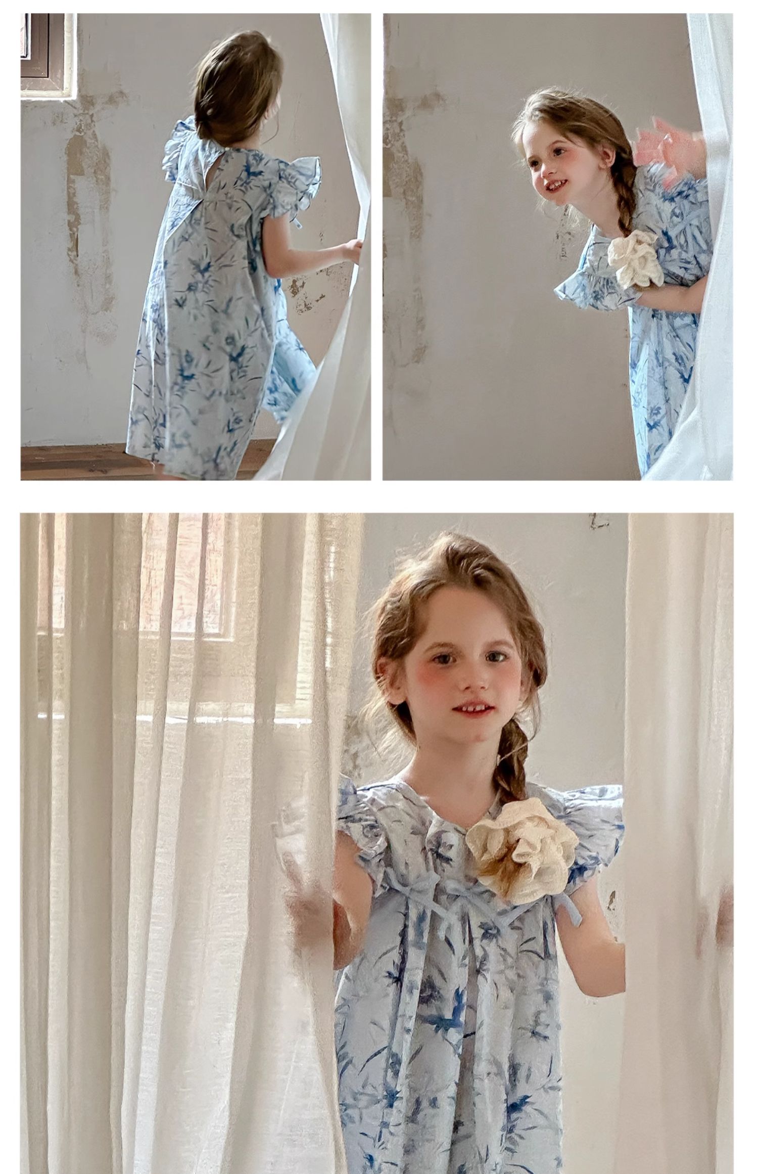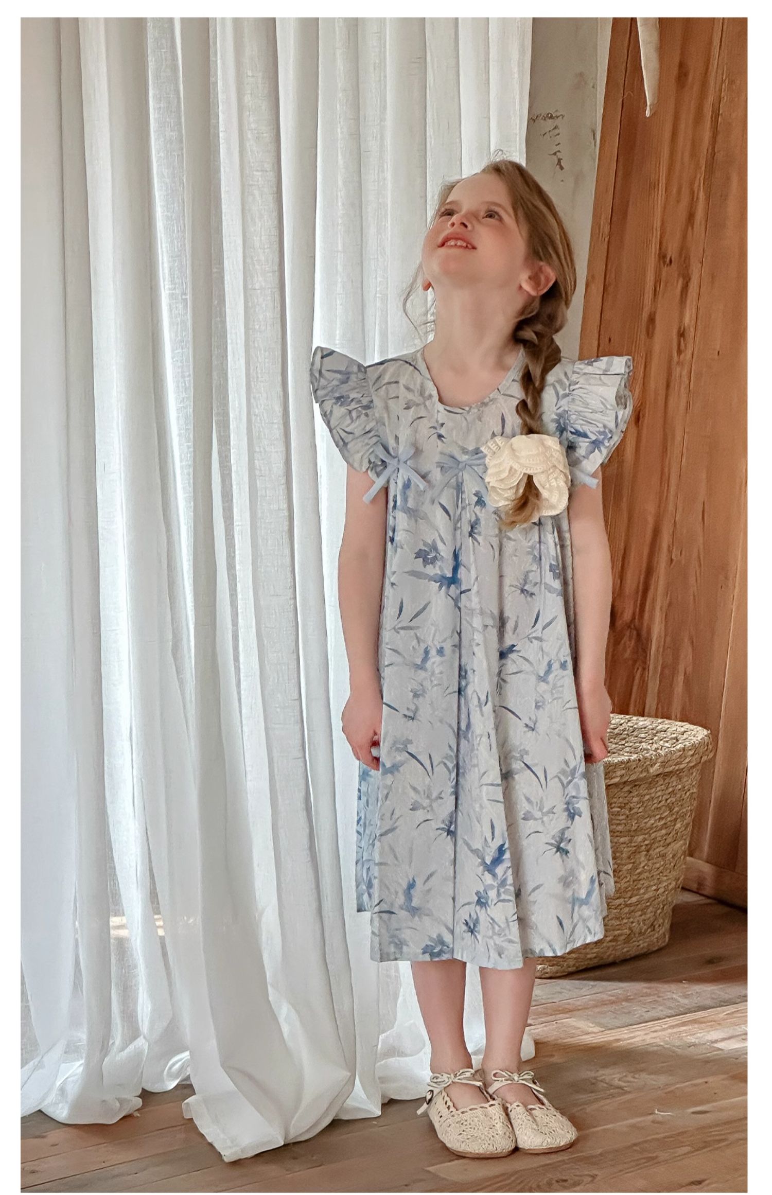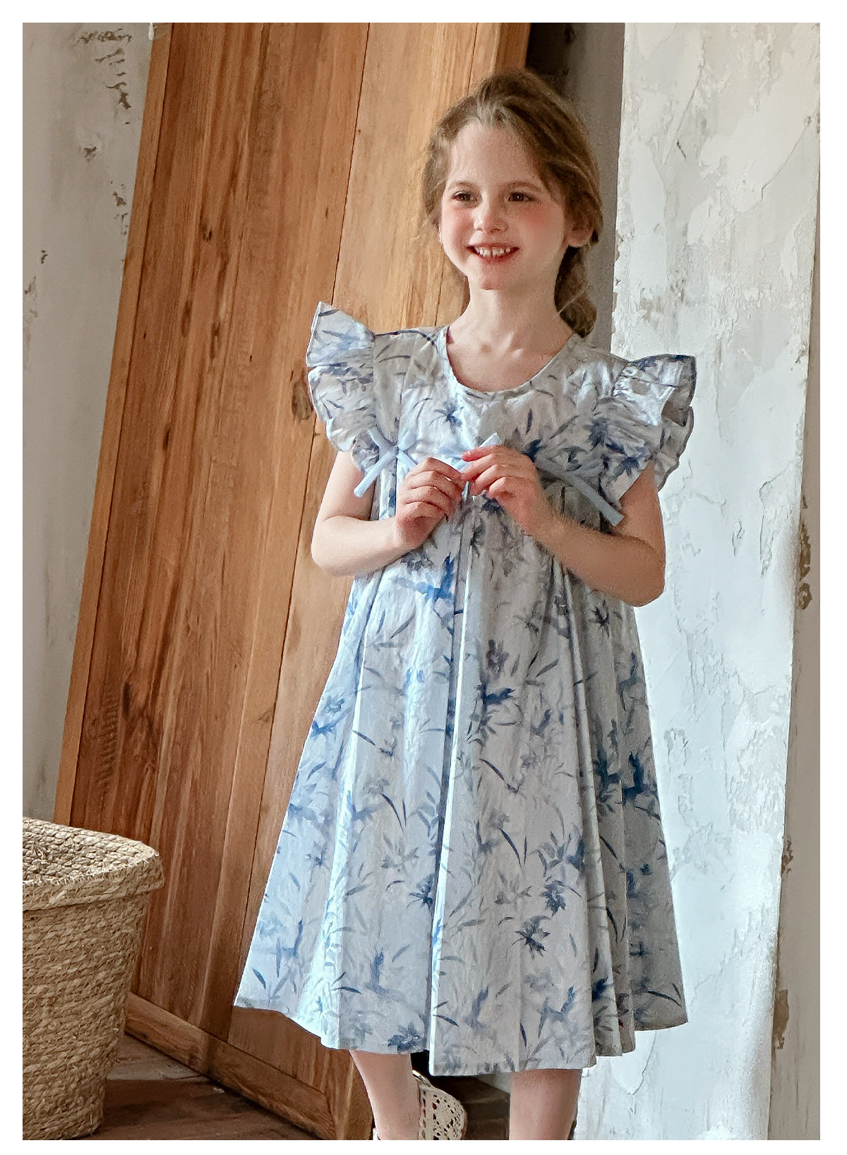 连衣裙法式小众甜美木耳边飞飞袖碎花衬衫女童2025春夏新款