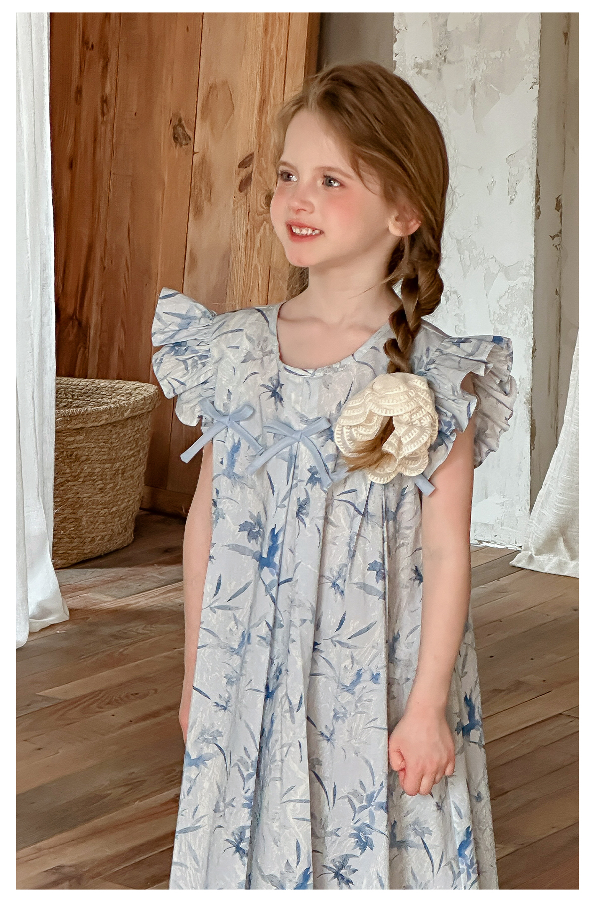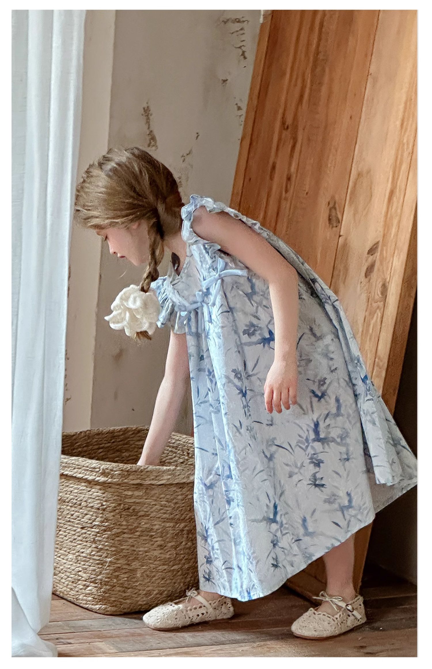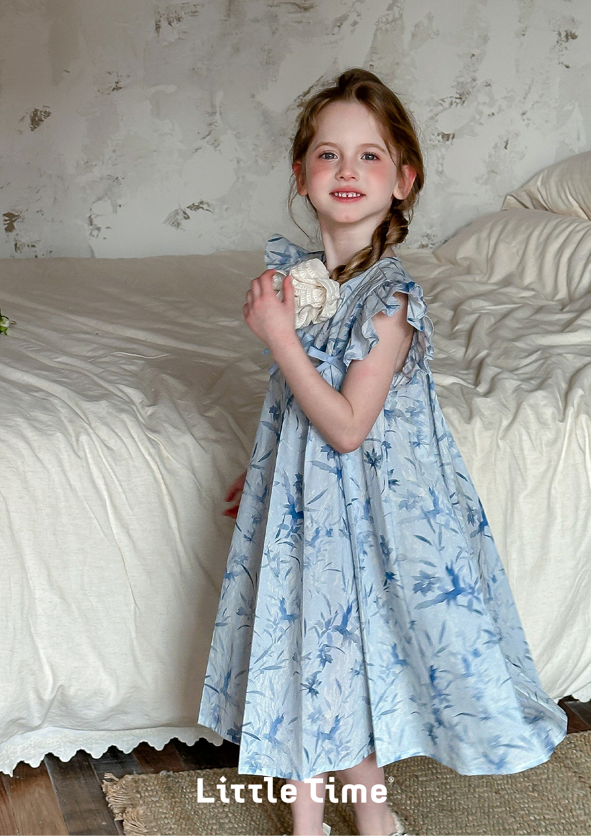连衣裙法式小众甜美木耳边飞飞袖碎花衬衫女童2025春夏新款