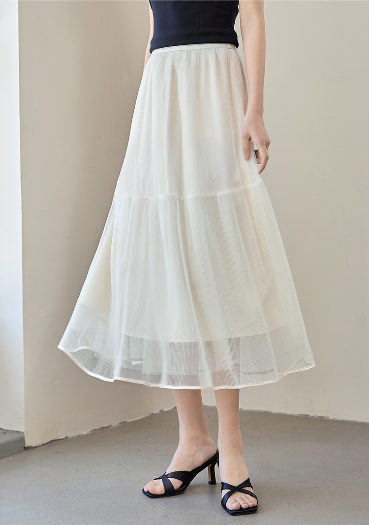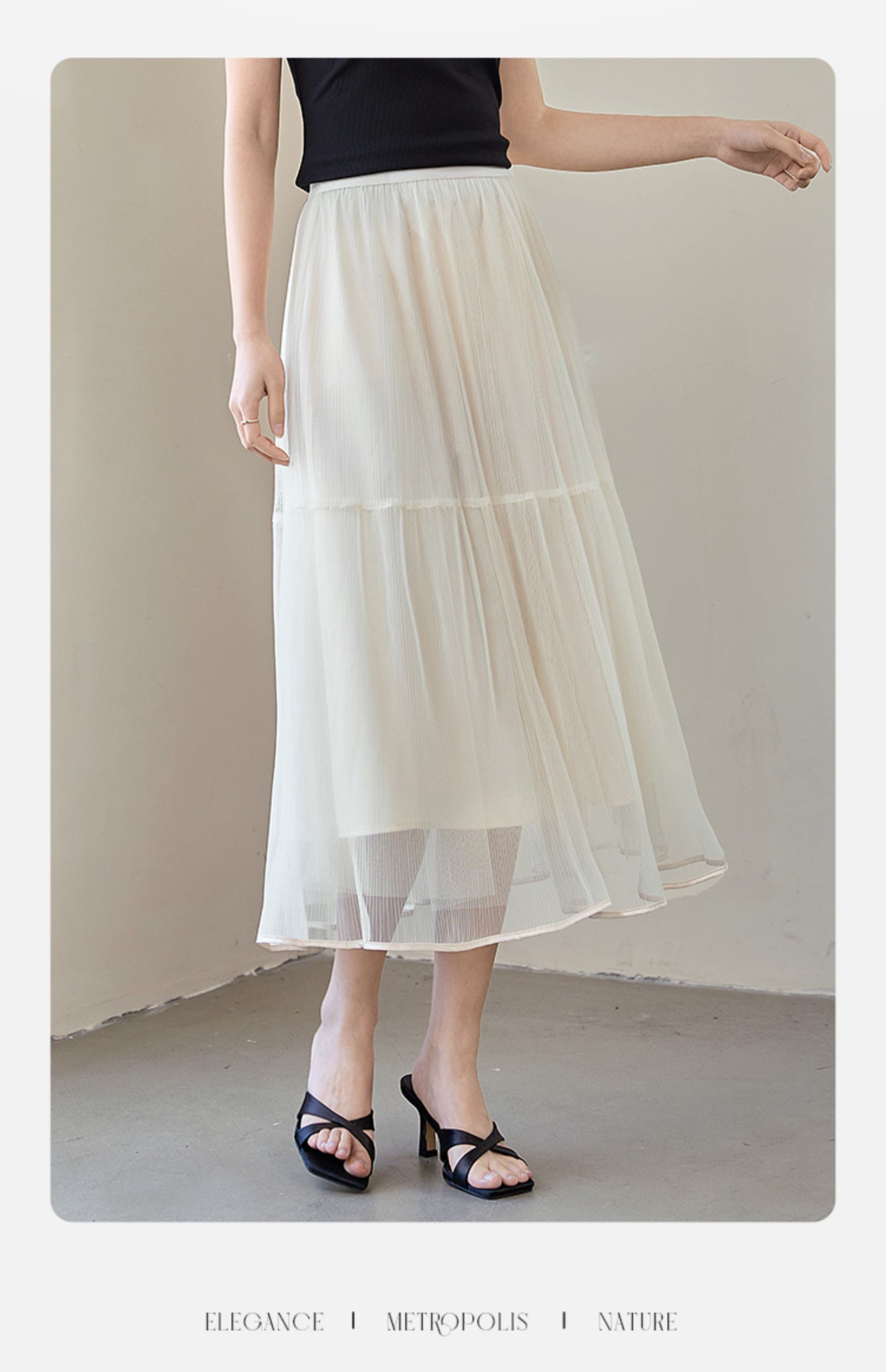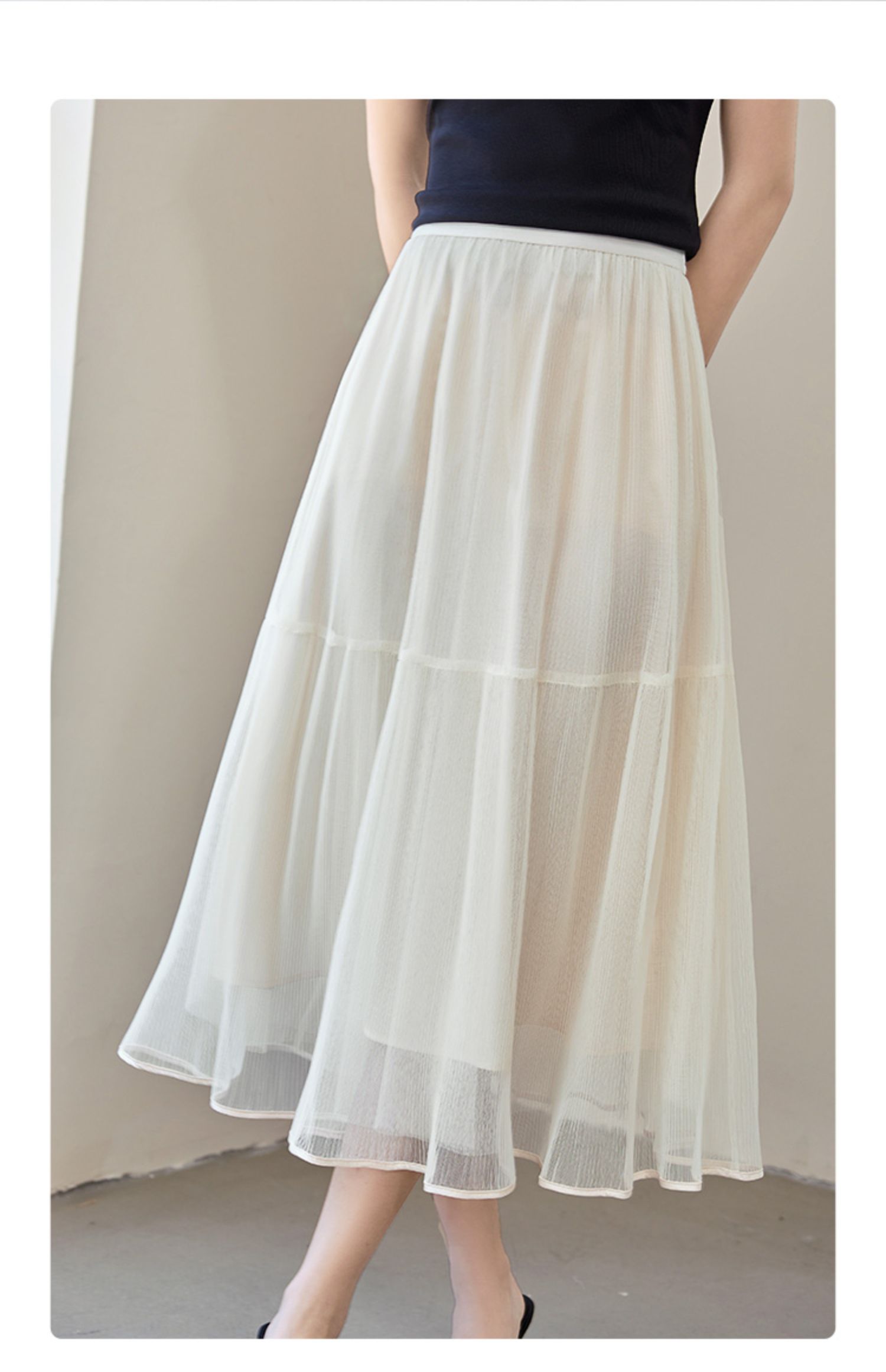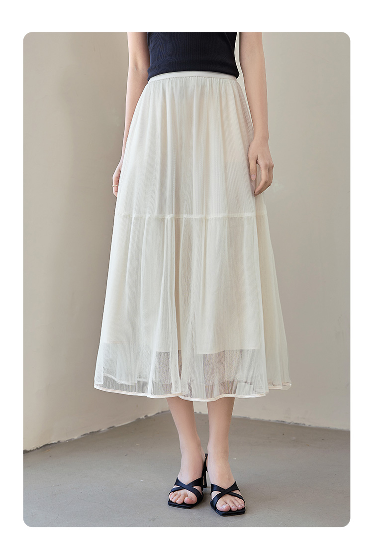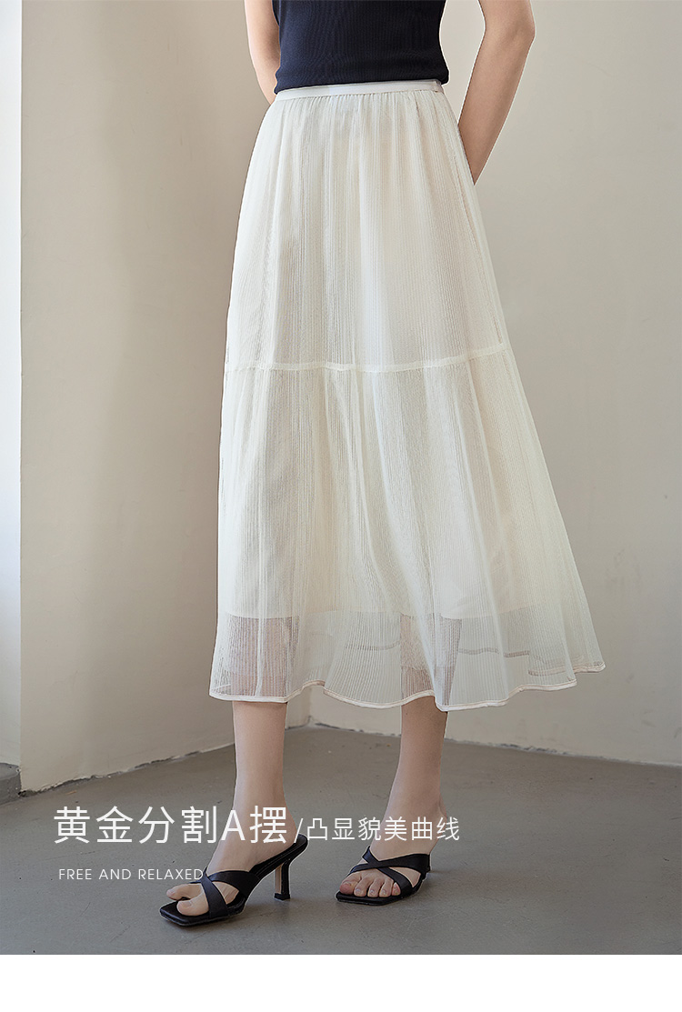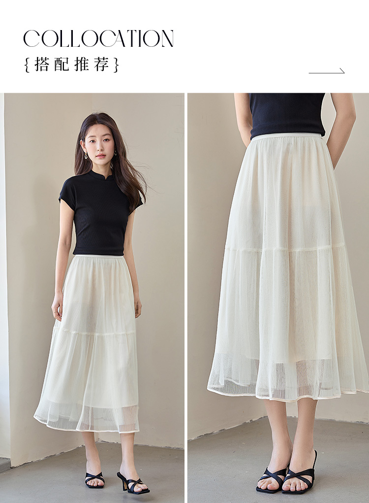 【五折购】熙世界白色网纱蛋糕裙半身裙2025夏季新款仙女纱裙a字过膝长裙