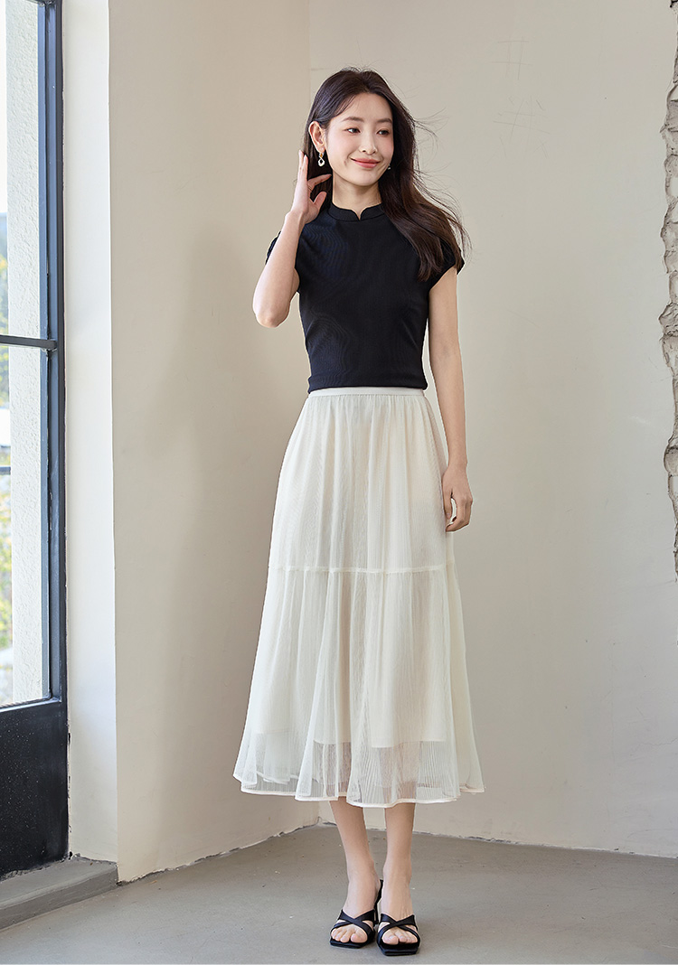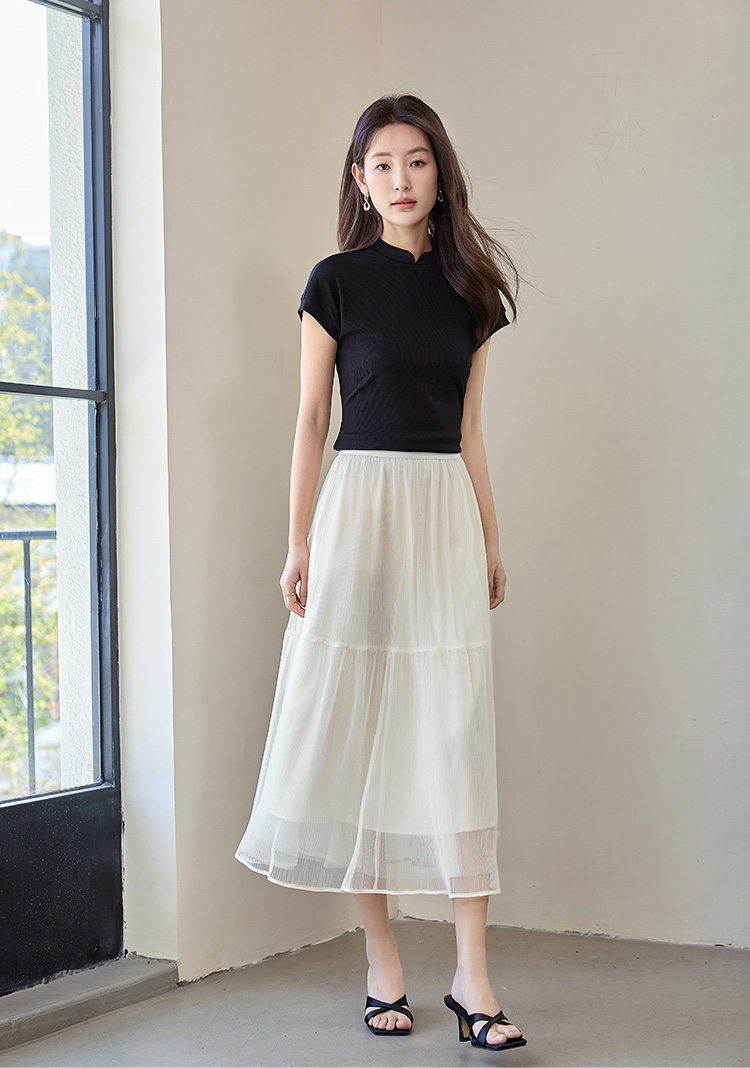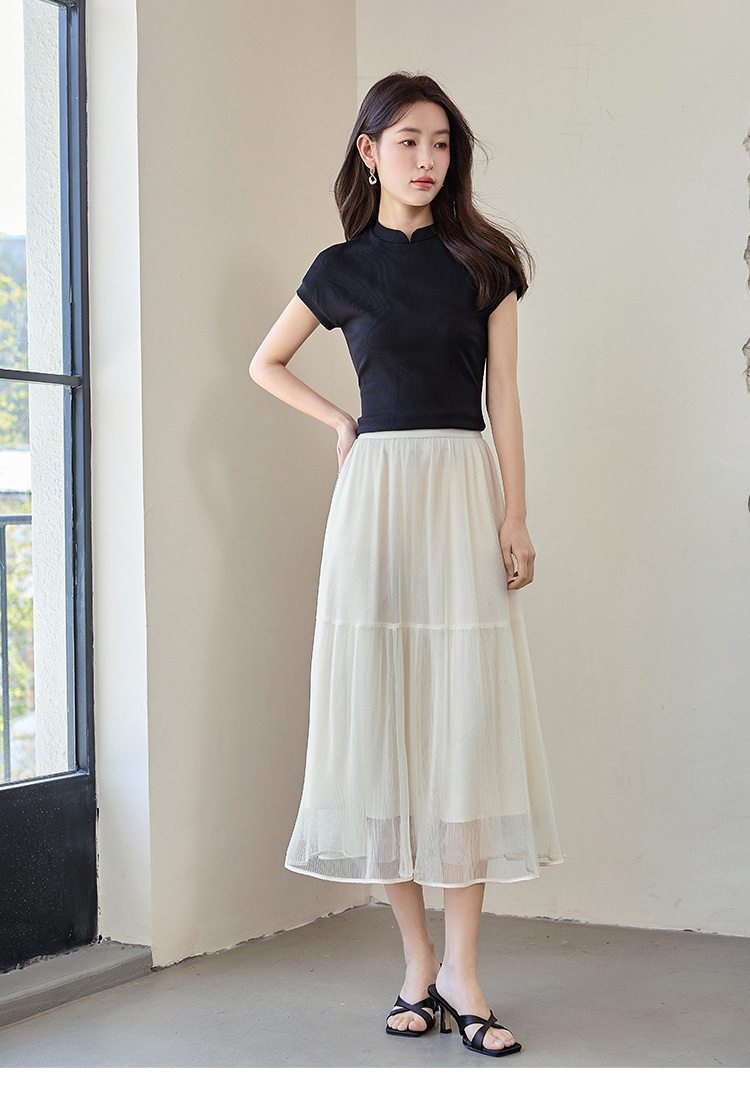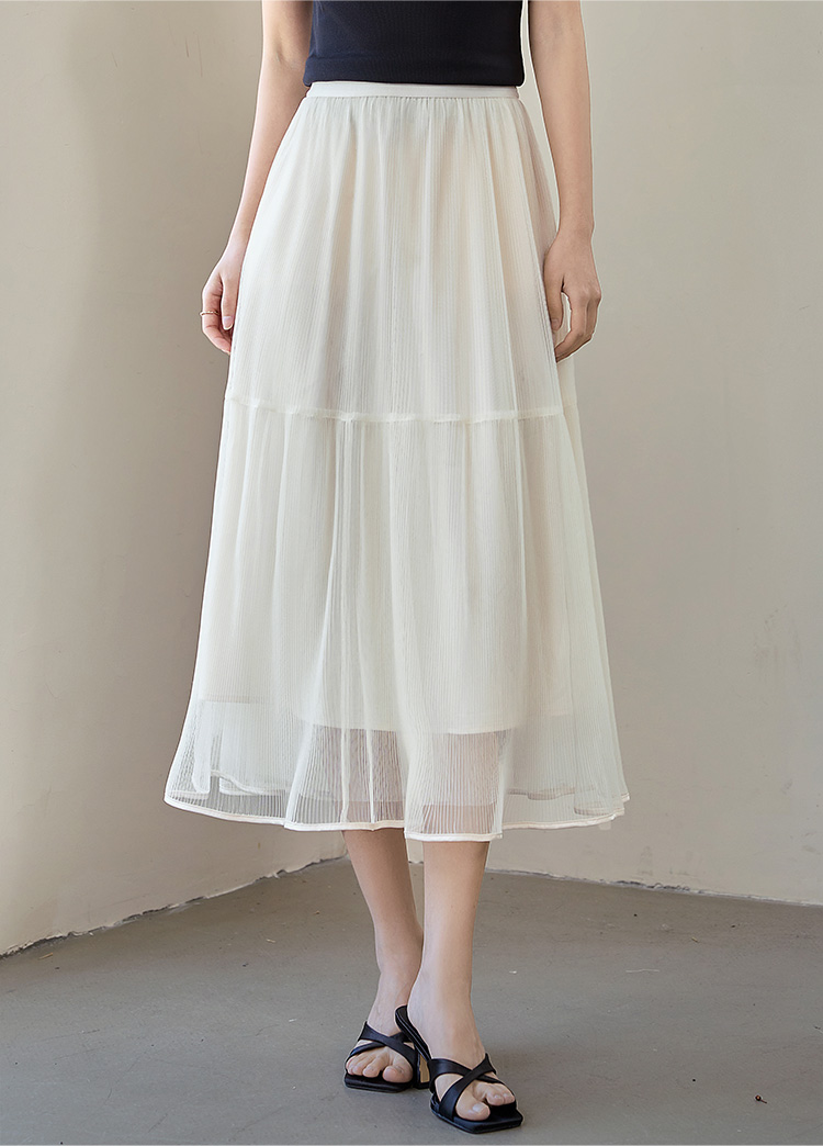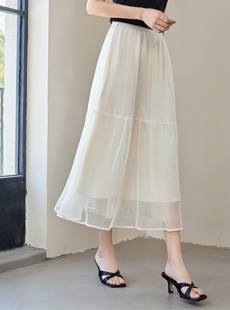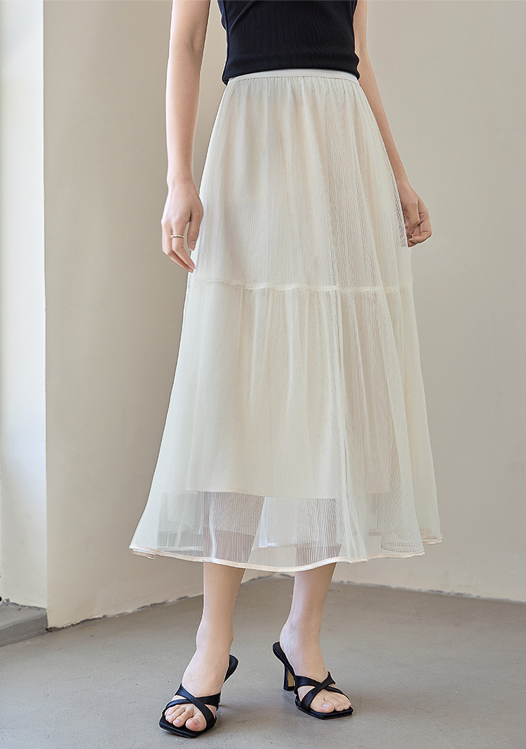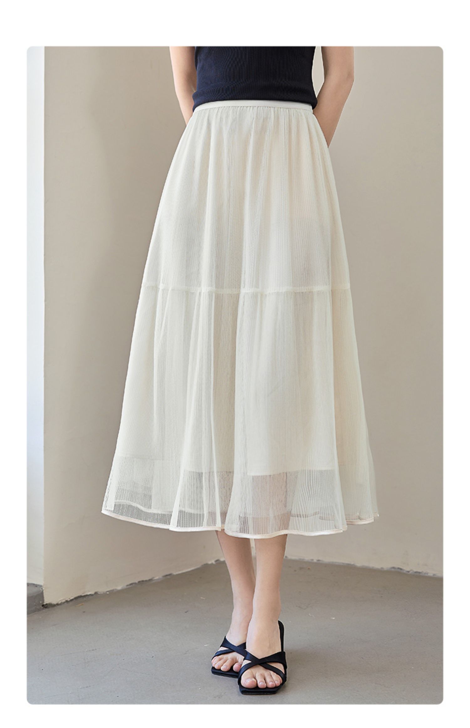 【五折购】熙世界白色网纱蛋糕裙半身裙2025夏季新款仙女纱裙a字过膝长裙