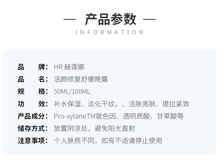 【保税仓直发】HR 赫莲娜 活颜修护舒缓黑绷带面霜100ml/50ml 晚霜(100ml效期27年/50ml效期26年12月)