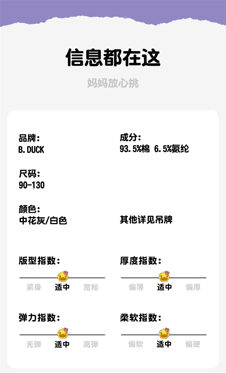 B.DUCK小黄鸭童装春秋打底长裤90-130 FF1558002