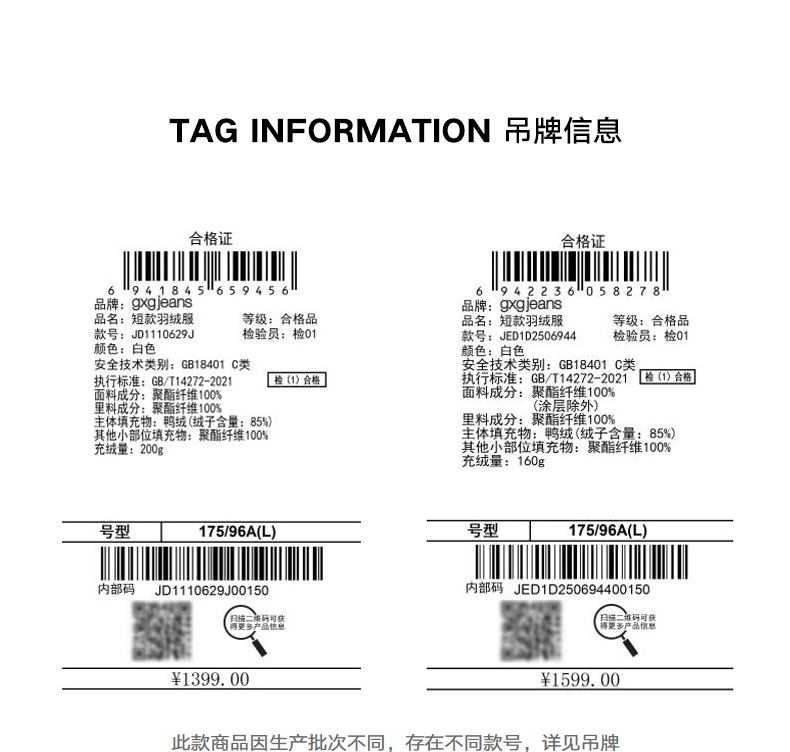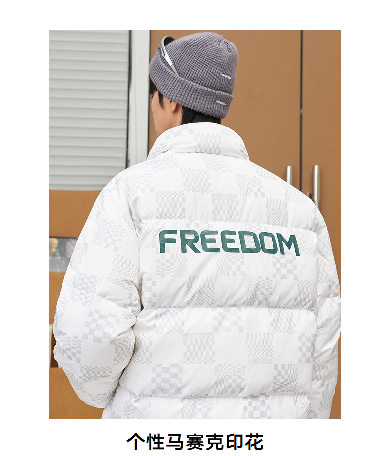 gxgjeans男装冬季羽绒服撞色字母印花短款羽绒服男