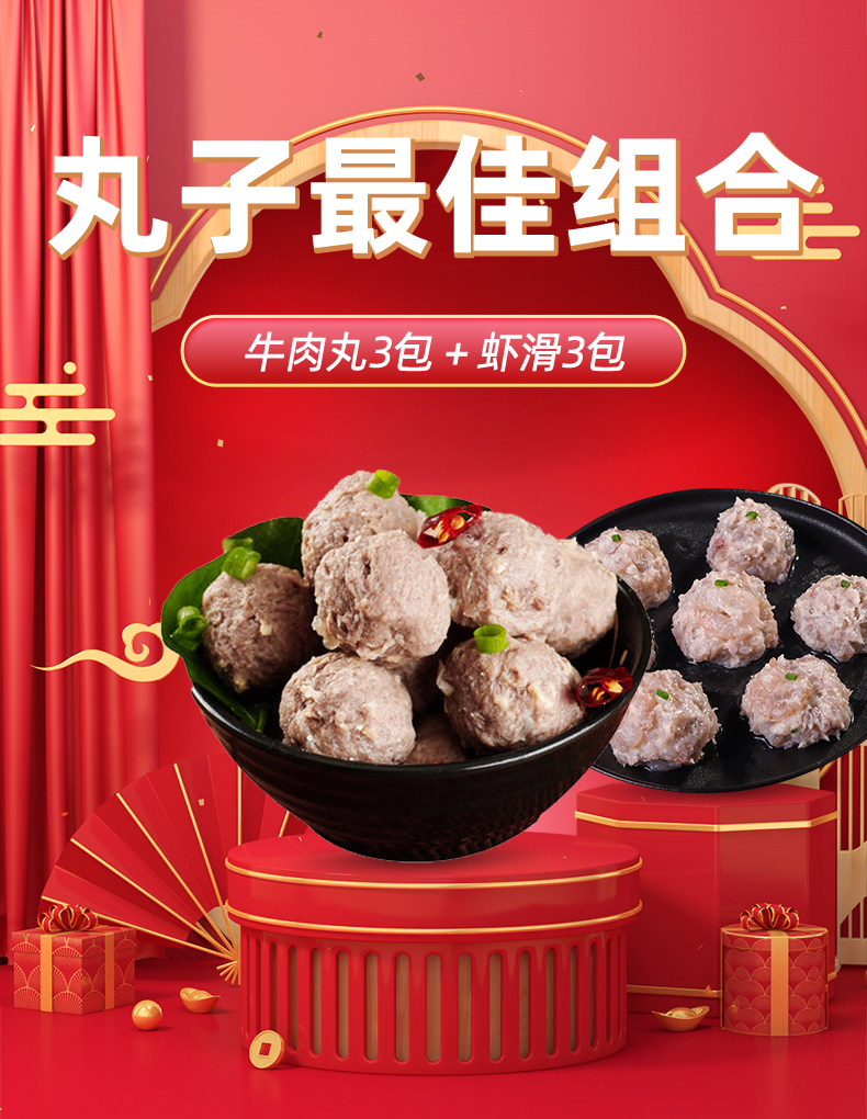 丸子组合,3包潮汕牛丸+3包虾滑150g