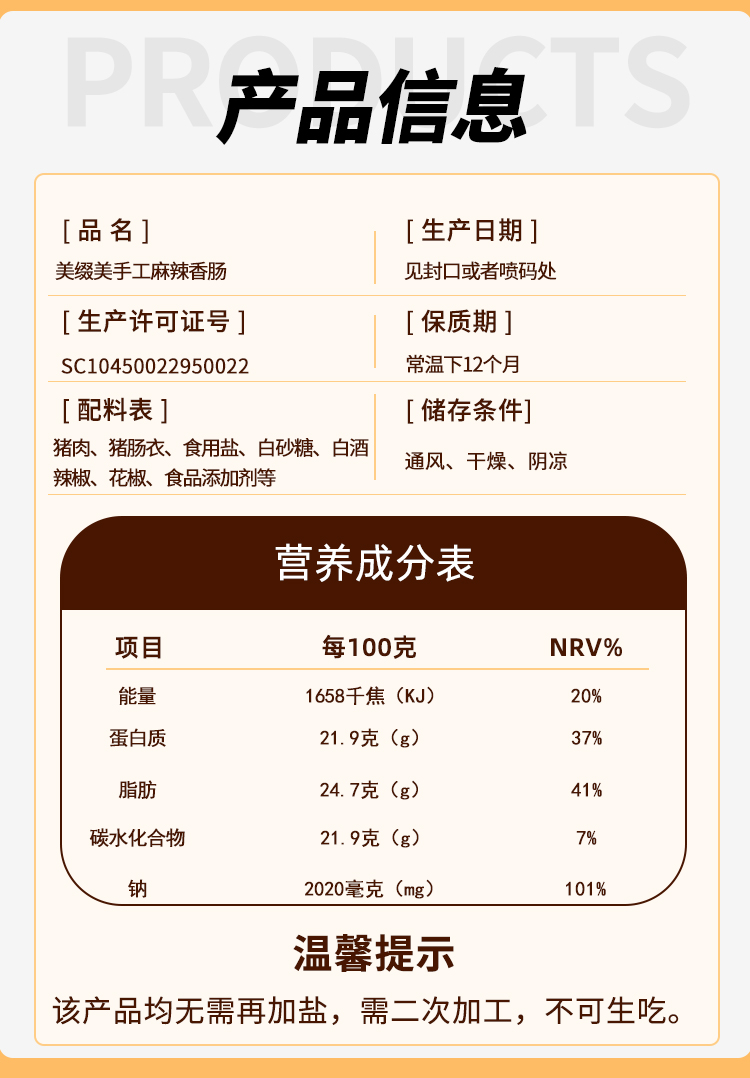 美缀美 国风系列 麻辣香肠 400g 地标产品 非遗工艺 农家土猪