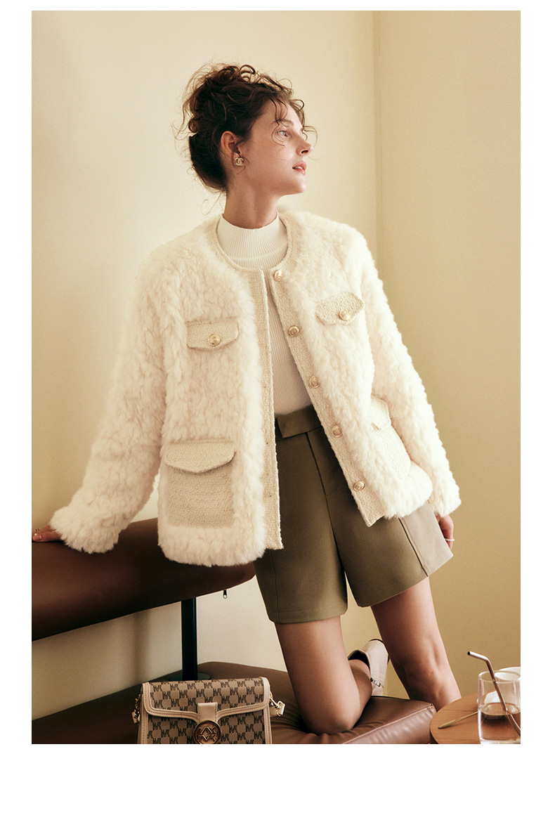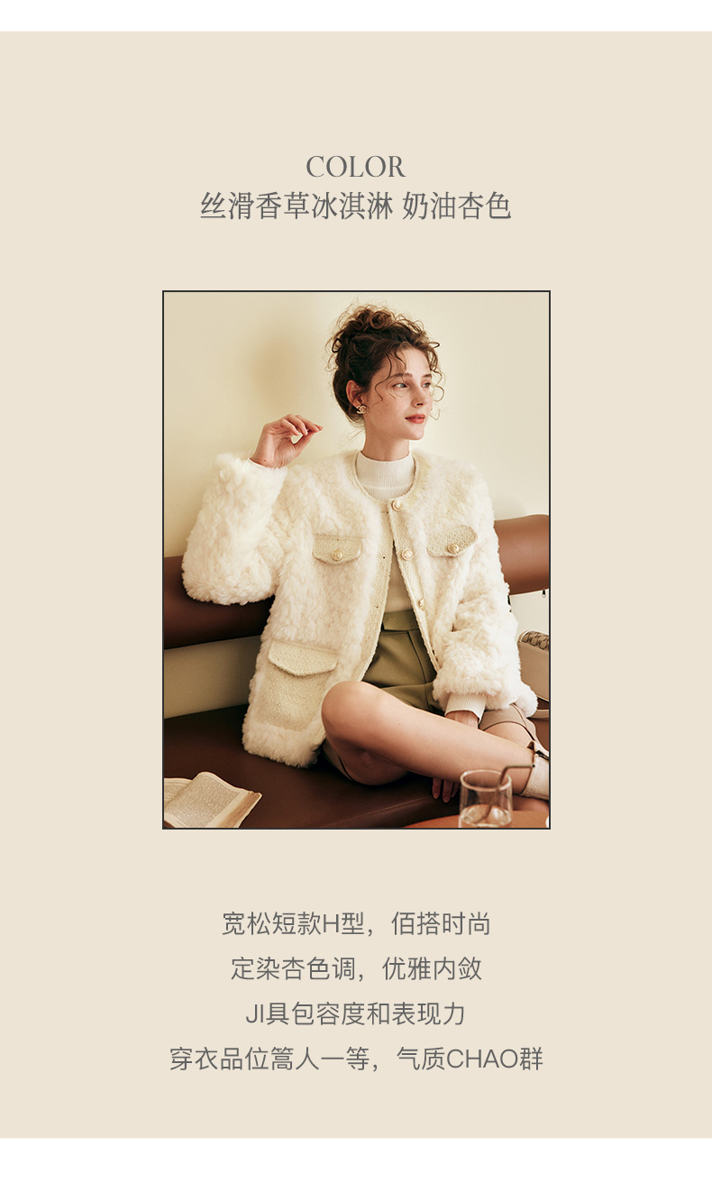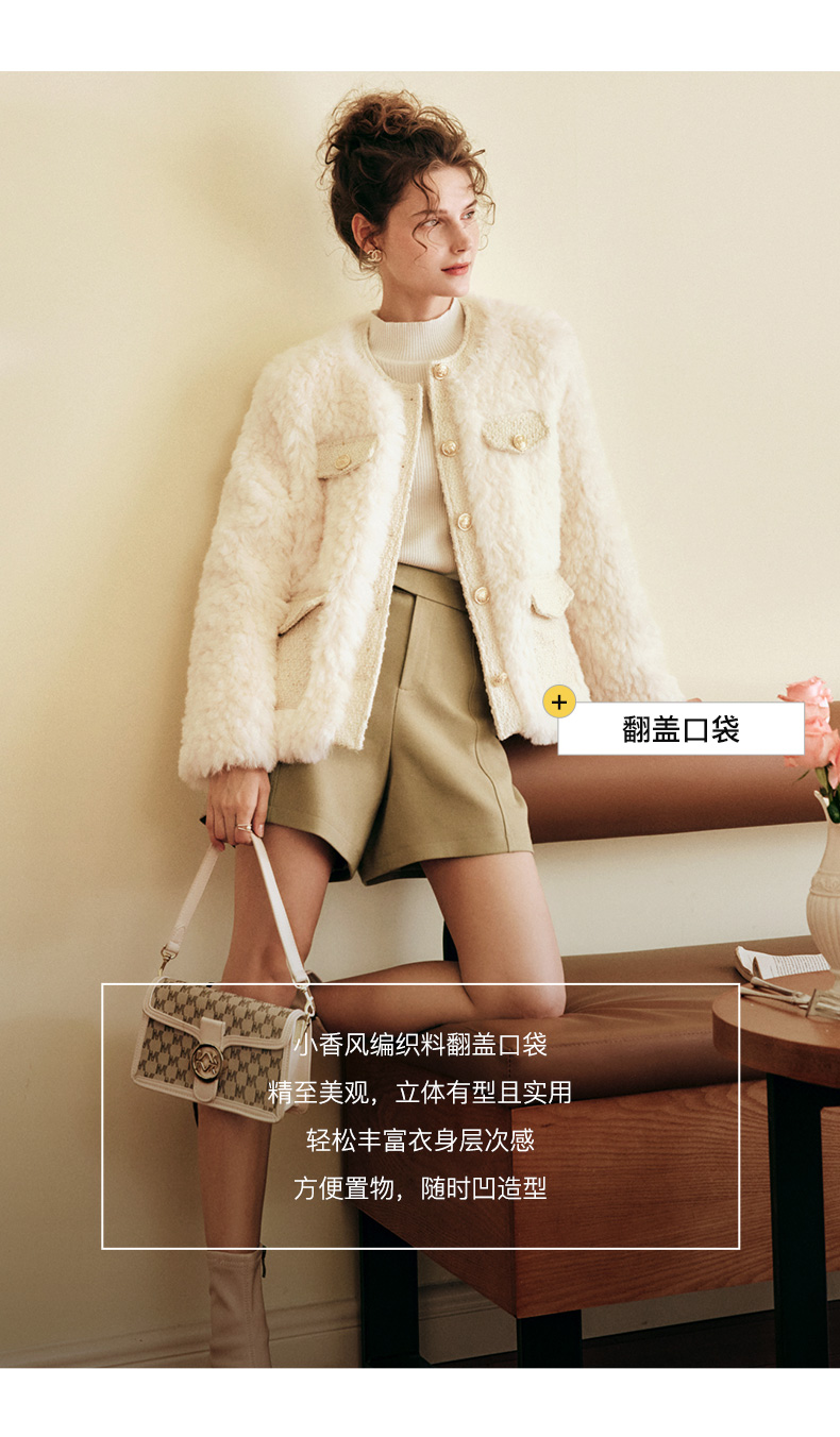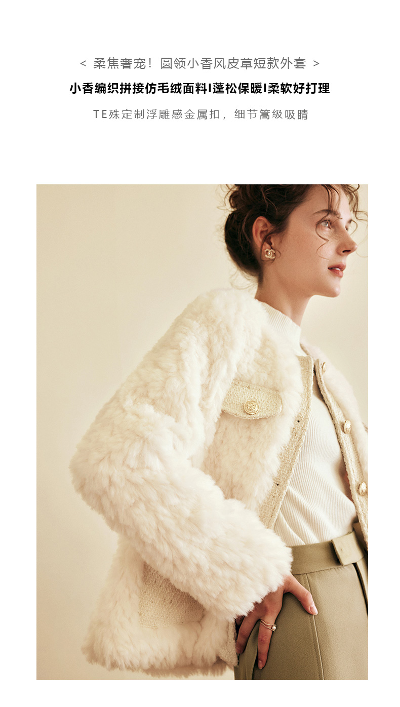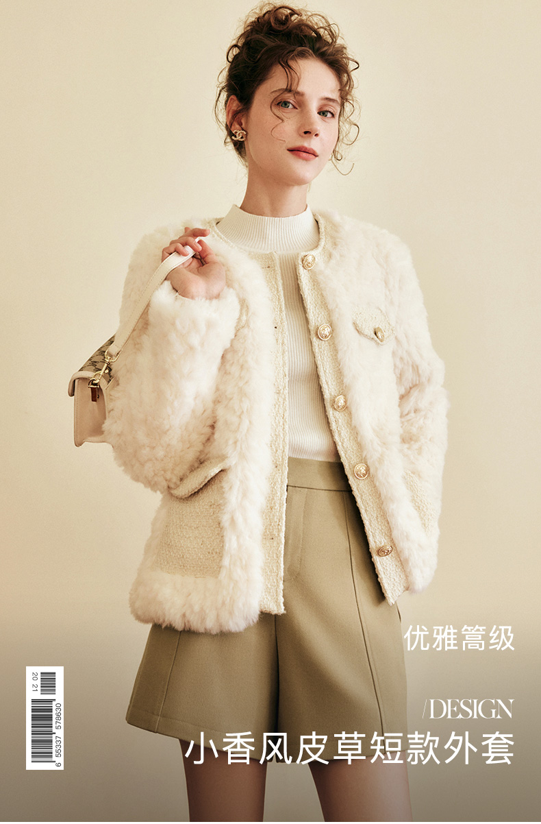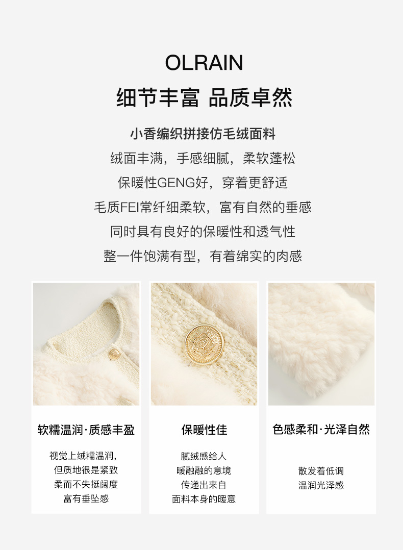 OLrain欧芮儿法式小香风皮草外套女秋冬2022年新款名媛风短款大衣