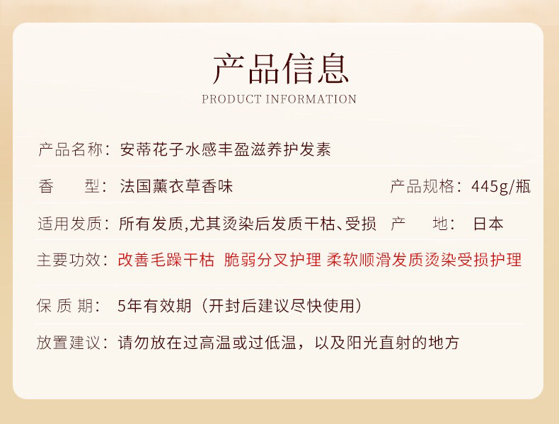 日本&honey安蒂花子 护发素蜂蜜滋养445ml