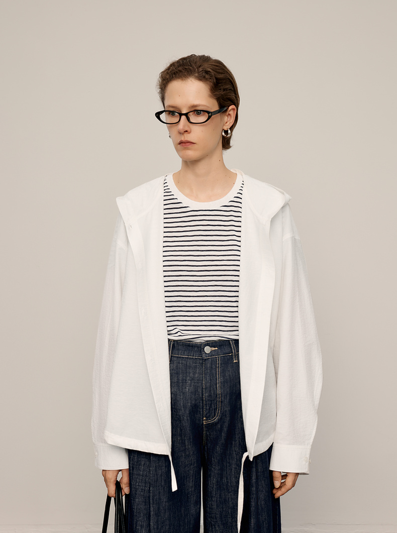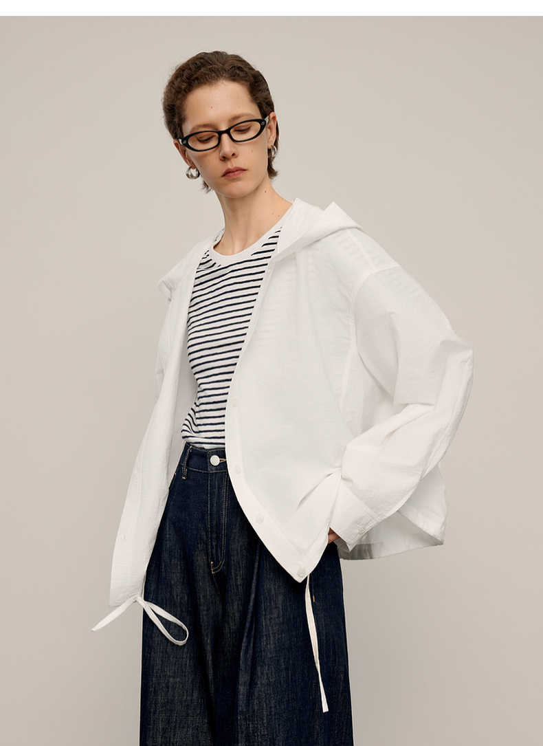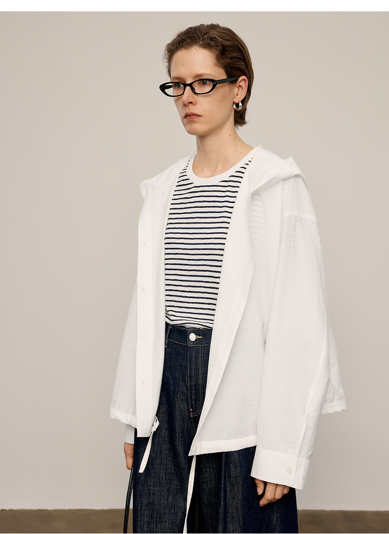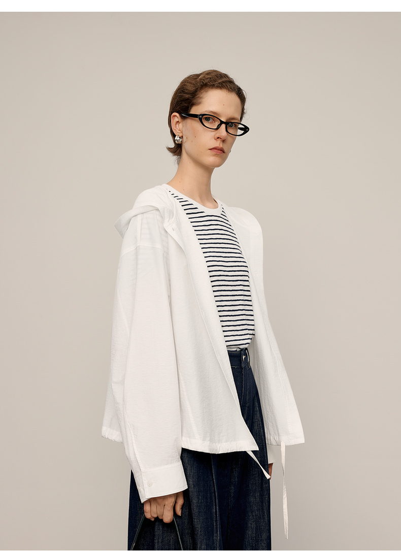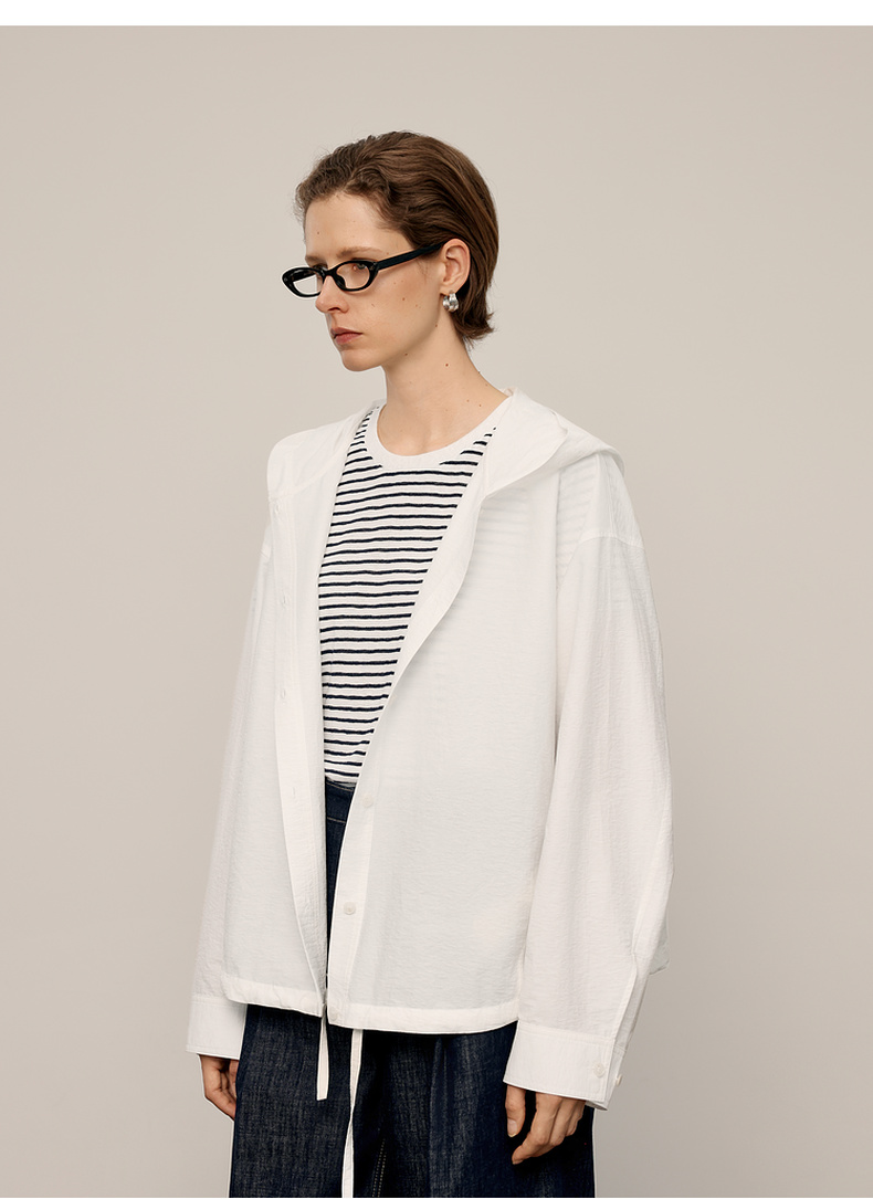 【商场同款】麦檬春秋柔软长绒棉连帽极简衬衫5G8122541Q