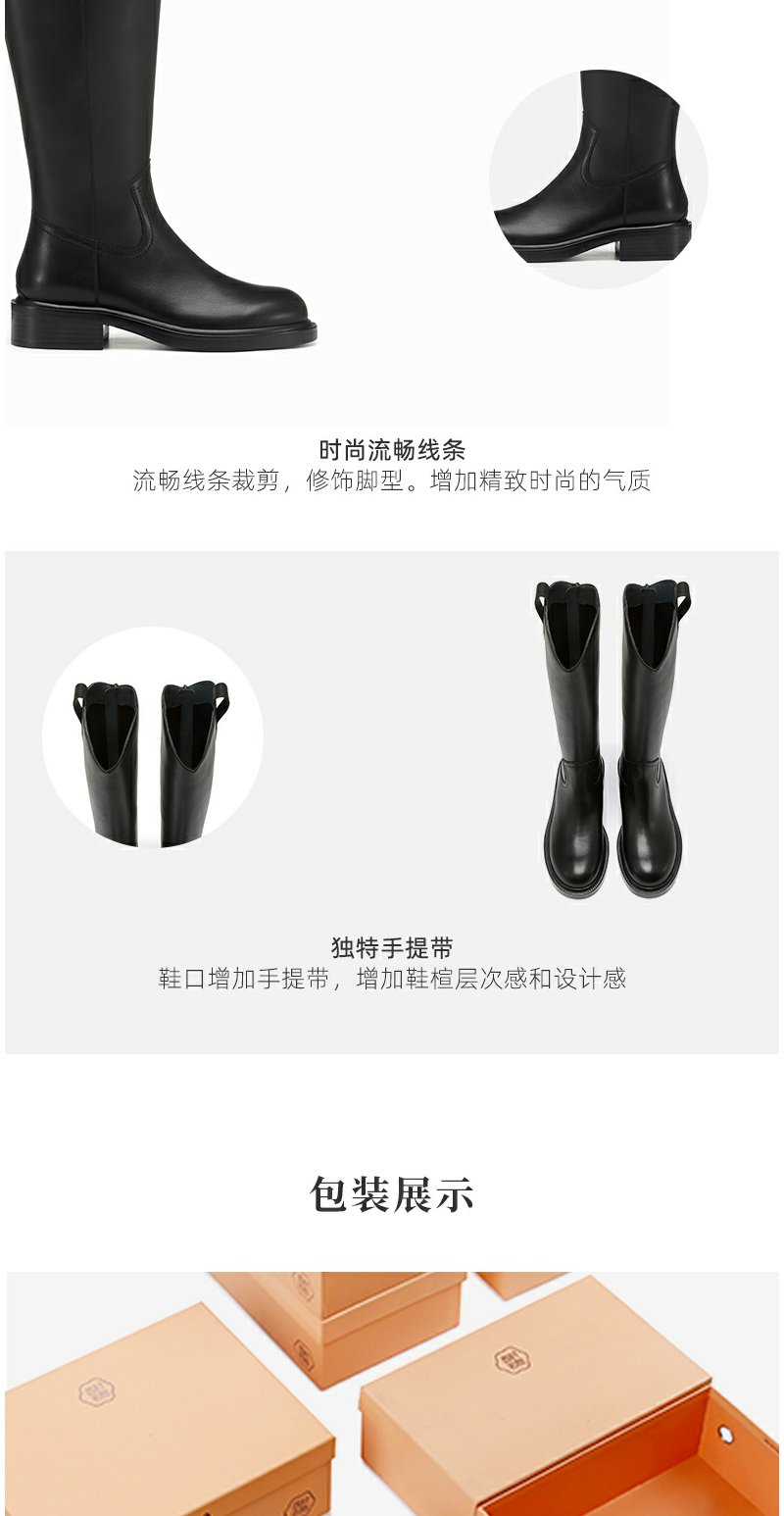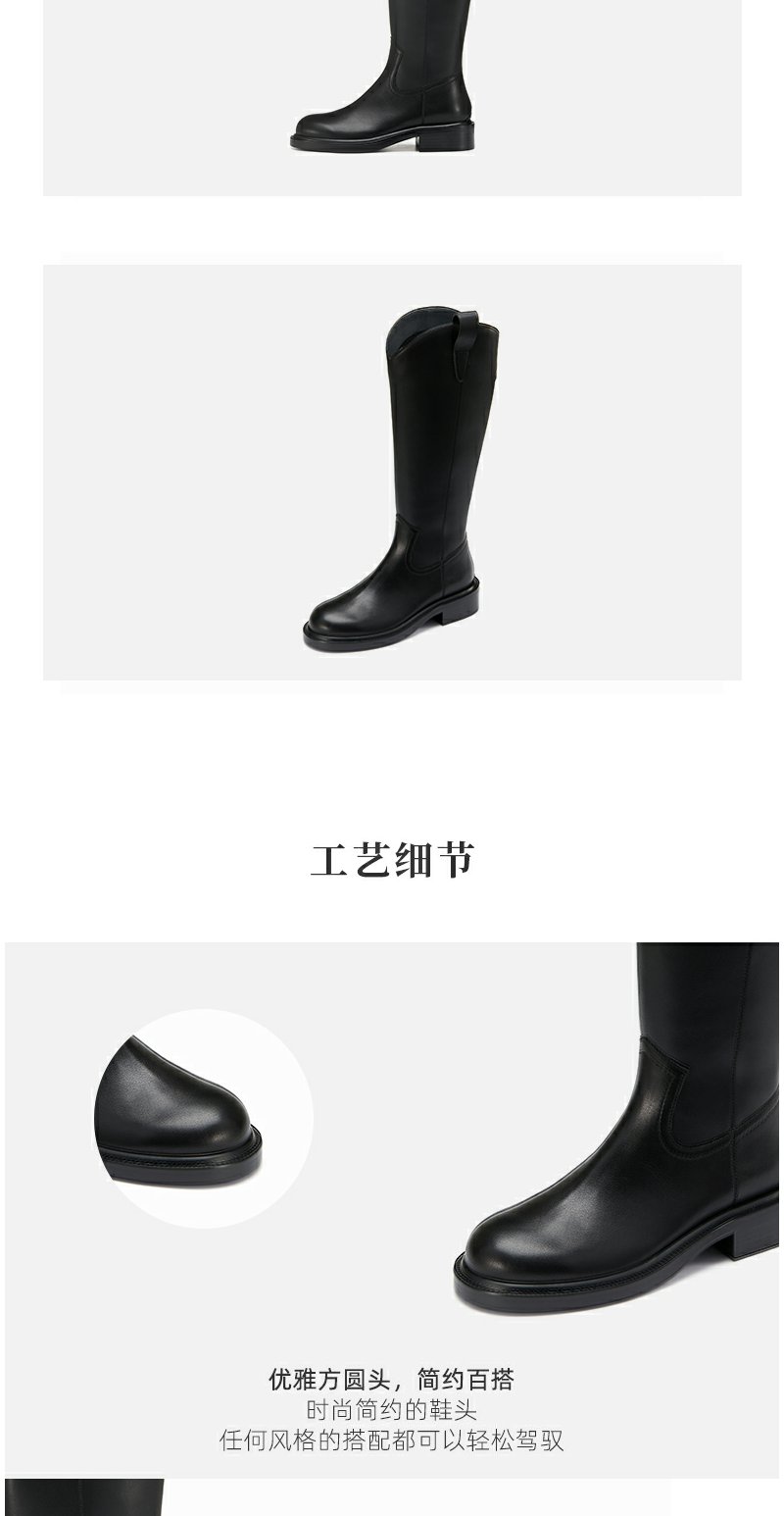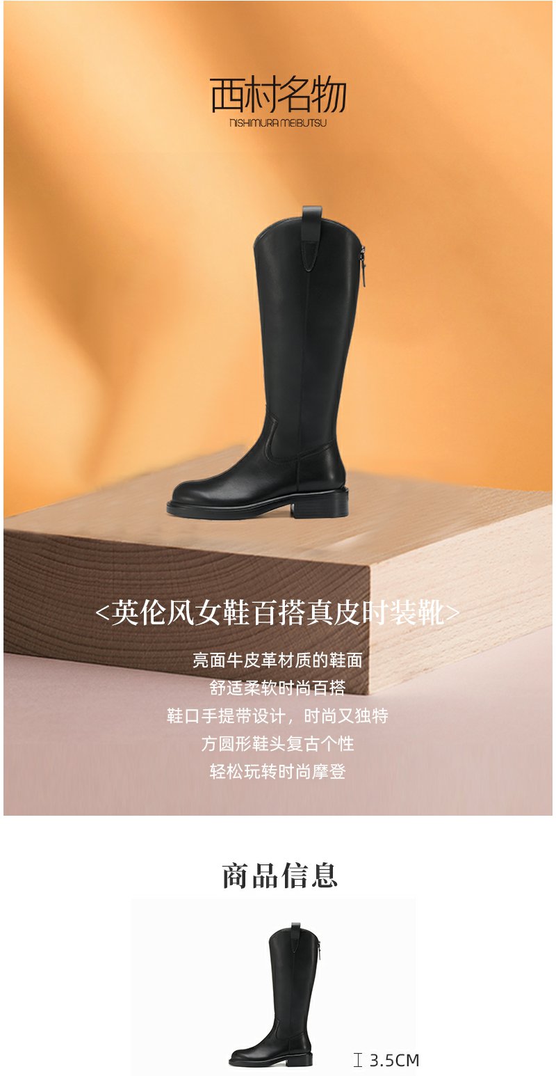西村名物休闲纯色长筒靴女圆头高筒时装靴长靴女2022秋冬新44541