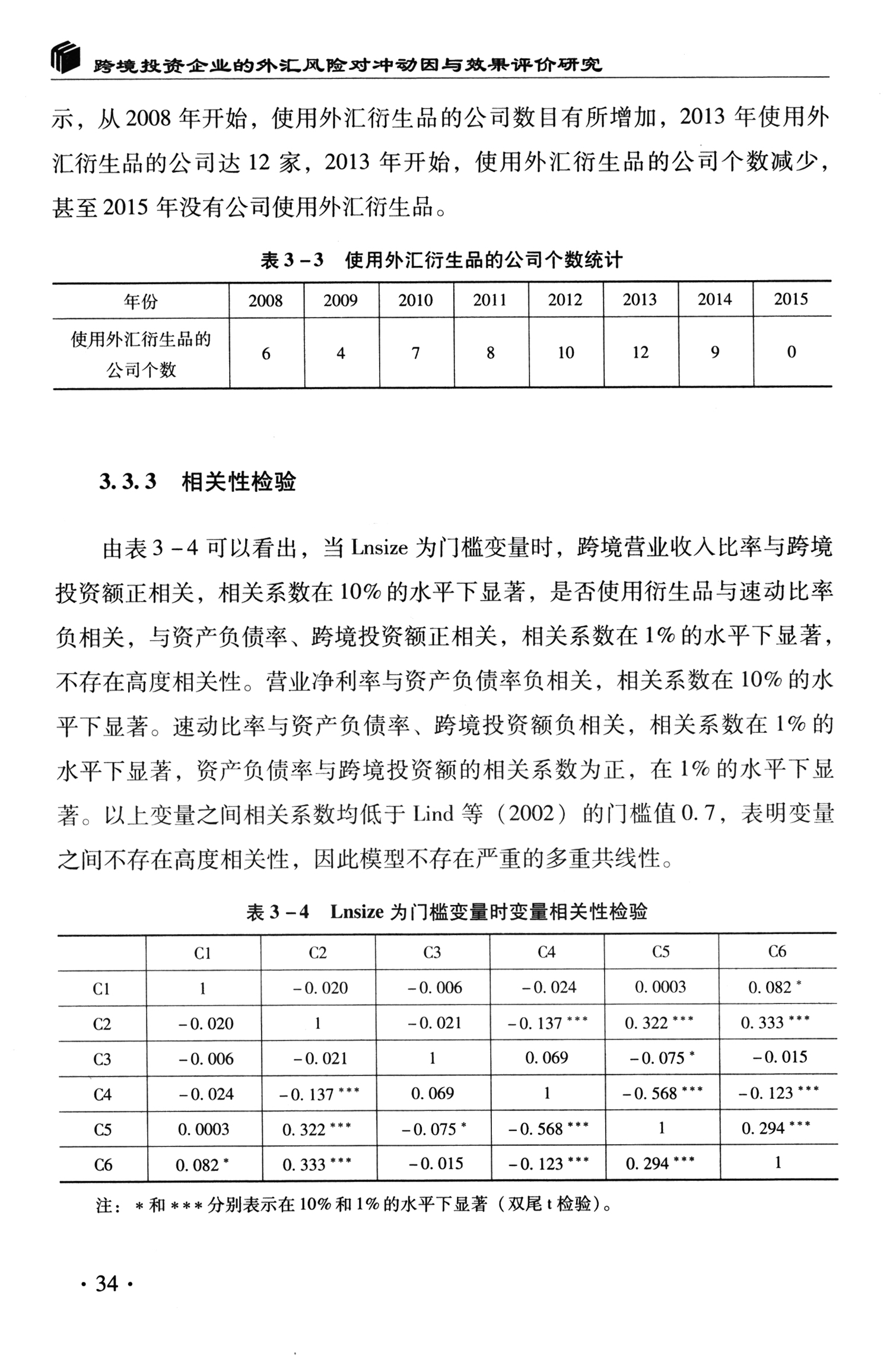 本书第二篇是北京跨境投资企业外汇风险对冲动因探究,包含第4-6章。第4章是外汇衍生品监管与北京跨境投资企业风险对冲决策。以A股上市的654家北京跨境投资企业为样本,研究发现:从长期来看,外汇衍生品监管与企业的外汇风险对冲之间存在正向影响;但从短期来看,衍生品监管法规的变动会对企业的外汇风险对冲产生负向影响。
