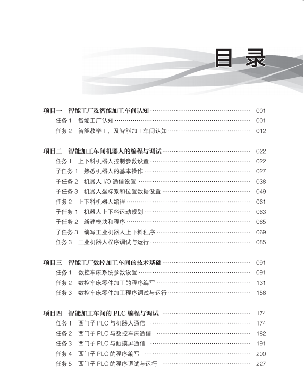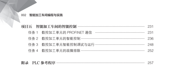 本书以技能训练为主线,以核心技术为重点,以能力培养为核心,以基本概念为支撑”的编写思想,以生产步进电动机的智能工厂为蓝本,系统地介绍了智能工厂及加工车间认知、智能加工车间机器人的编程与调试、智能工厂数控加工车间的技术基础、智能加工车间的 PLC 编程与调试、智能加工车间的智能控制,按照“管用、适用、够用”的原则以及“基于工作过程导向”的教学模式重构教学内容,充分体现教材的科学性、先进性、实用性和可操作性。