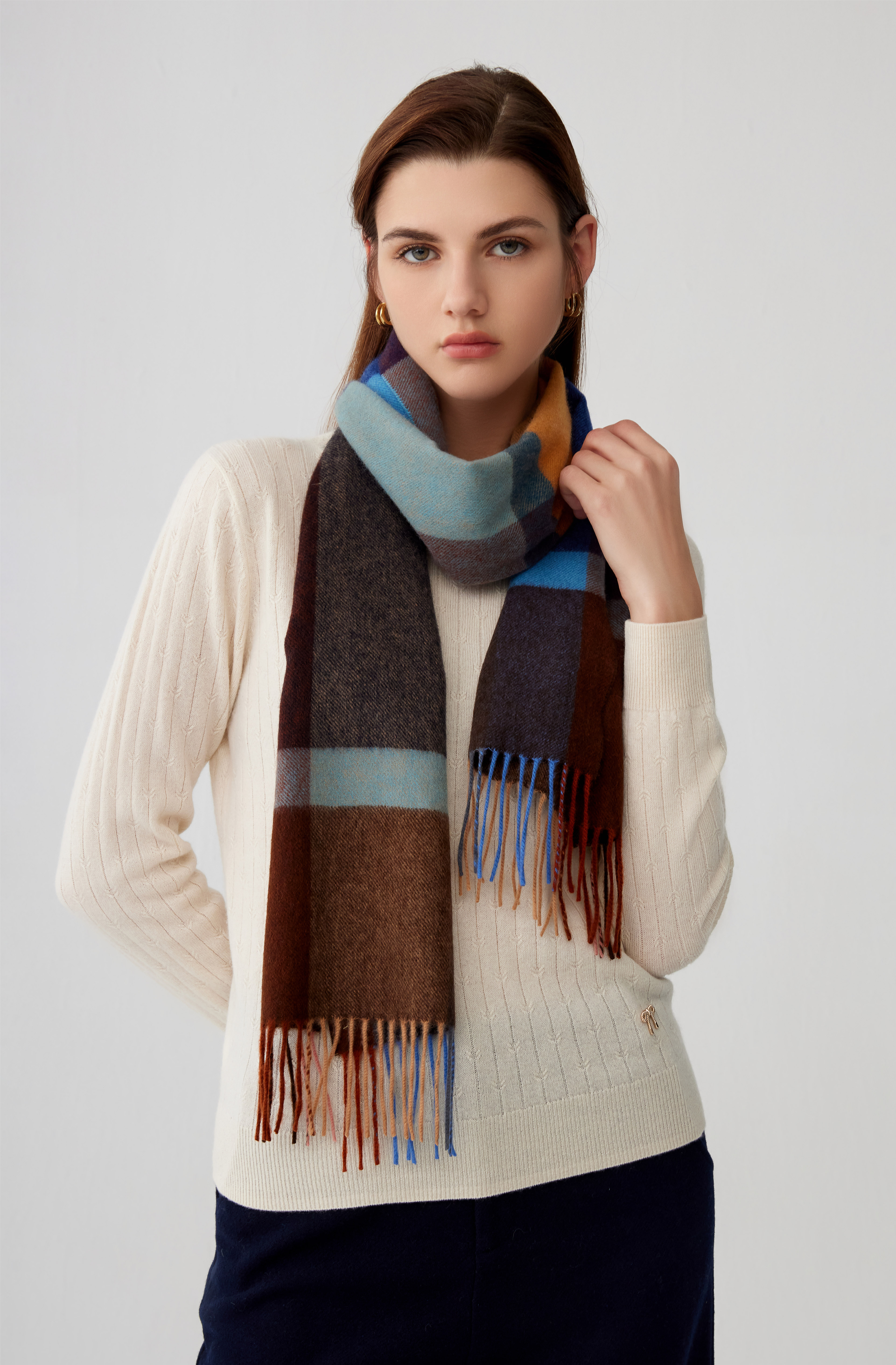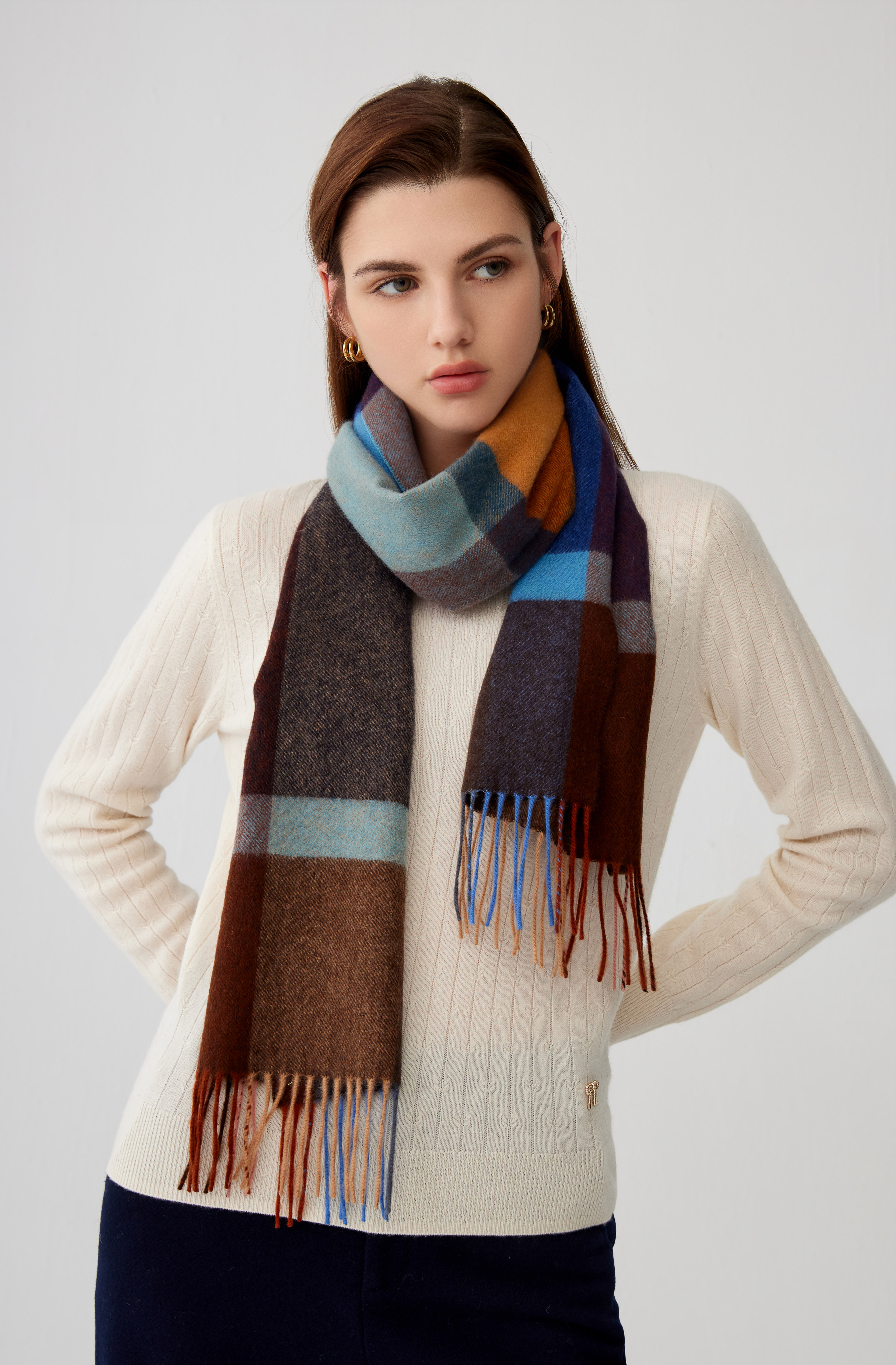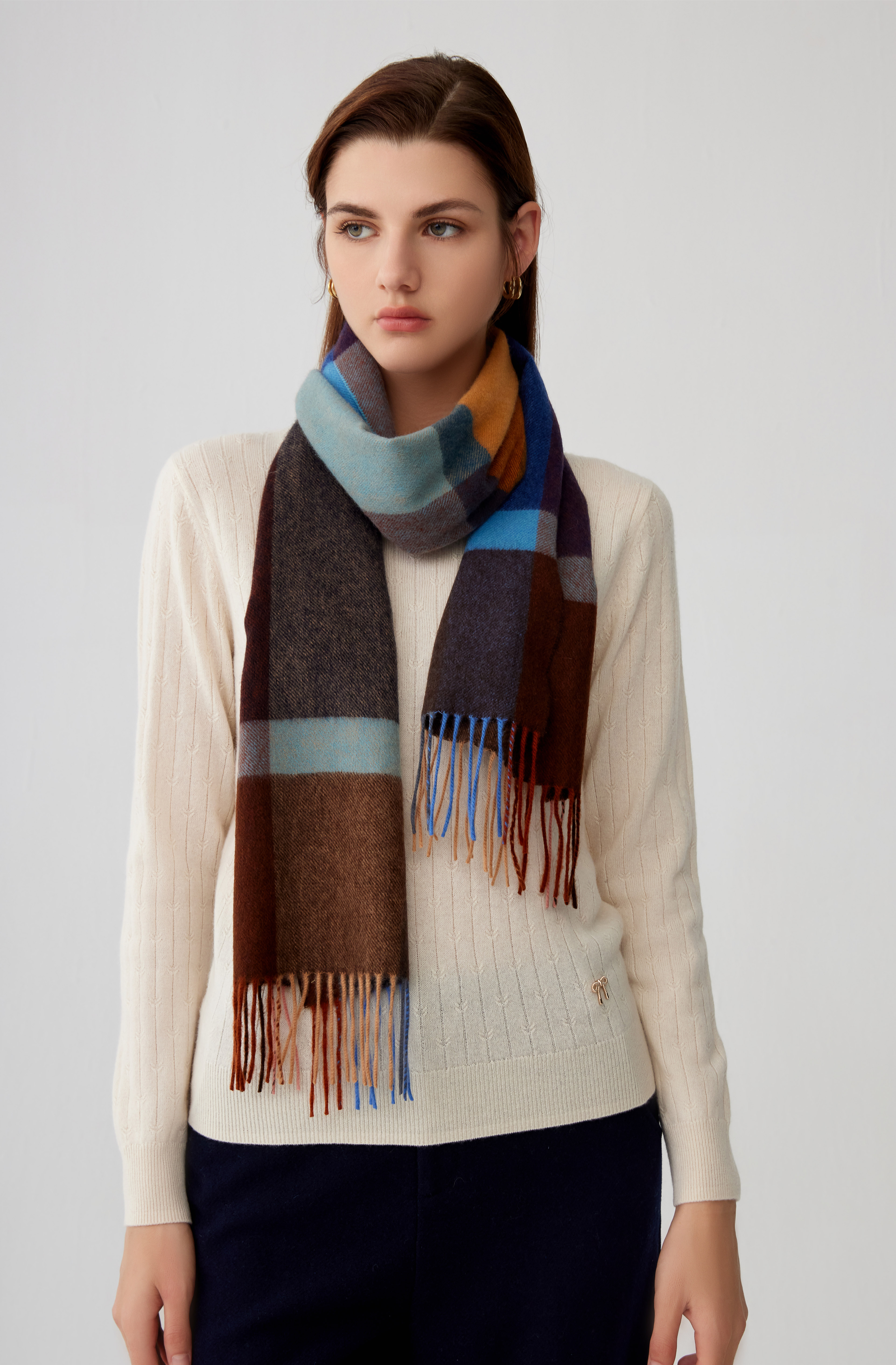 【纯羊绒围巾】羊绒世家23年秋冬新品女士100%山羊绒格纹保暖围巾