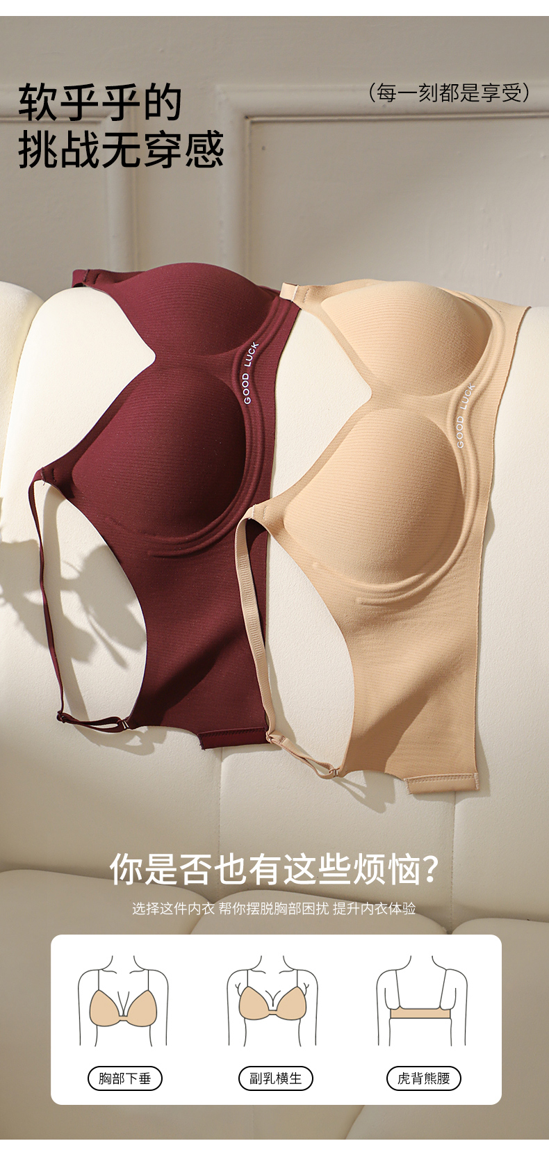 「AILISCOCO双层磨毛条纹bra」果冻胶软支撑神器显瘦聚拢还无痕 高弹提拉肩带回弹力超强 果冻胶侧收设计 轻柔收紧腋下,副乳、赘肉一键隐形