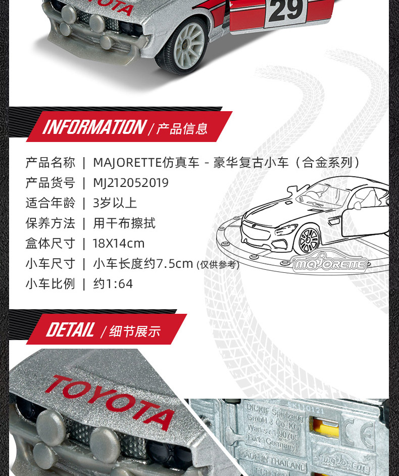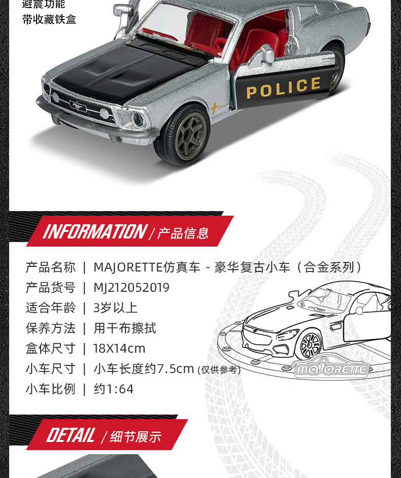 Majorette 美捷轮儿童玩具豪华复古小车(合金系列)3岁+